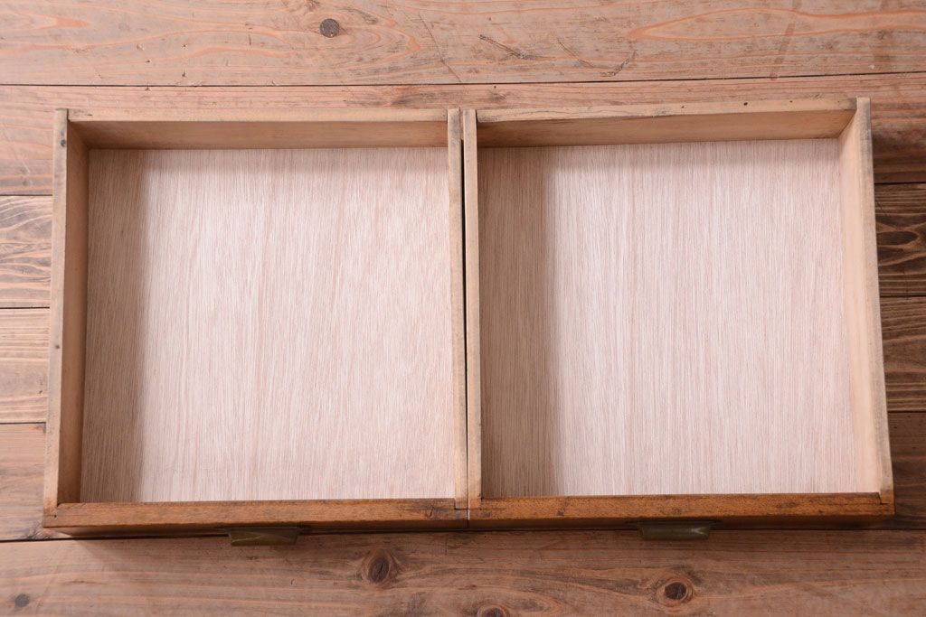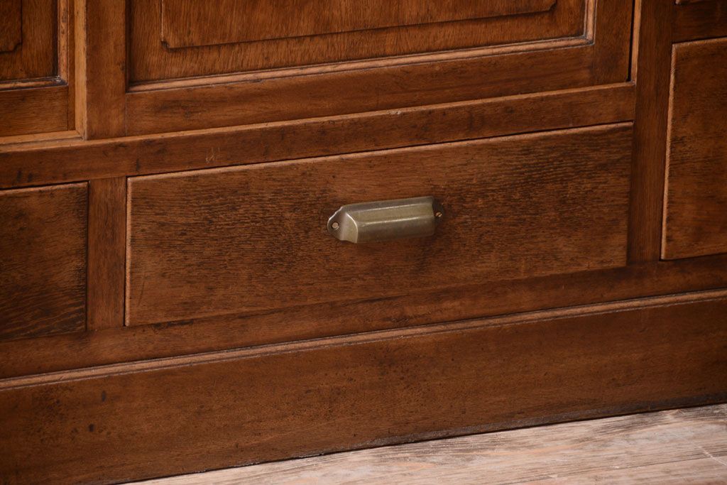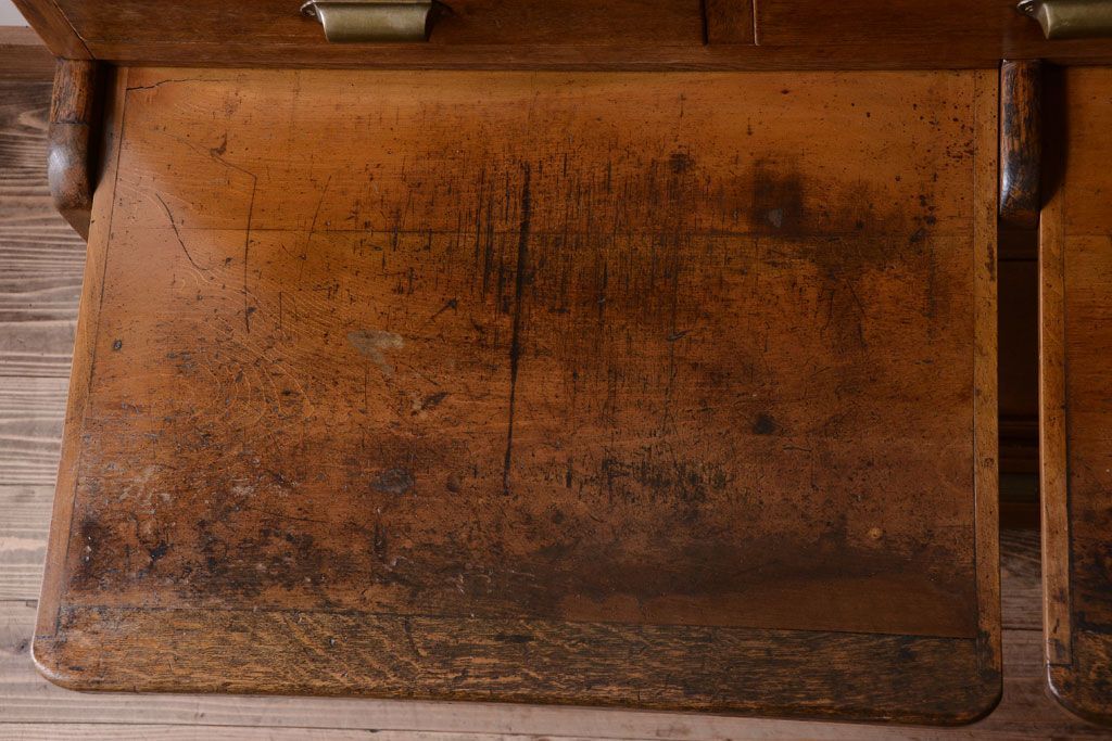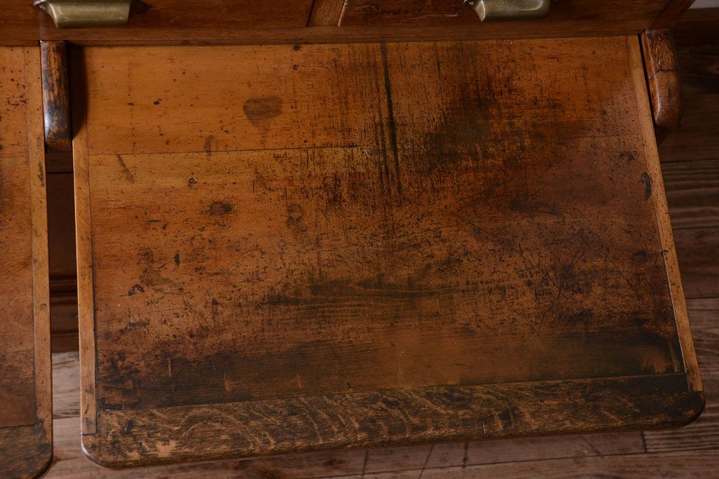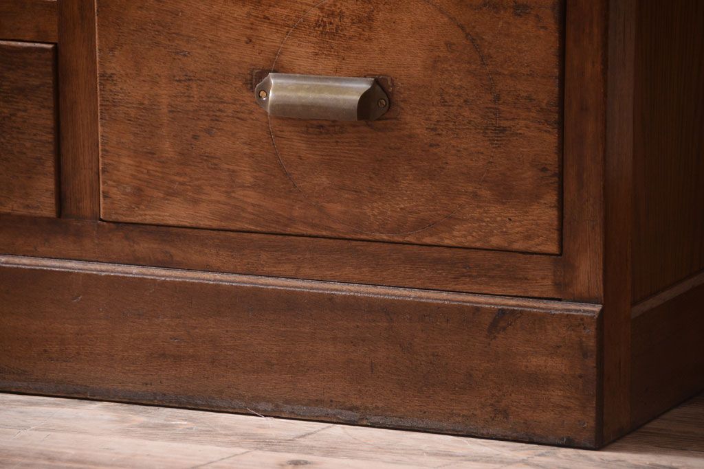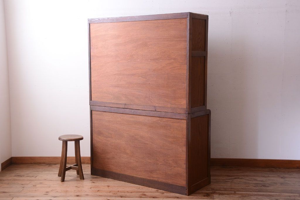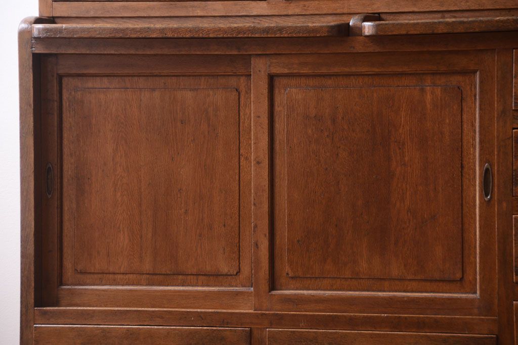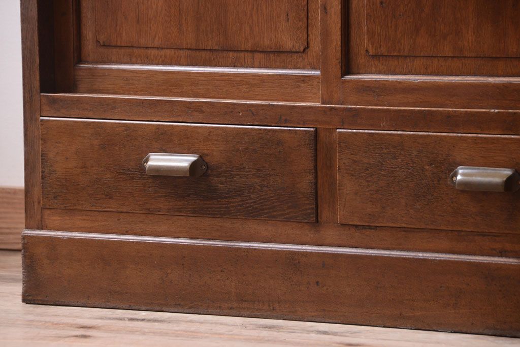 レトロ家具 気泡ガラス入り!古い木の昭和レトロなアンティーク食器棚(カップボード)