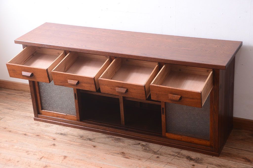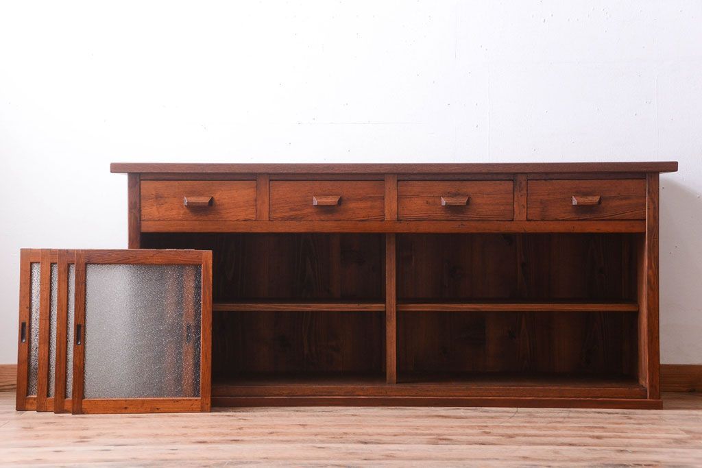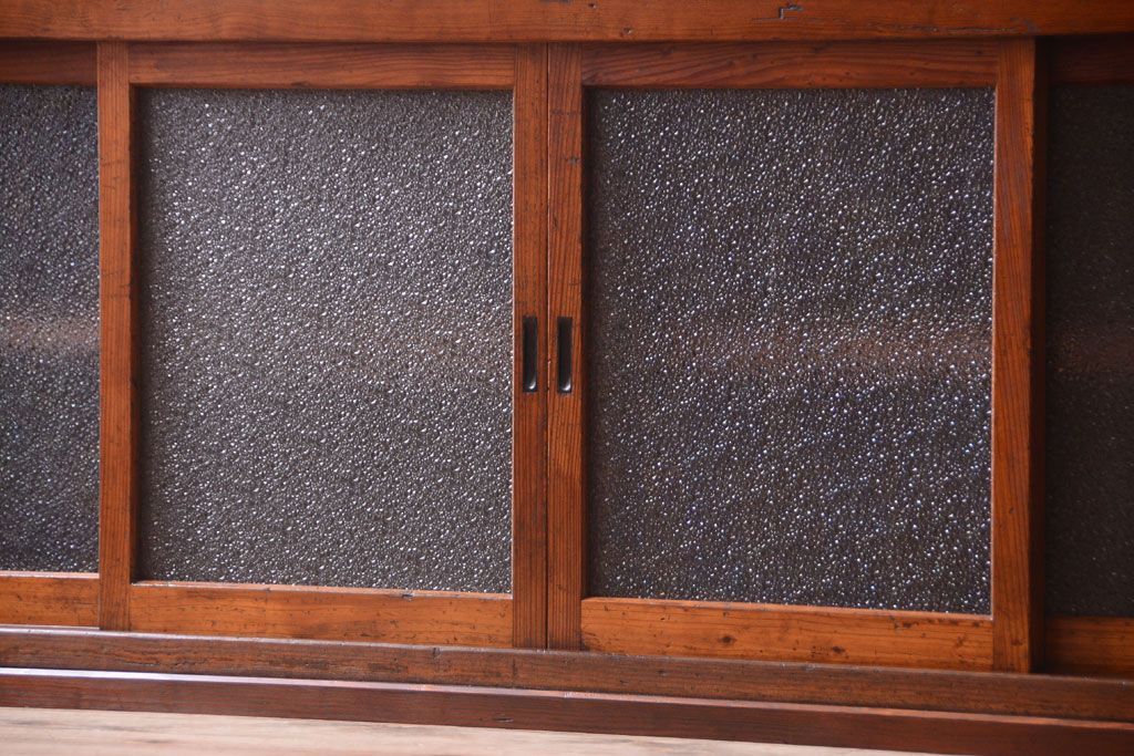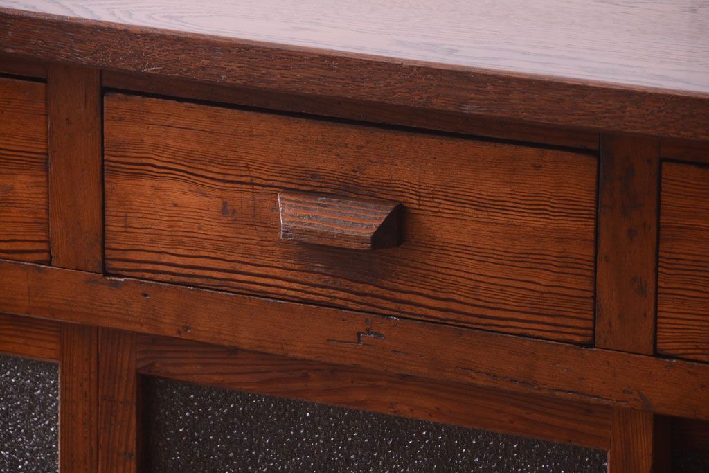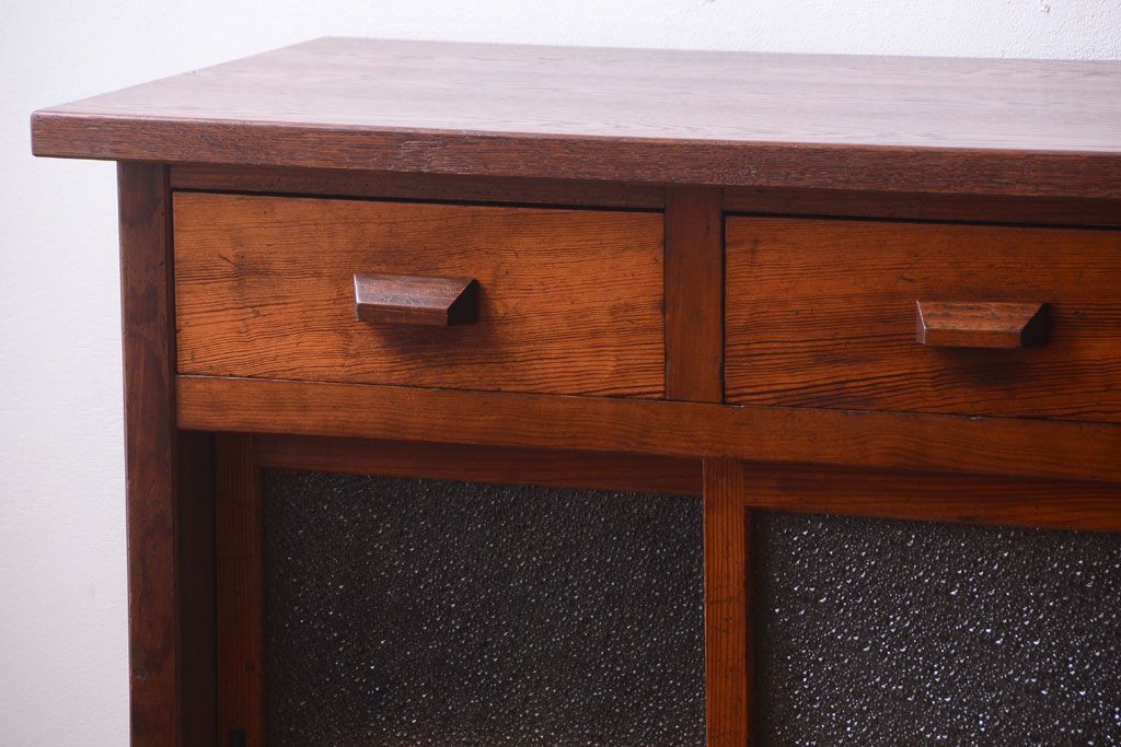 ダイヤガラス!ナラ材天板のリメイク品 アンティークのカウンターテーブル(収納棚・戸棚)です。