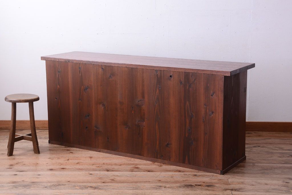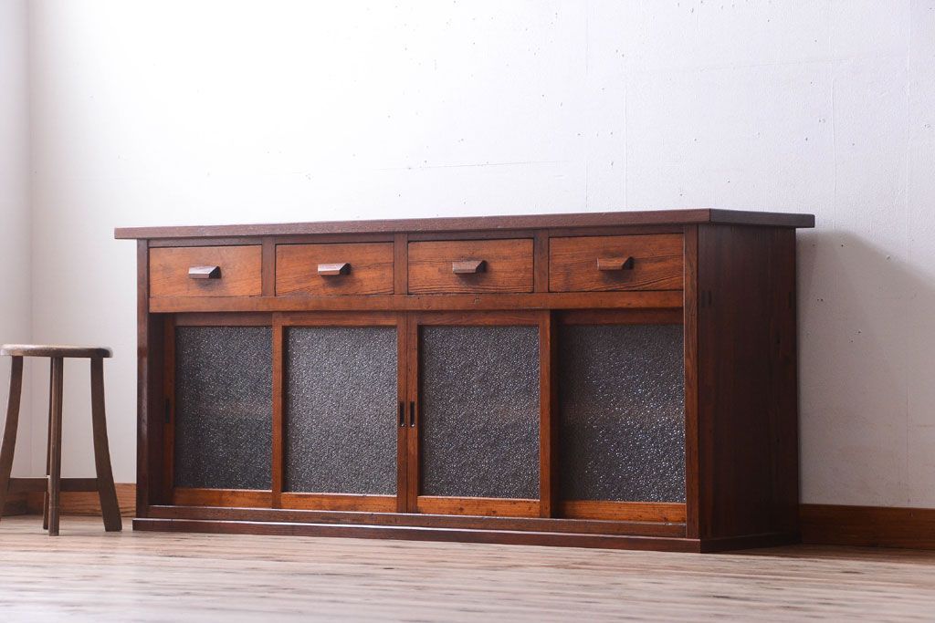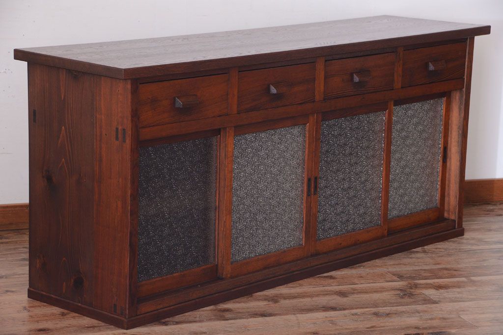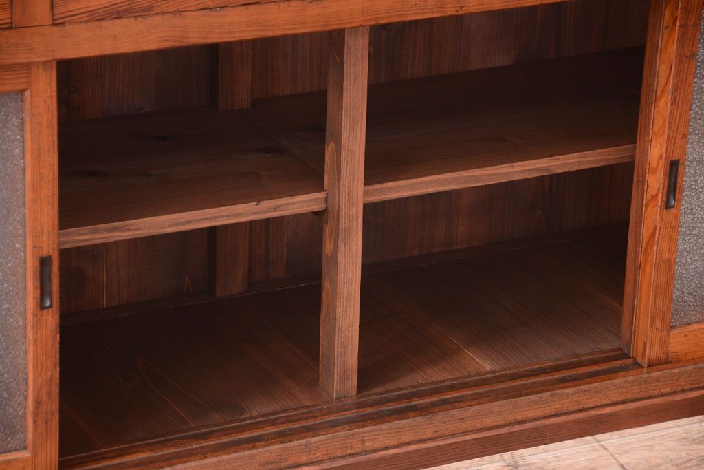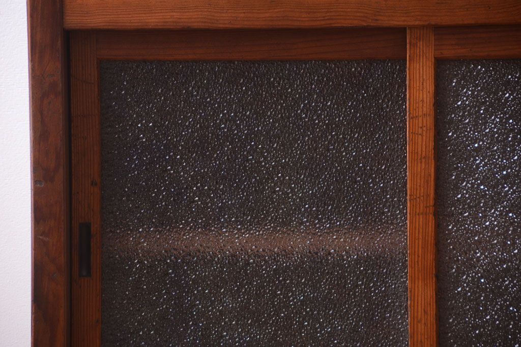 ダイヤガラス!ナラ材天板のリメイク品 アンティークのカウンターテーブル(収納棚・戸棚)です。