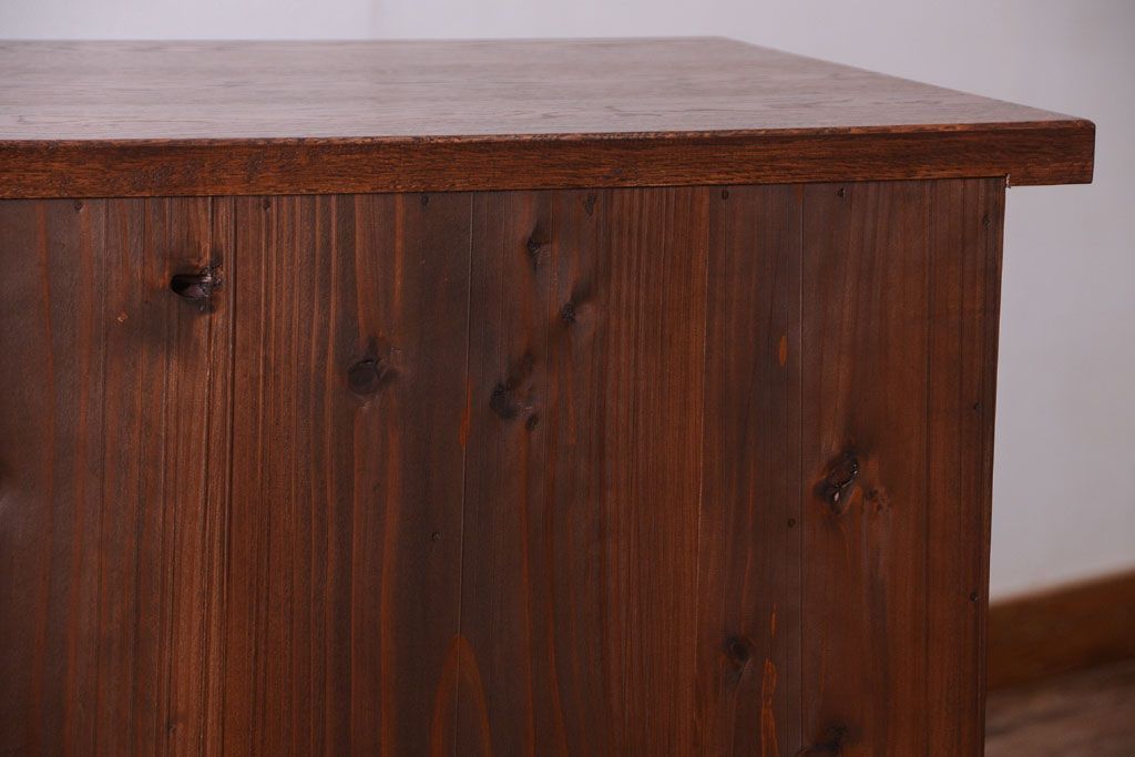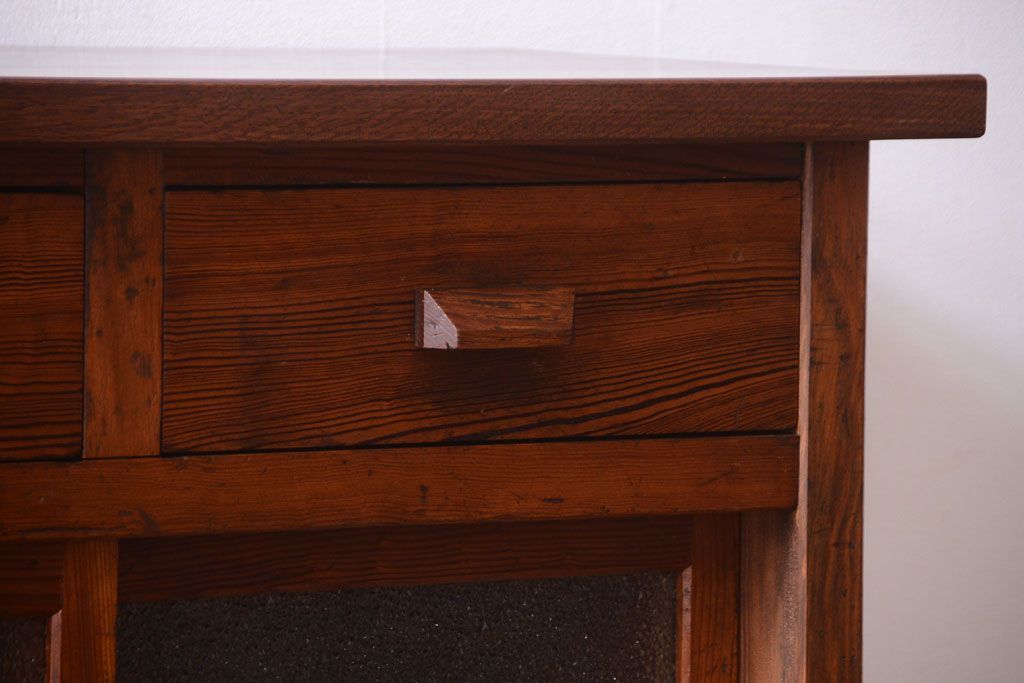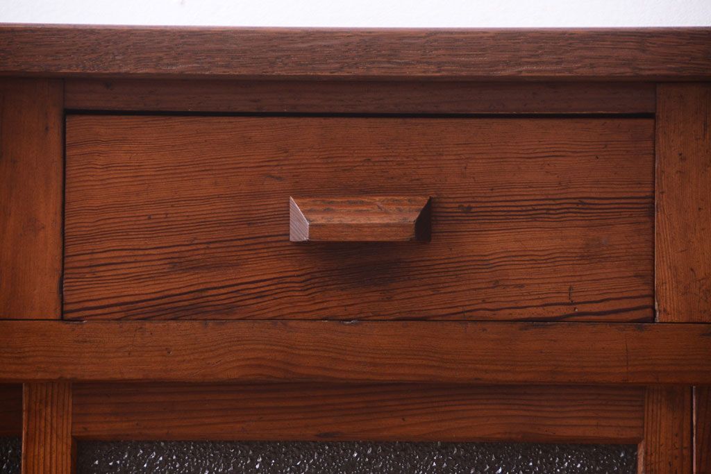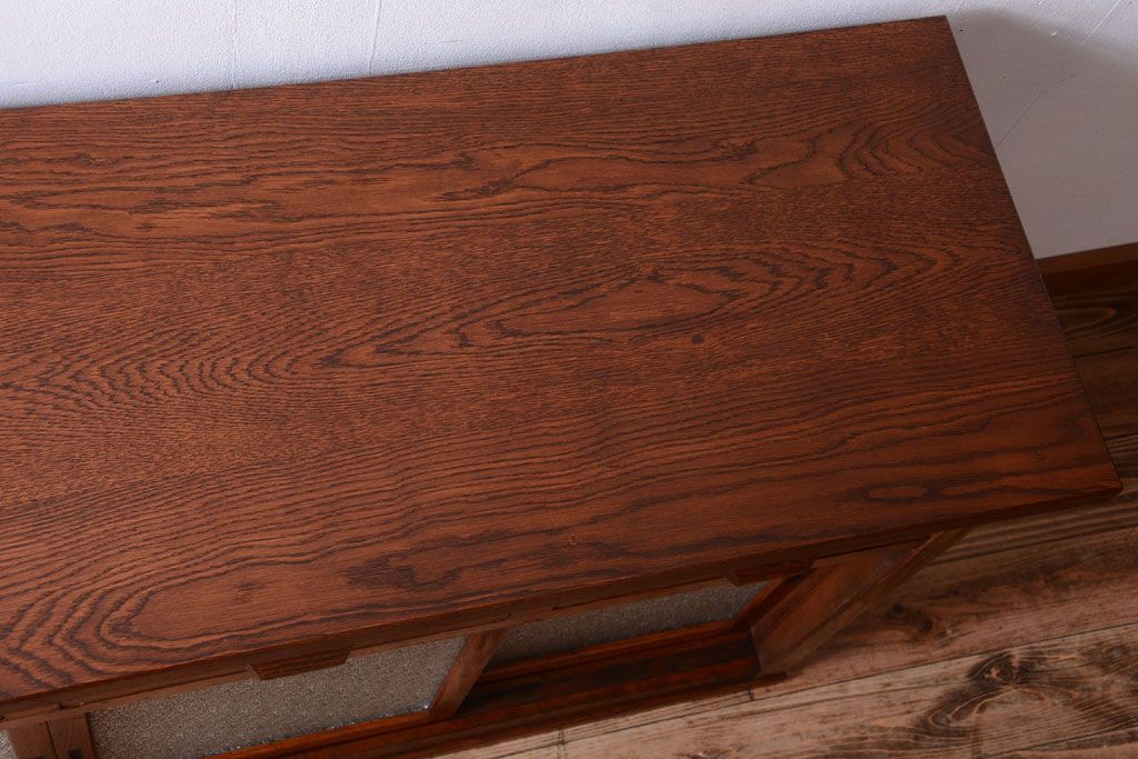 ダイヤガラス!ナラ材天板のリメイク品 アンティークのカウンターテーブル(収納棚・戸棚)