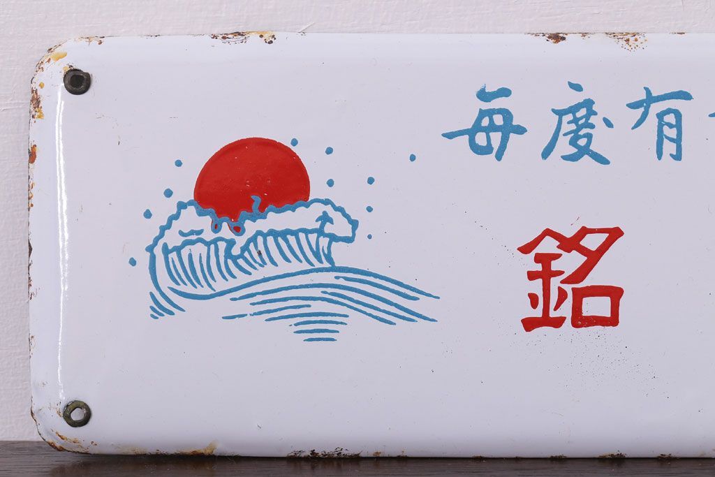 アンティーク雑貨 昭和レトロ 銘酒初日 ホーロー看板(企業看板)