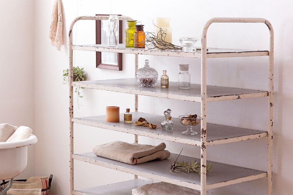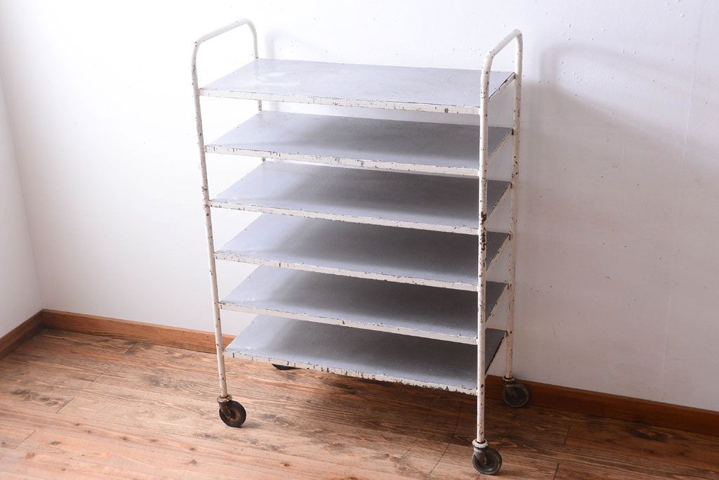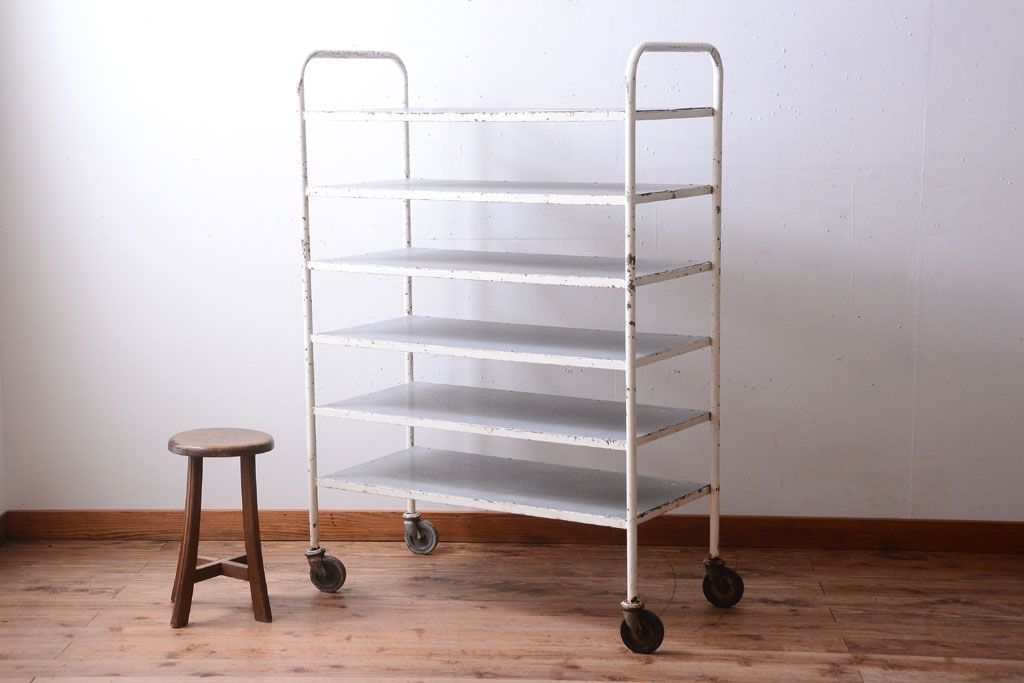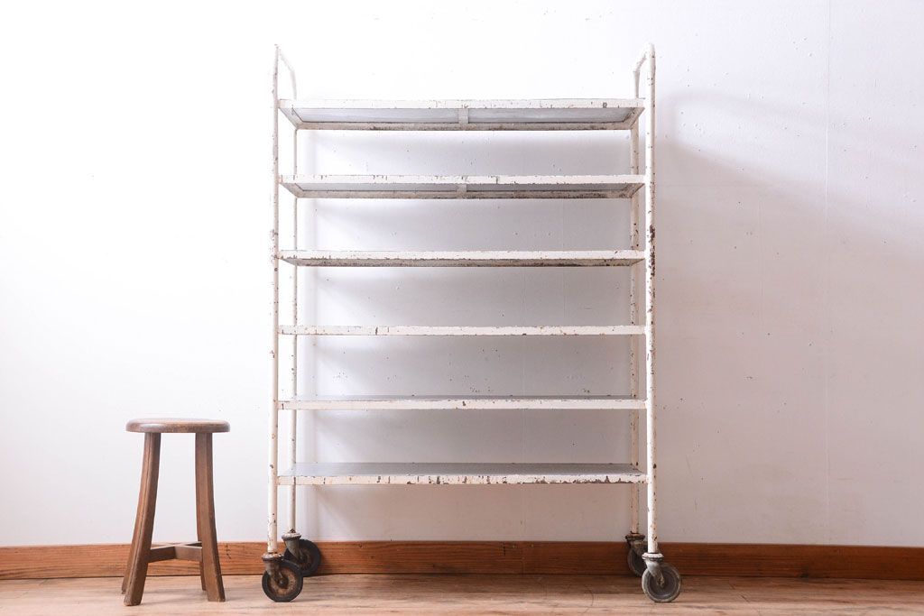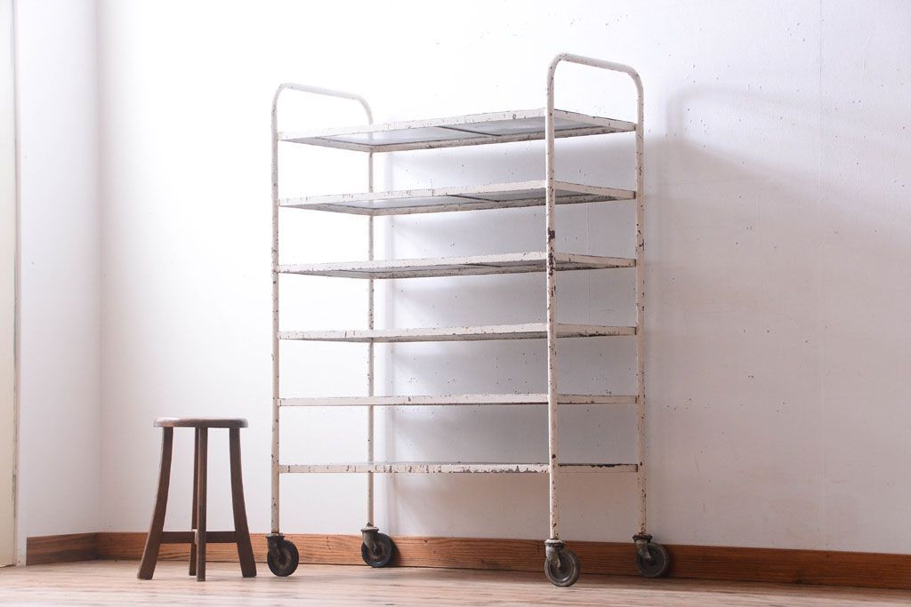ヴィンテージ家具 イギリスビンテージ キャスター付き!シャビーなアイアンシェルフ
