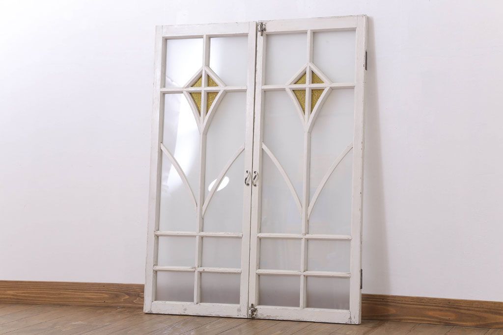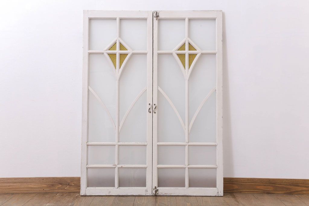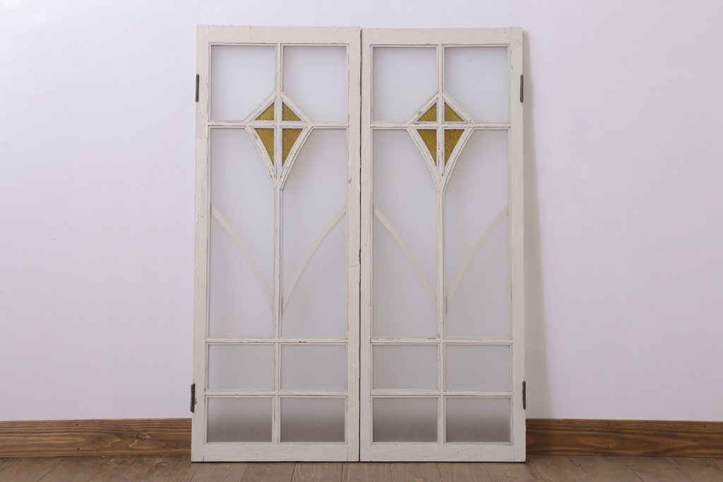 当時物色ガラス入り!大正期のペイントガラス戸2枚(窓)(1)です。