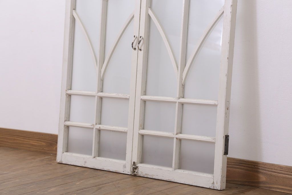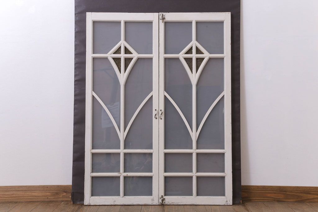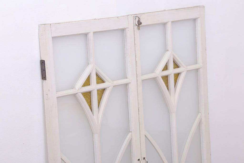 当時物色ガラス入り!大正期のペイントガラス戸2枚(窓)(1)
