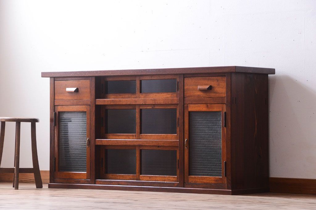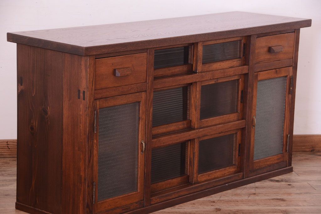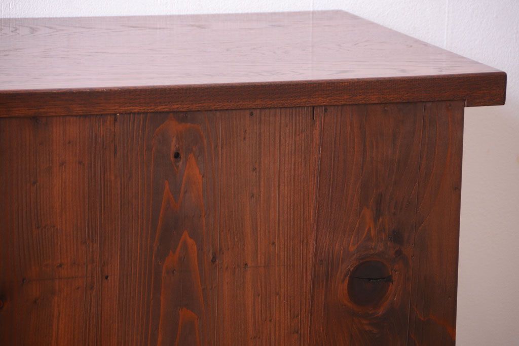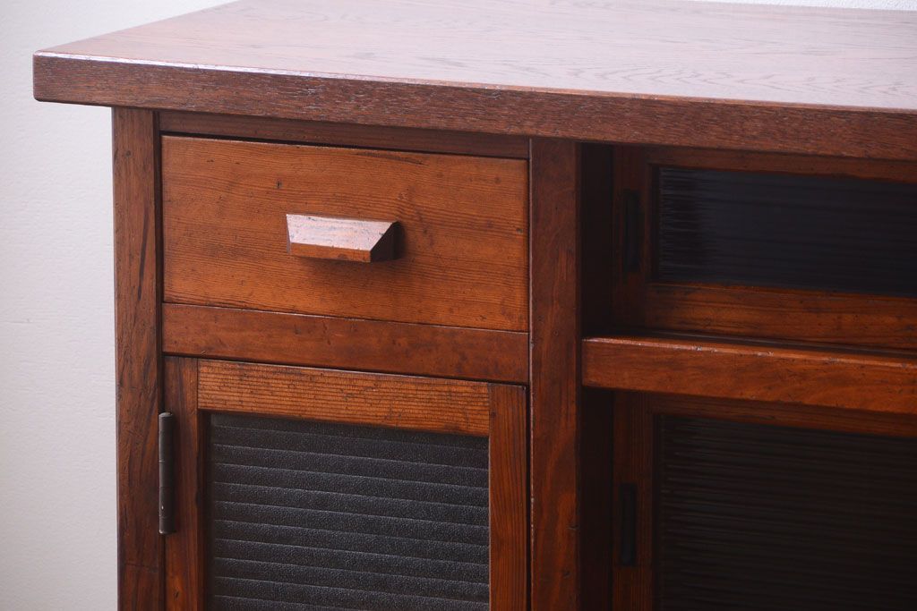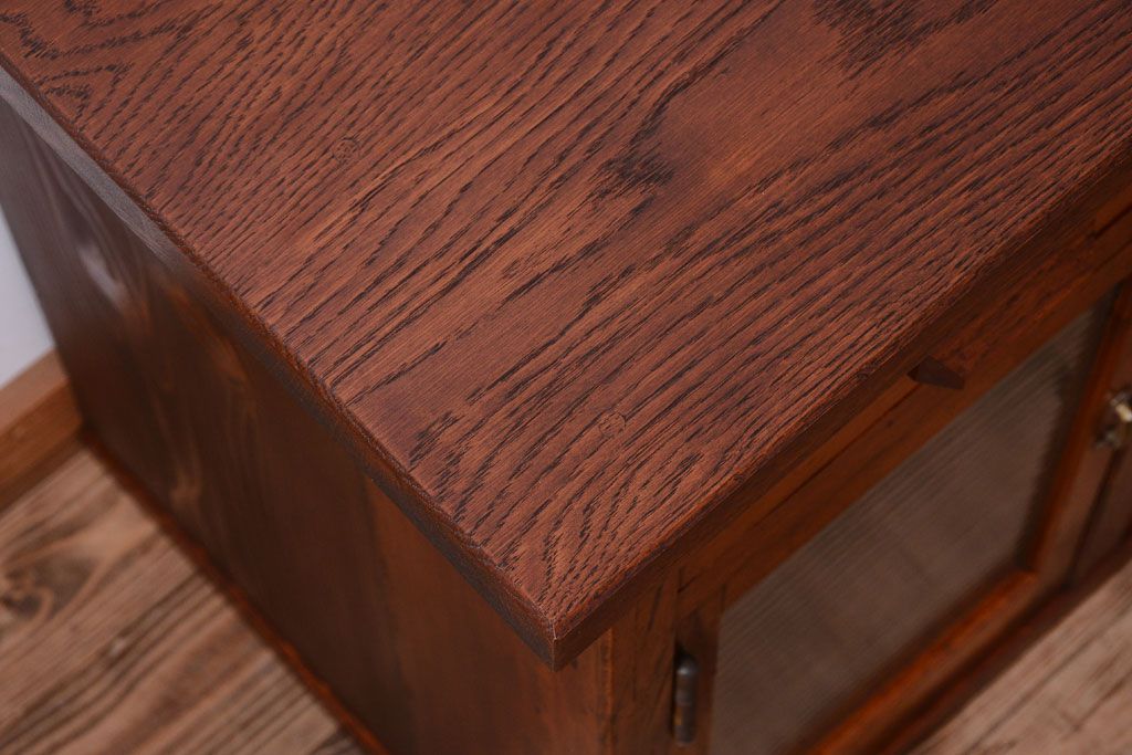 ナラ材天板のリメイク品 アンティークのカウンターテーブル(収納棚・戸棚)です。