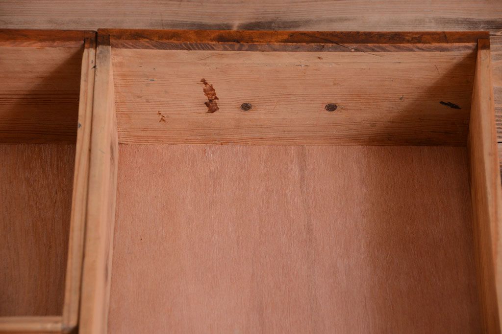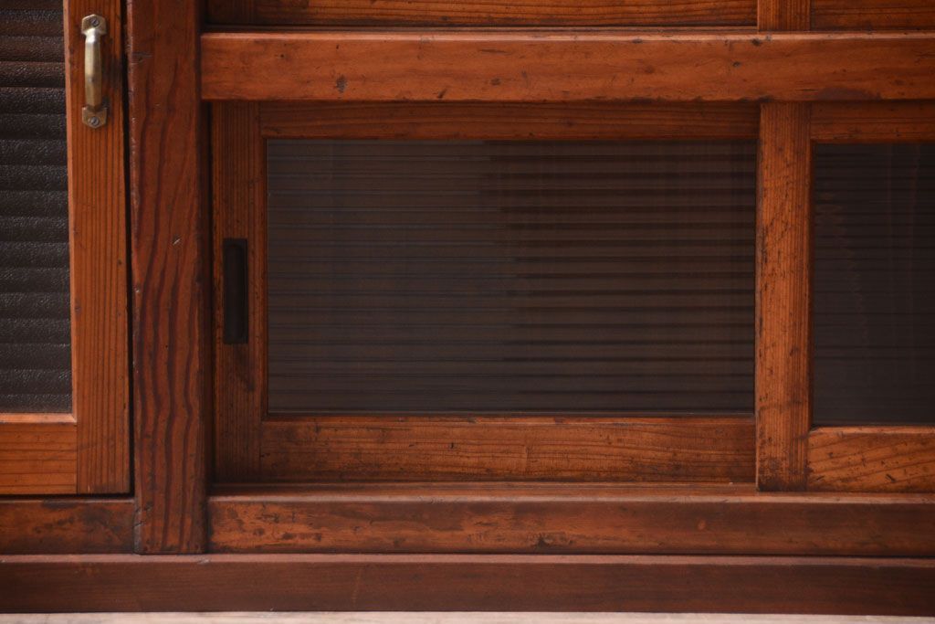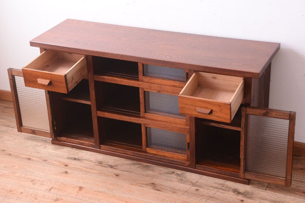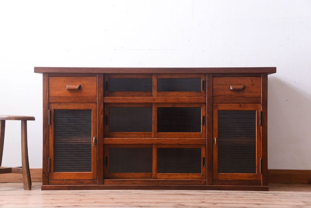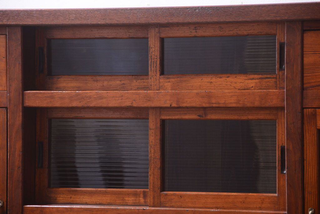 ナラ材天板のリメイク品 アンティークのカウンターテーブル(収納棚・戸棚)です。