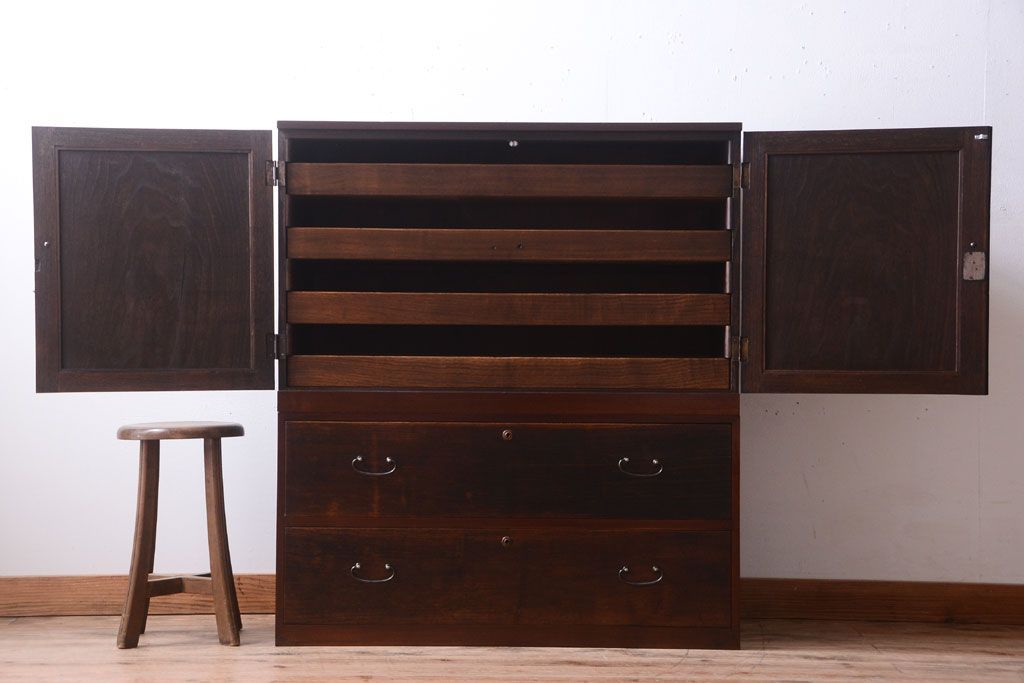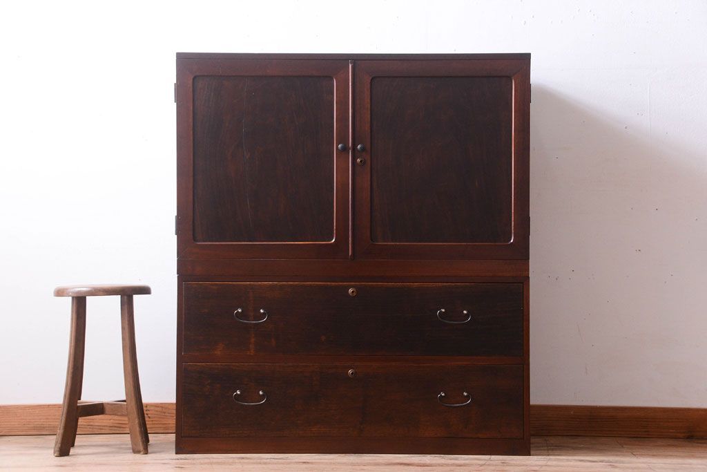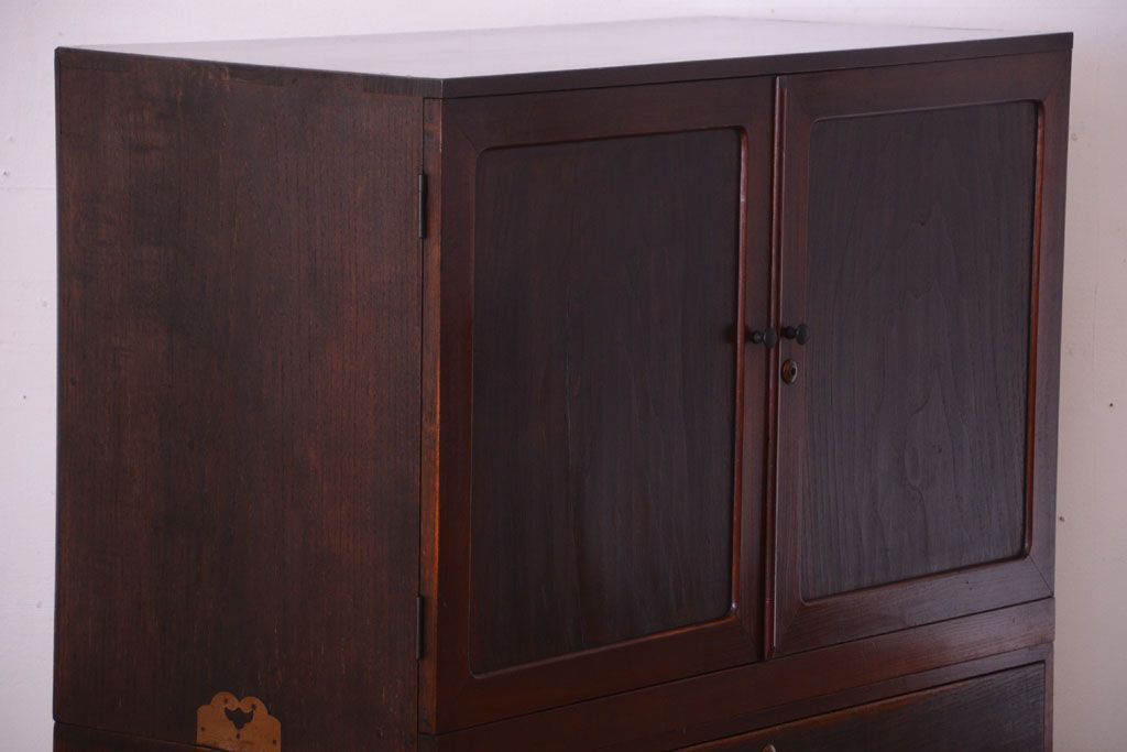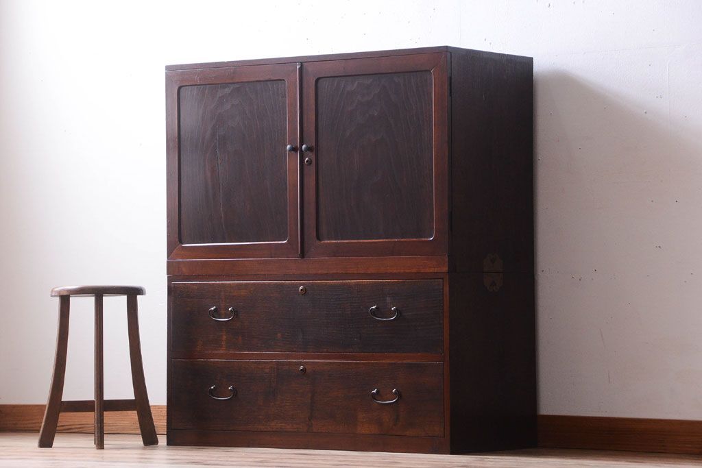 アンティーク家具 三方栗材!古い木製のシンプルな観音箪笥(衣装箪笥)