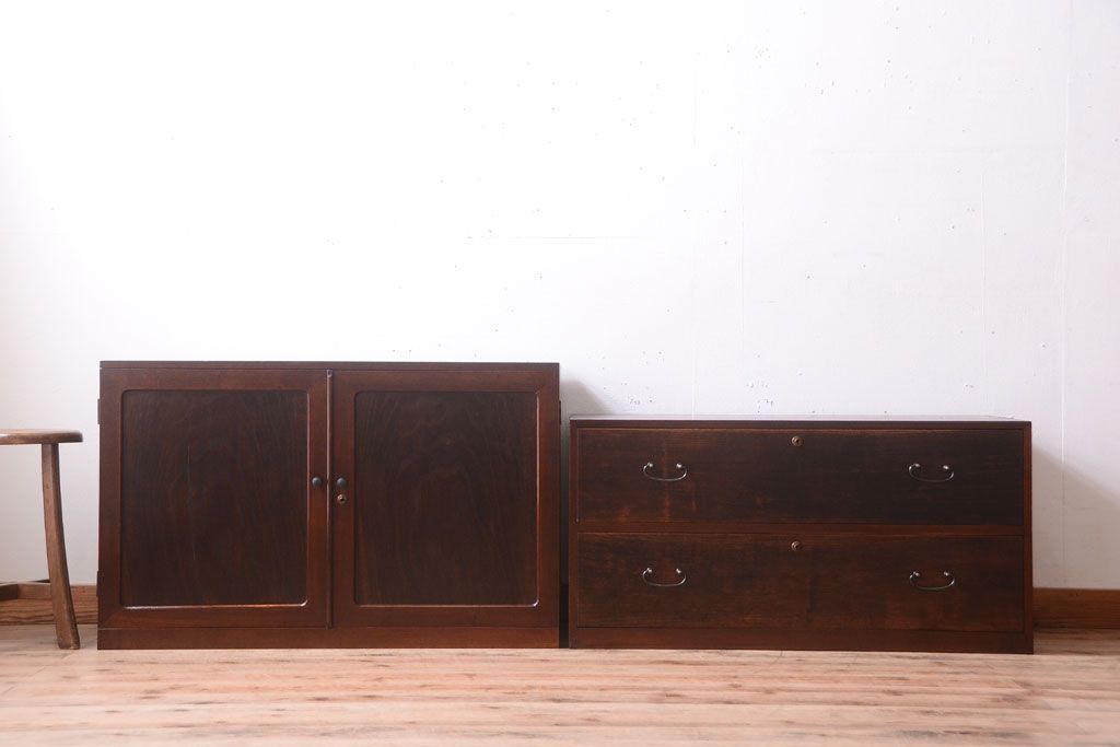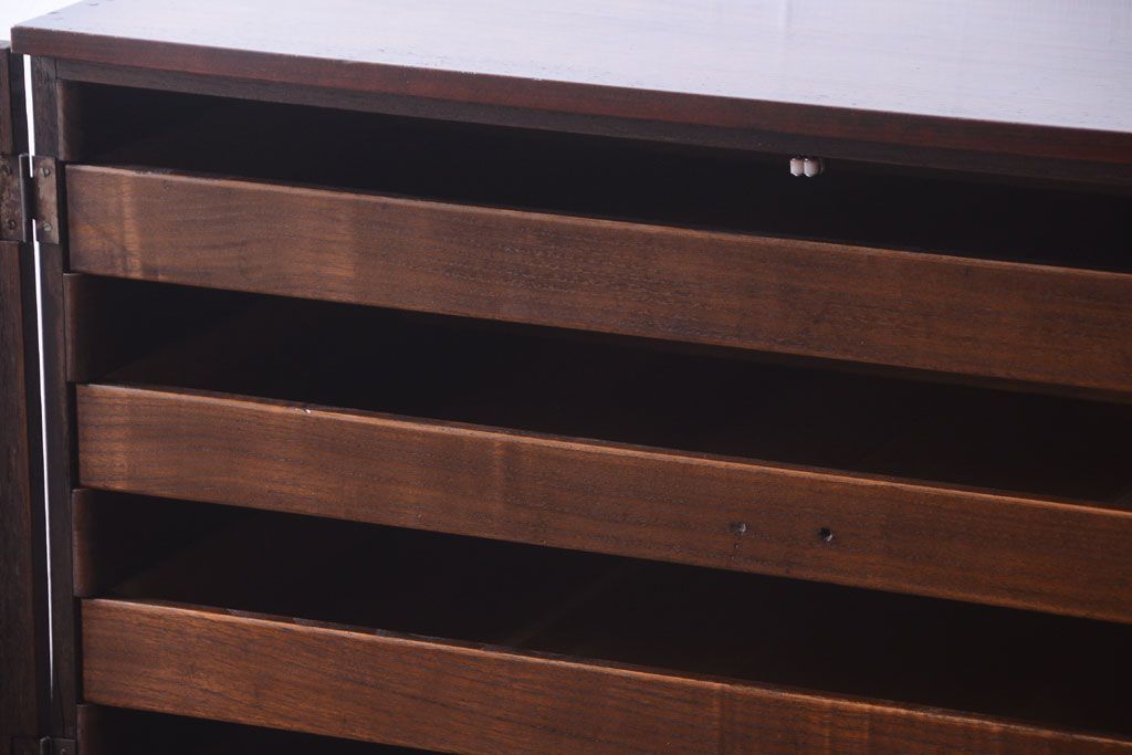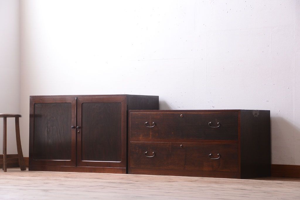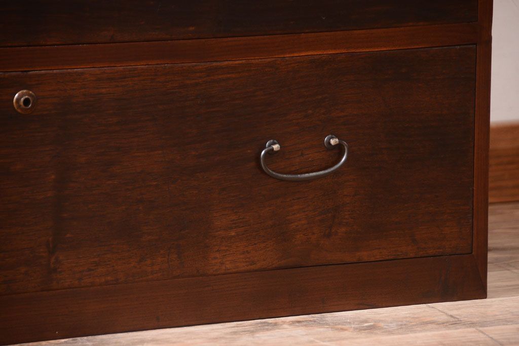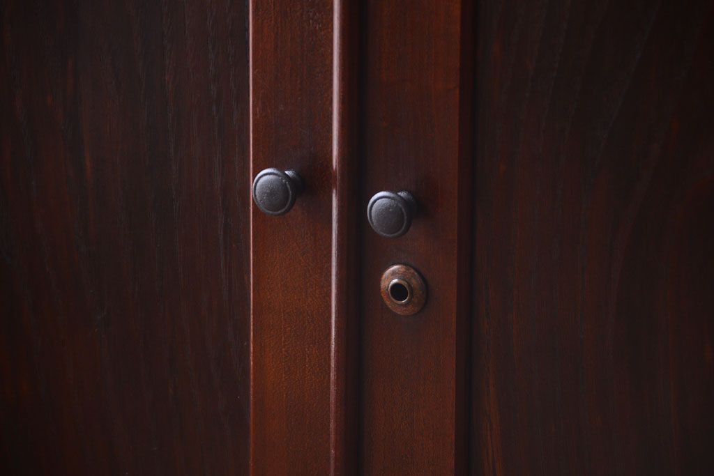 アンティーク家具 三方栗材!古い木製のシンプルな観音箪笥(衣装箪笥)