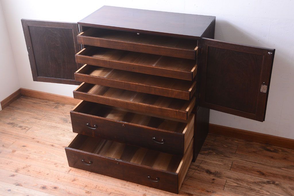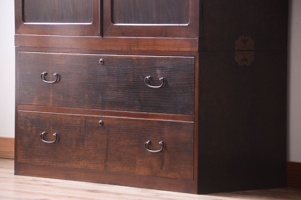 三方栗材!古い木製のシンプルな観音箪笥(衣装箪笥)です。