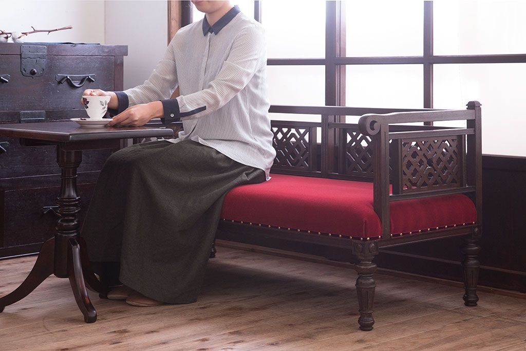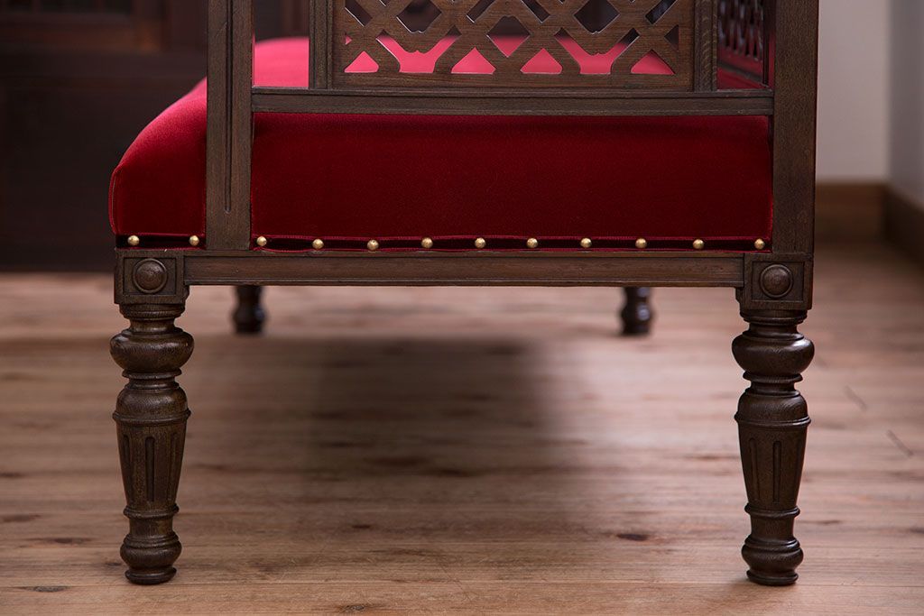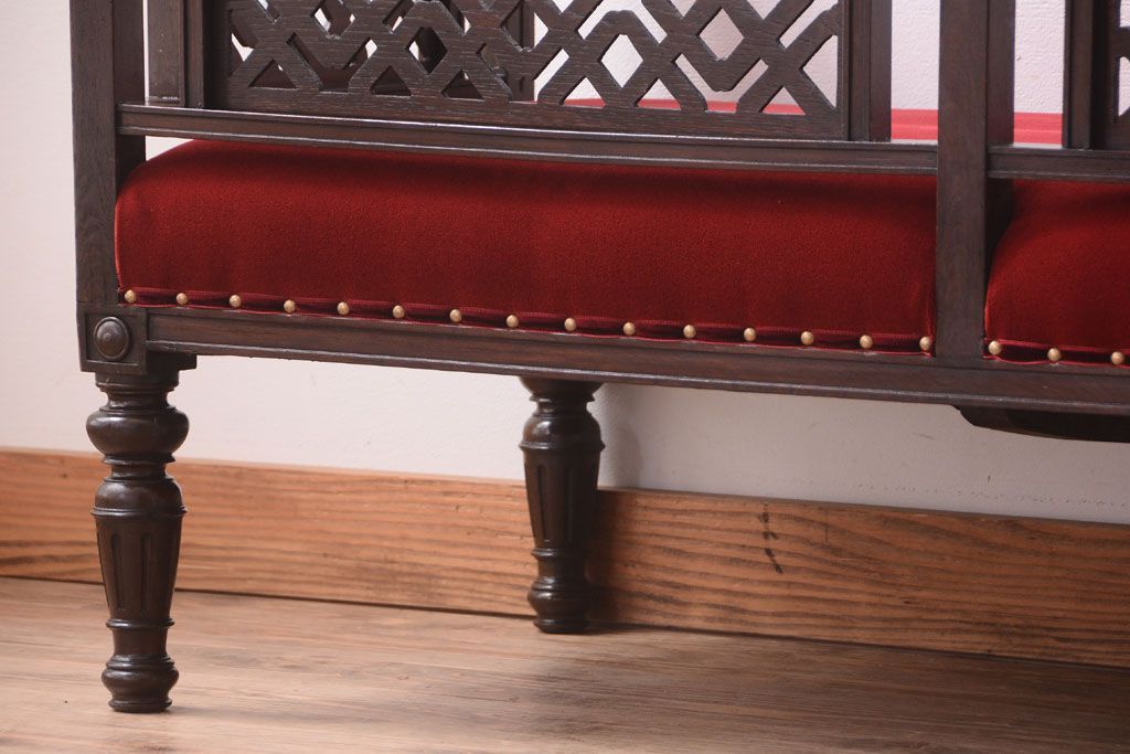 ソファ > アンティーク家具 大正ロマン 透かし彫りが美しい和製アンティークソファ
