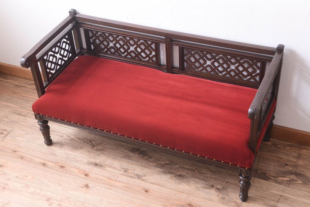 アンティーク家具 大正ロマン 透かし彫りが美しい和製アンティークソファ