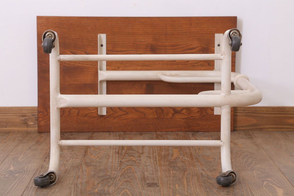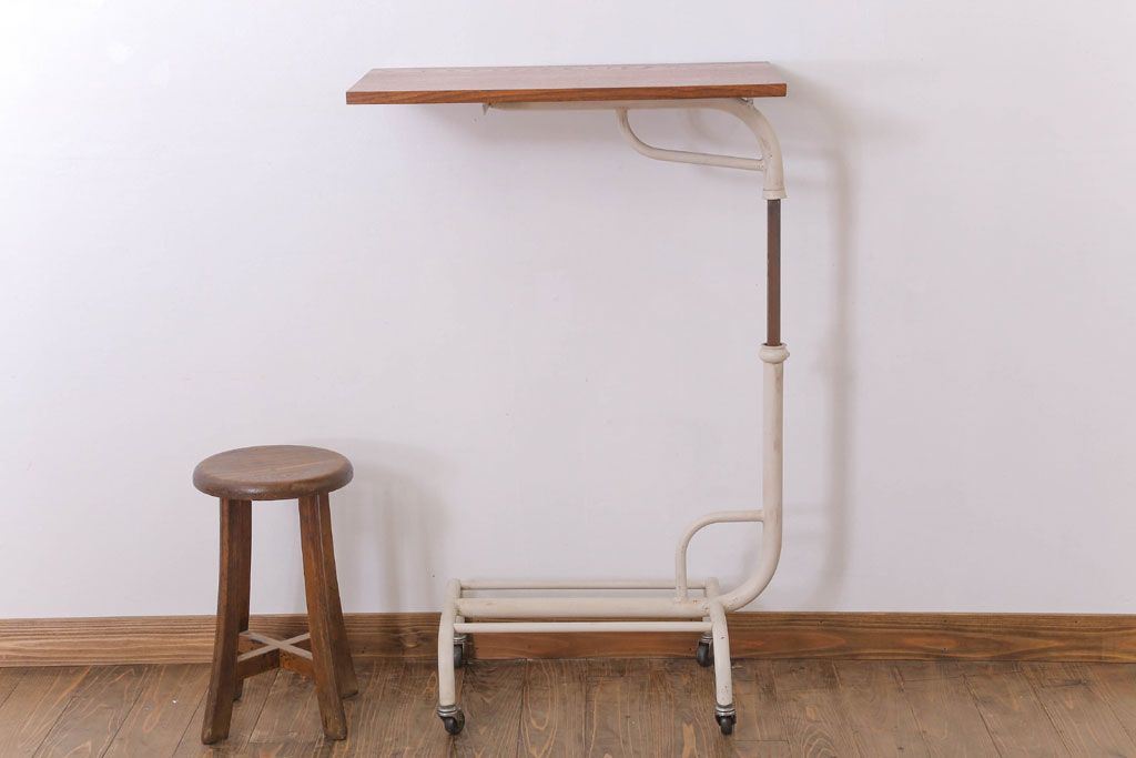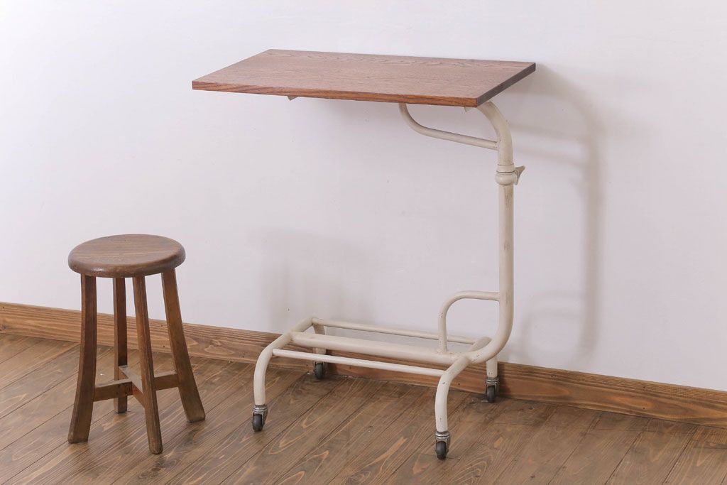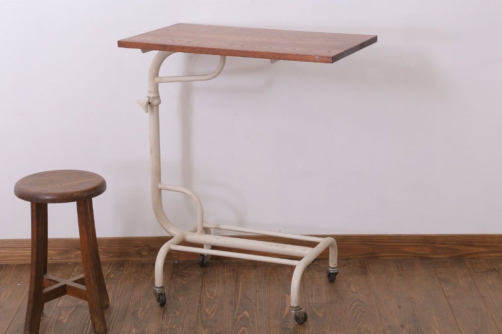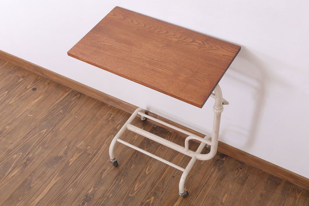 アンティーク雑貨 栗材天板リメイク品 人気のキャスター付きサイドテーブル(作業台)(1)