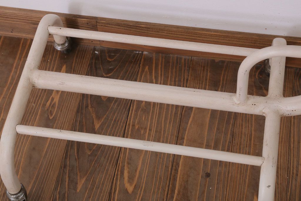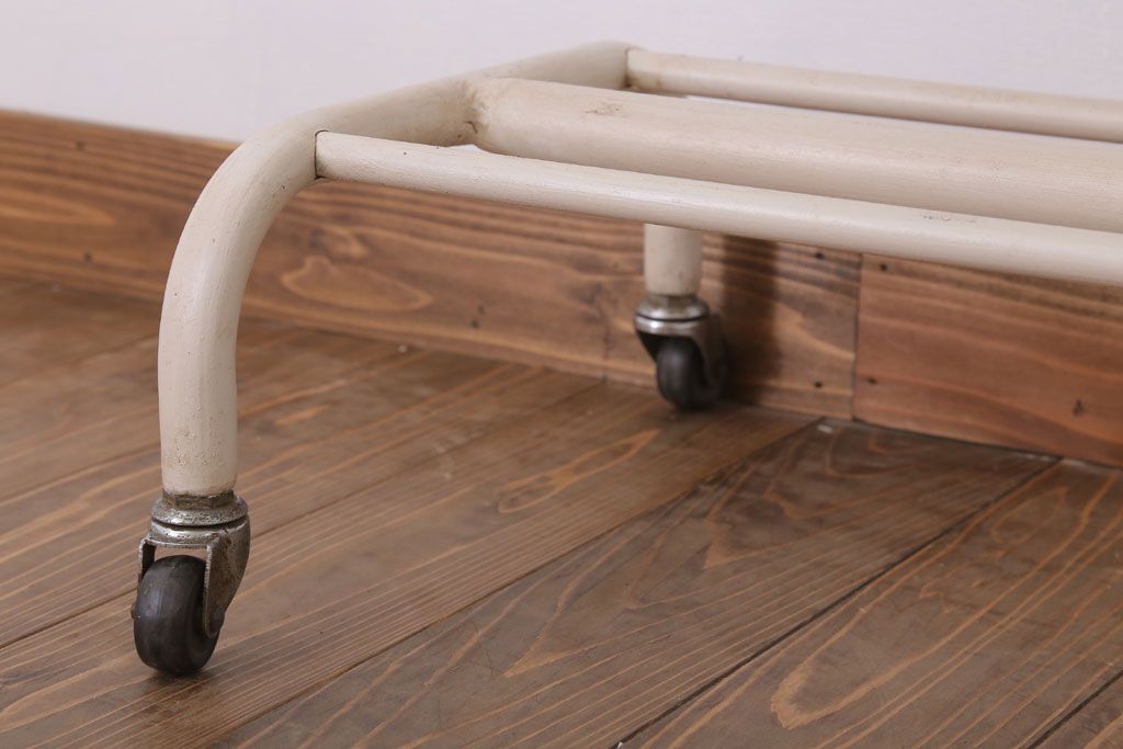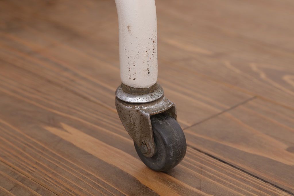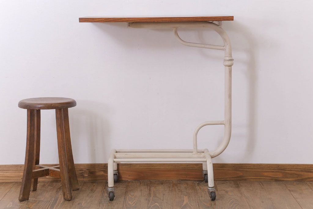 ラフジュ工房> 花台・飾り台 > アンティーク雑貨 栗材天板リメイク品 人気のキャスター付きサイドテーブル(作業台)(1)