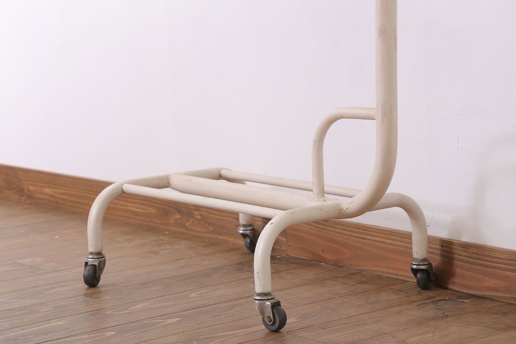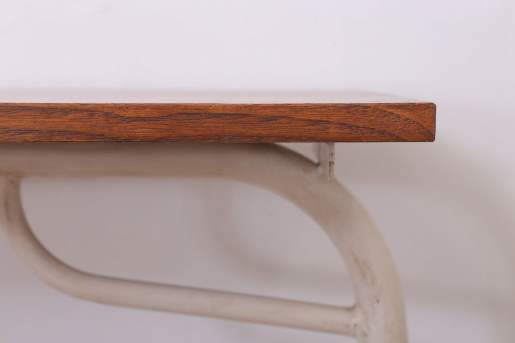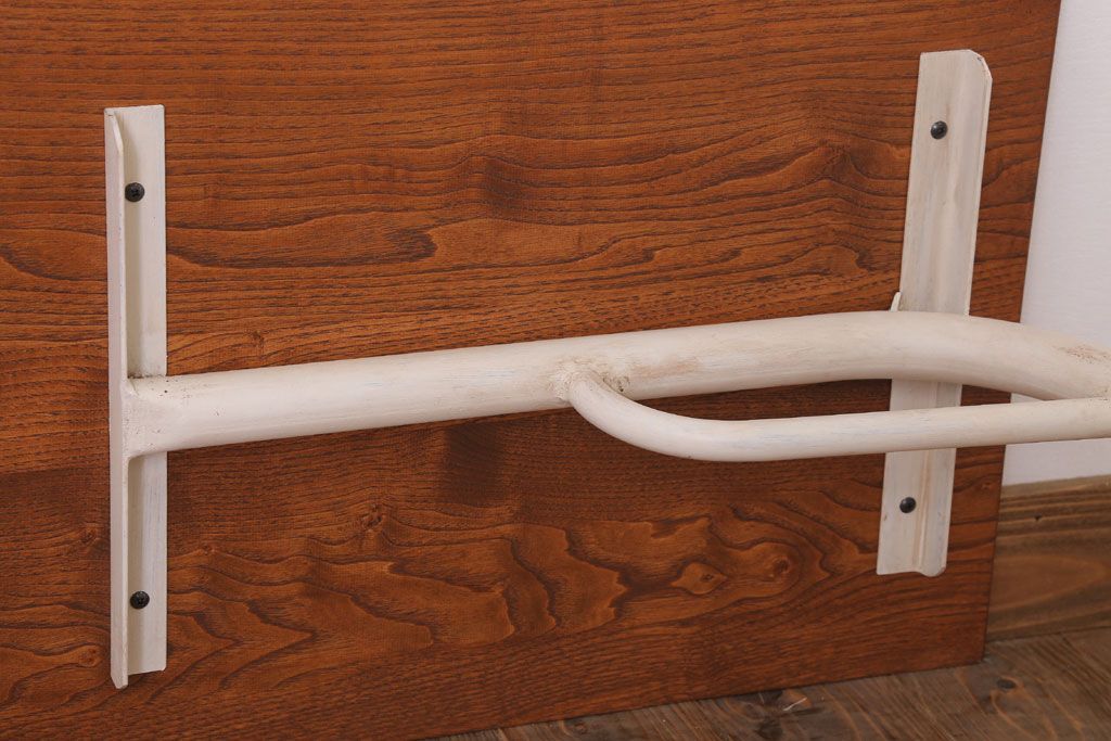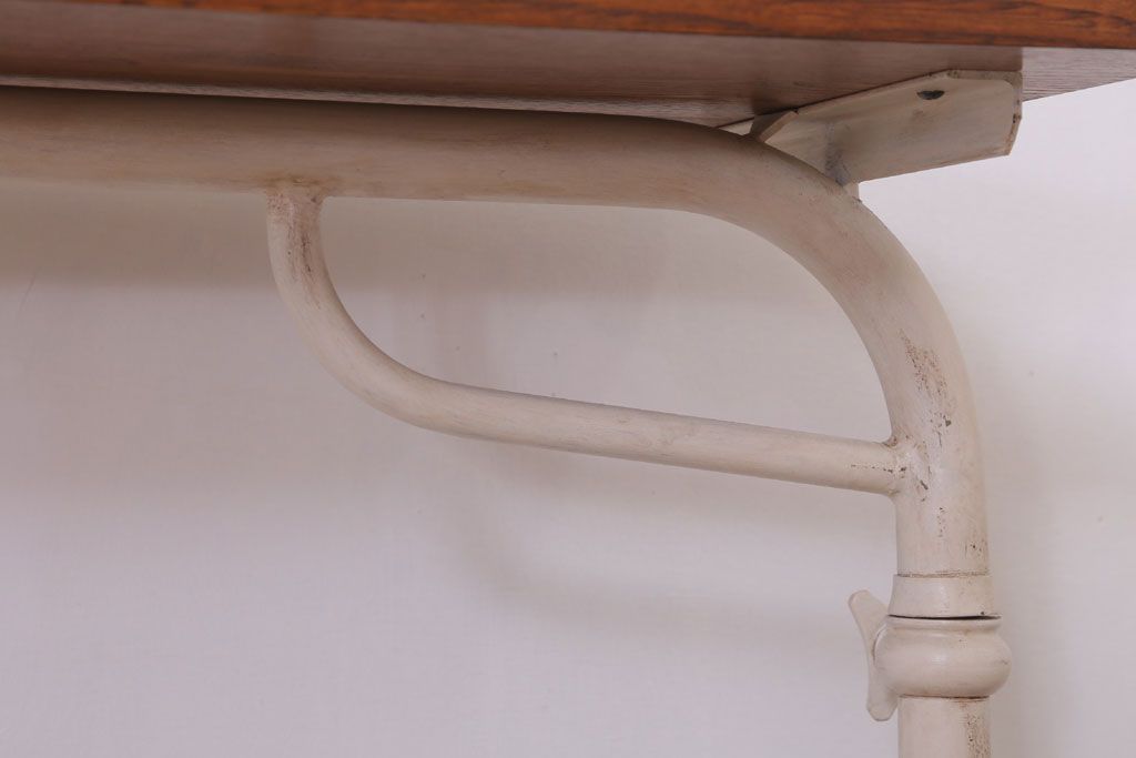 ラフジュ工房> テーブル> 鉄脚テーブル > アンティーク雑貨 栗材天板リメイク品 人気のキャスター付きサイドテーブル(作業台)(1)