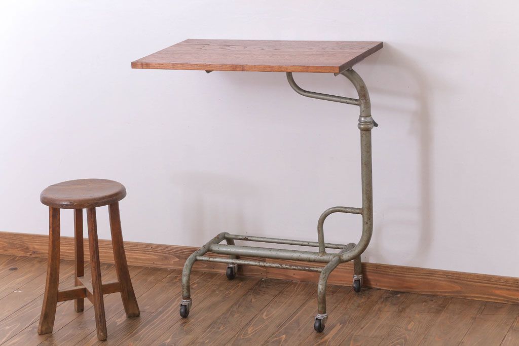 栗材天板リメイク品 人気のキャスター付きサイドテーブル(作業台)(2)です。