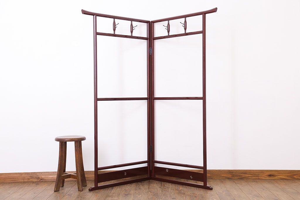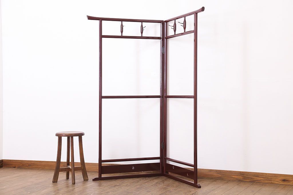 ラフジュ工房> ハンガーラック・衣桁> 衣桁 > アンティーク雑貨 古民具・骨董 上品な朱色の屏風衣桁(2)
