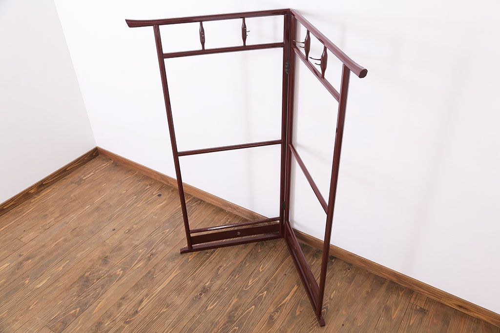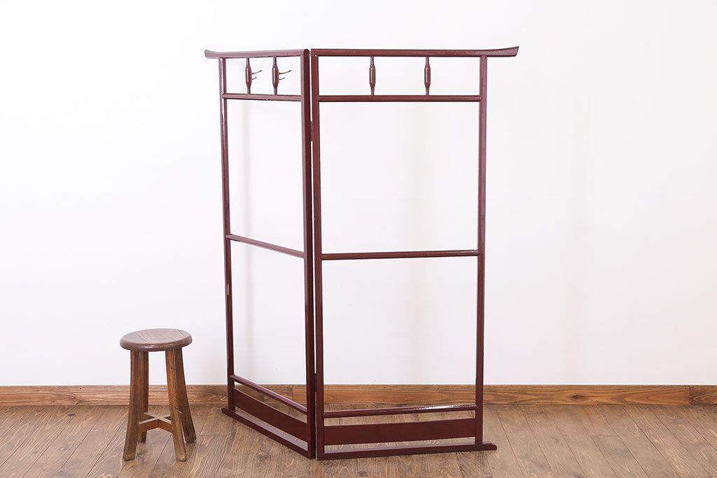 アンティーク雑貨 古民具・骨董 上品な朱色の屏風衣桁(2)