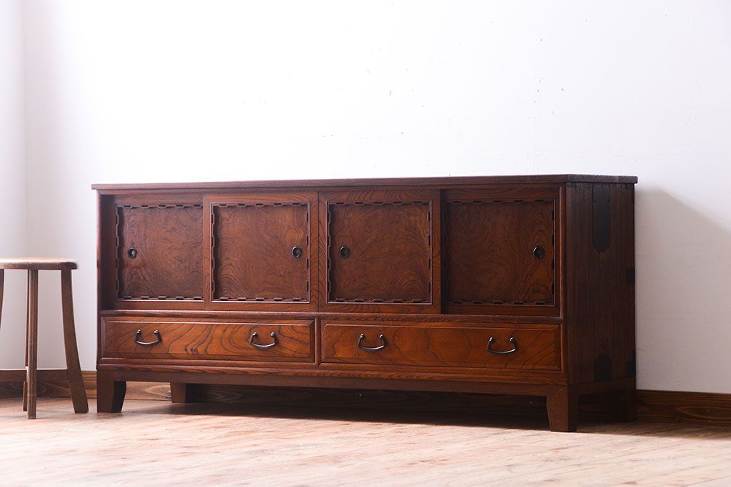 アンティーク家具 大正〜昭和 前面欅材 脚付き!和箪笥ローボード(1)