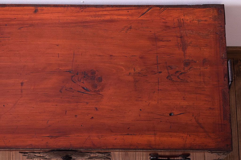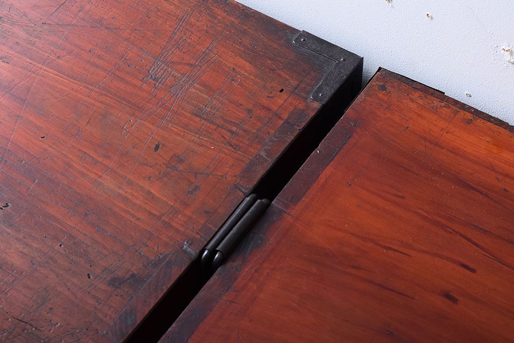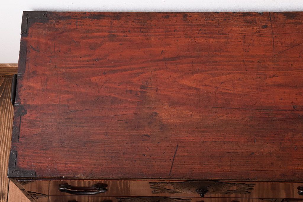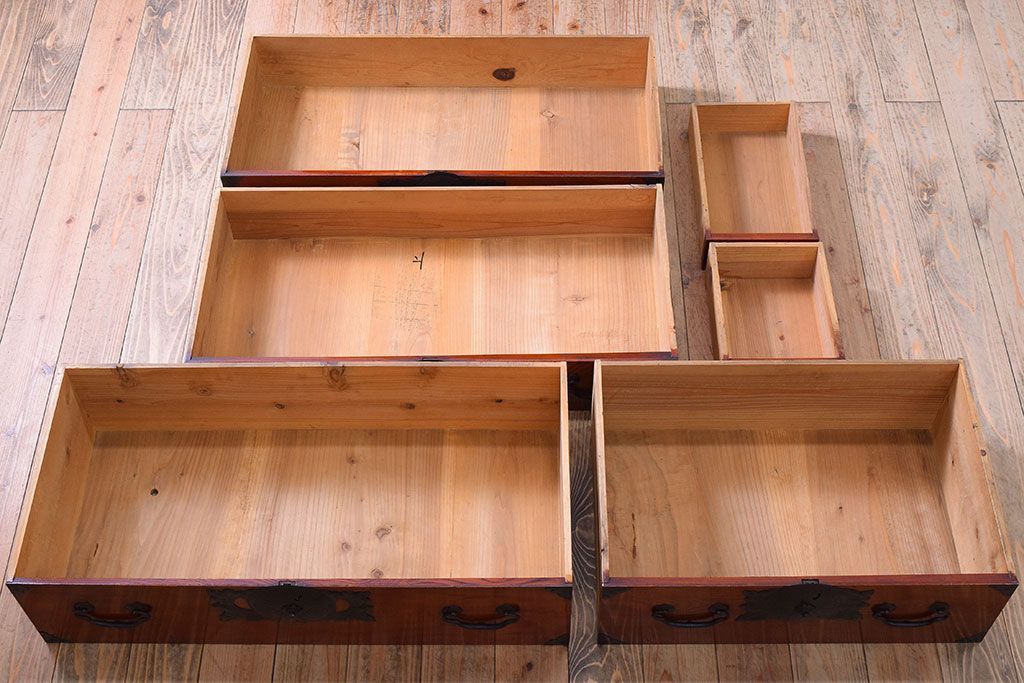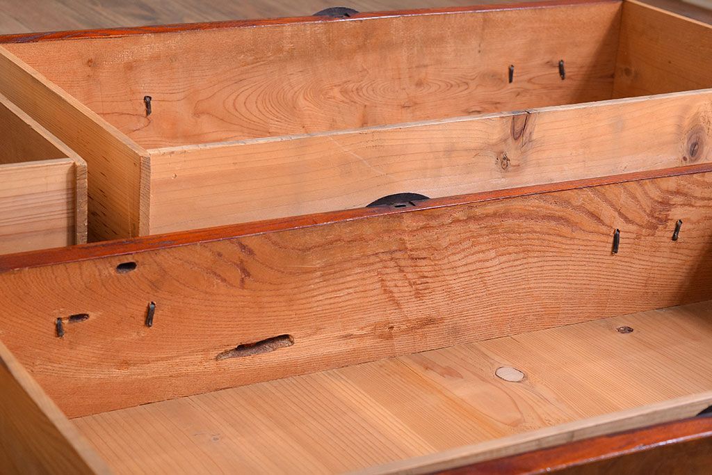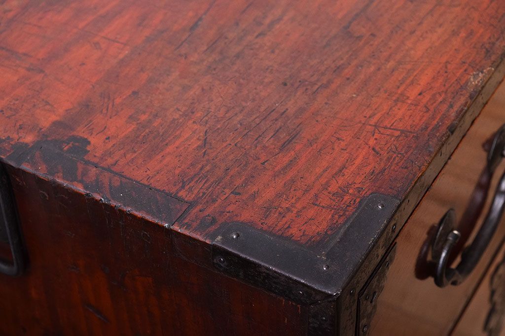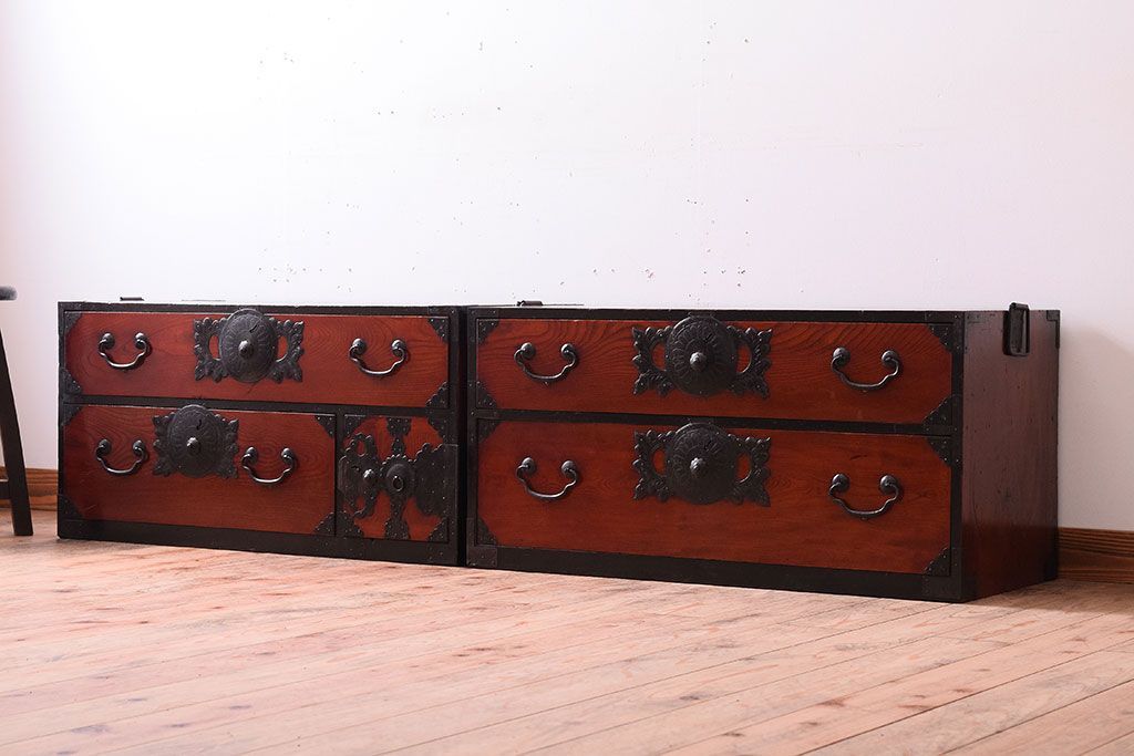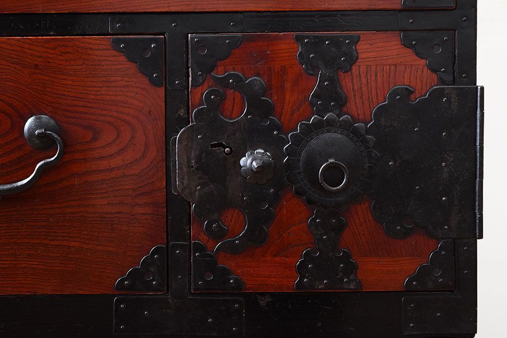 アンティーク家具 明治大正期 前面欅材の小ぶりな重ね仙台箪笥(衣装箪笥)