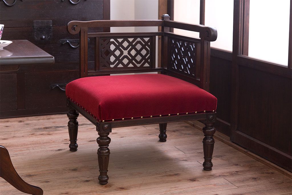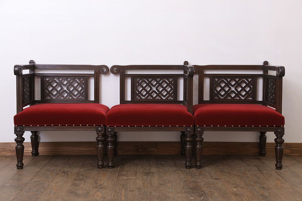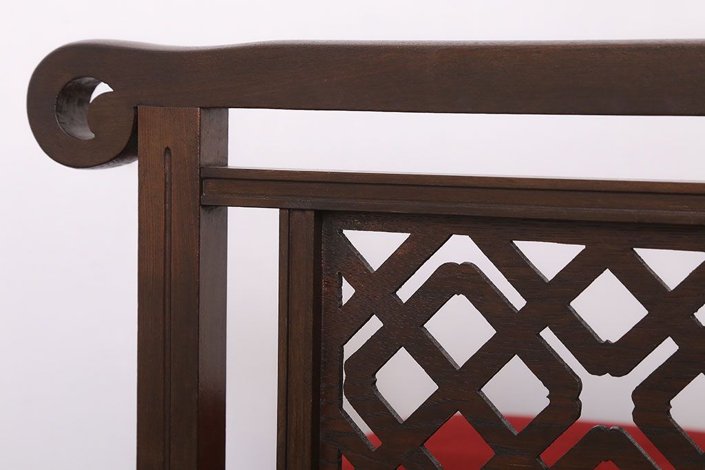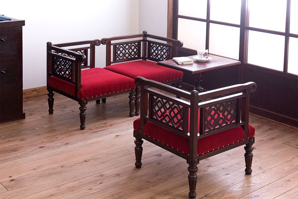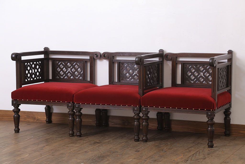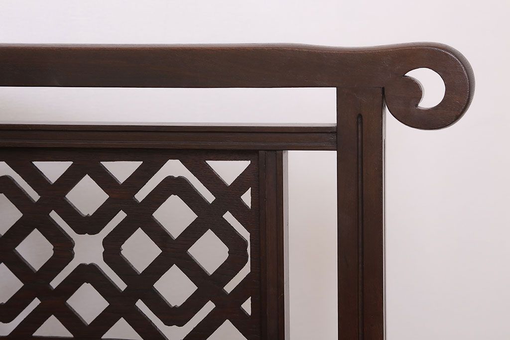 ソファ > アンティーク家具 大正ロマン ナラ材製 透かし彫りが美しい和製アンティークコーナーソファ(1)