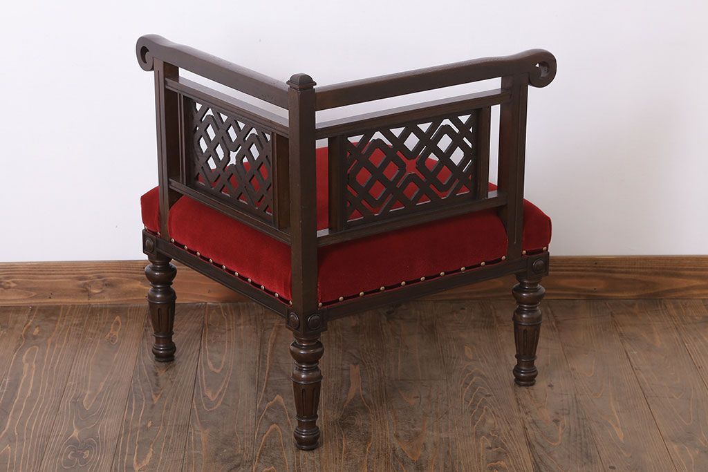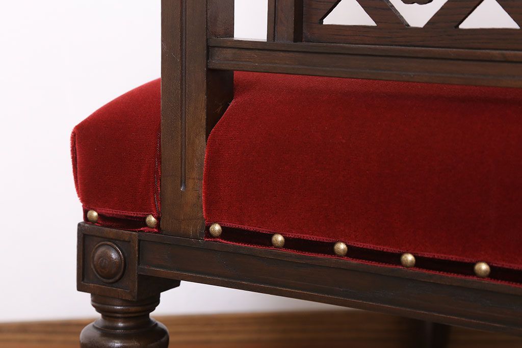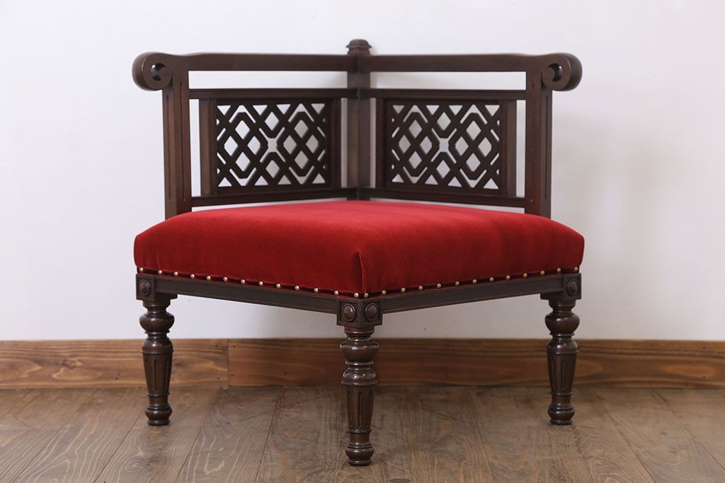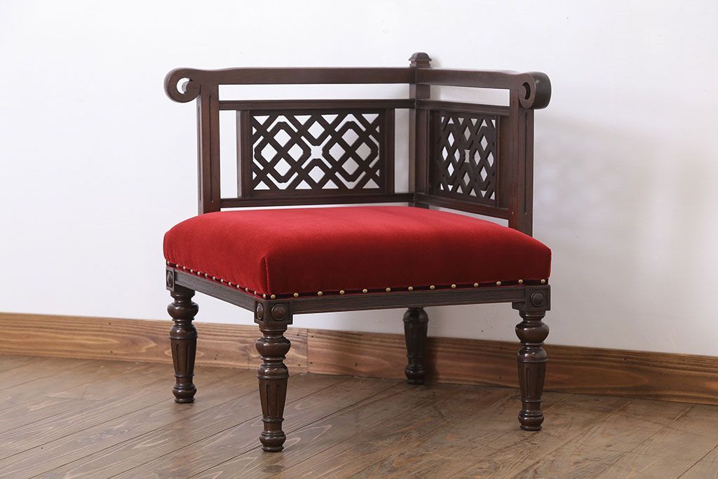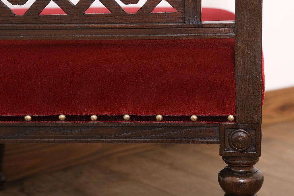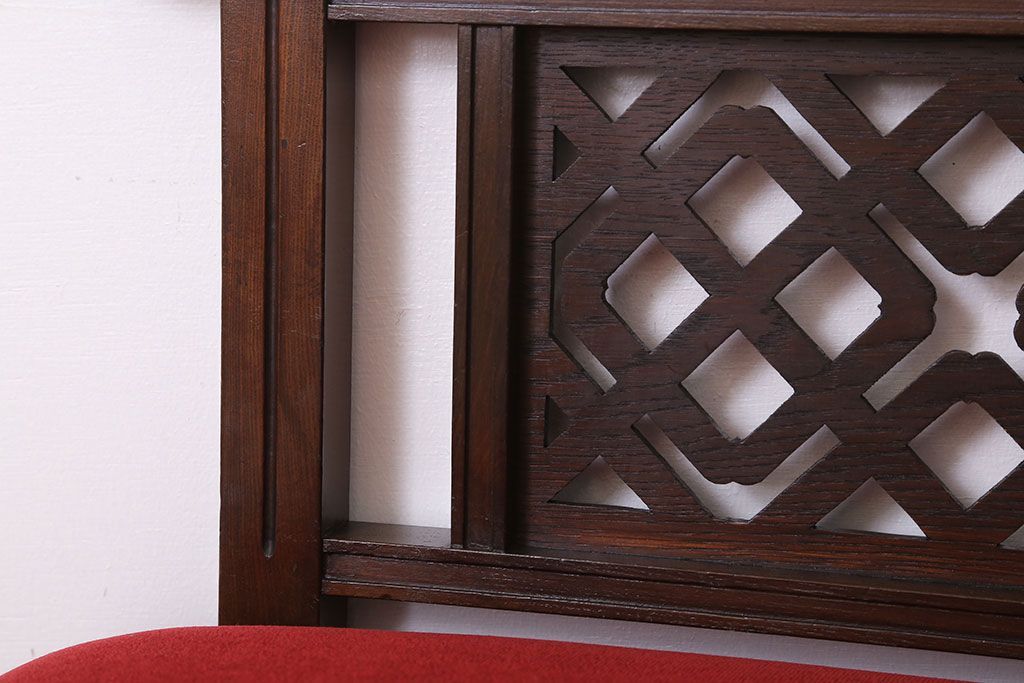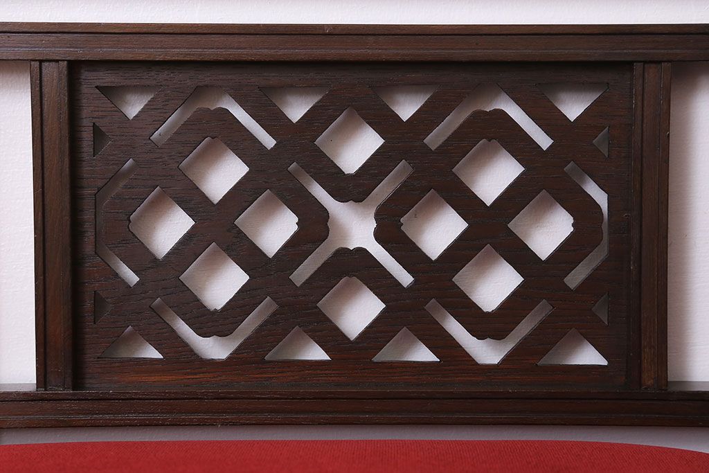 アンティーク家具 大正ロマン ナラ材製 透かし彫りが美しい和製アンティークコーナーソファ(1)
