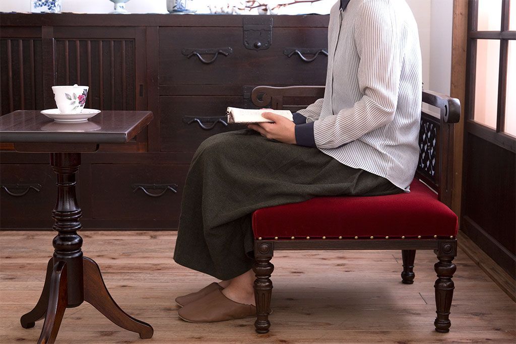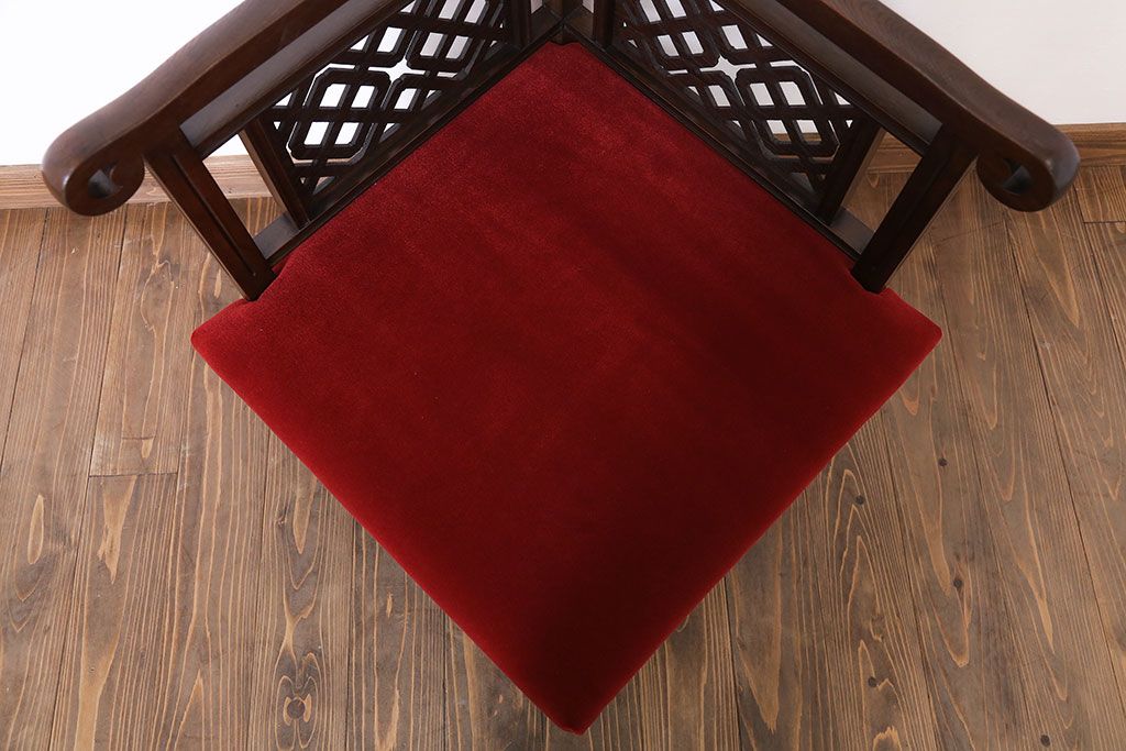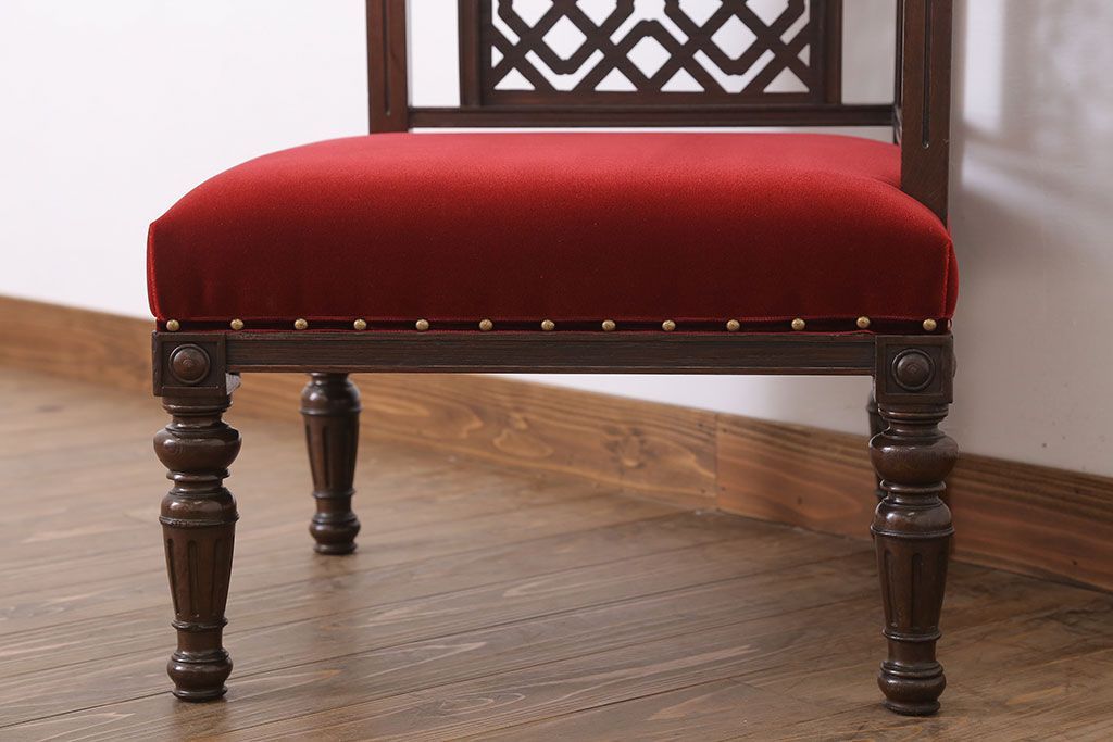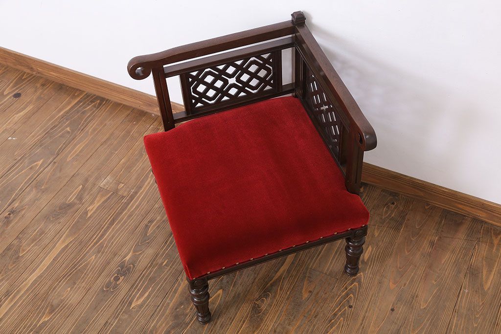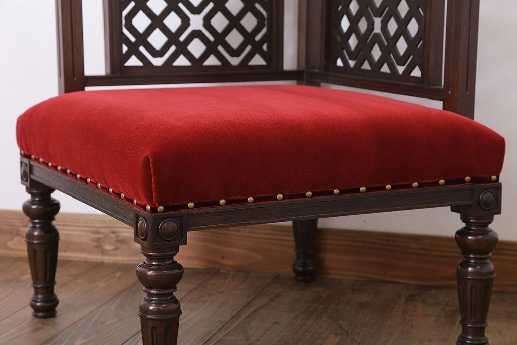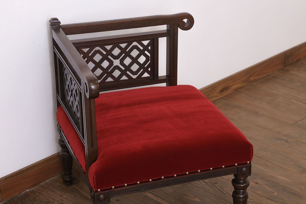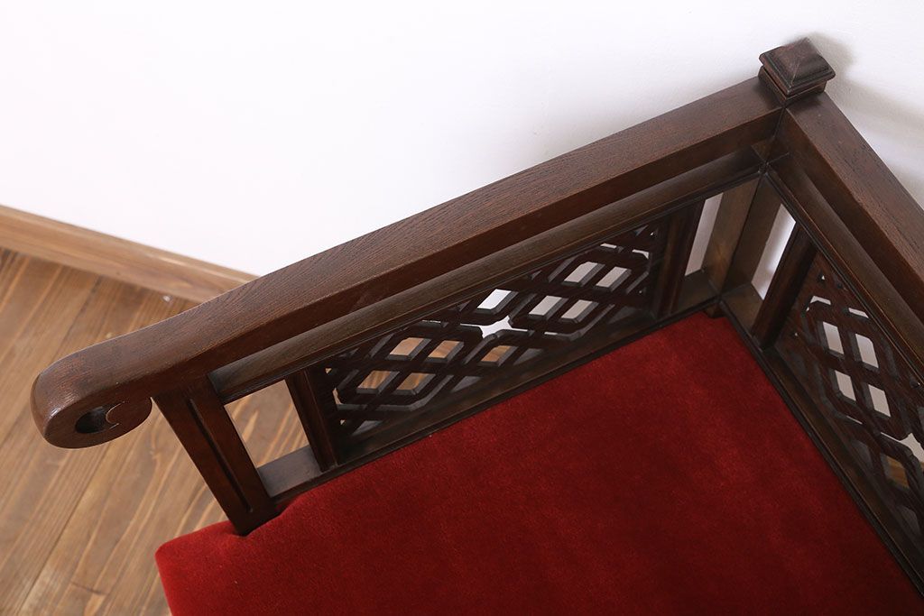 アンティーク家具 大正ロマン ナラ材製 透かし彫りが美しい和製アンティークコーナーソファ(1)