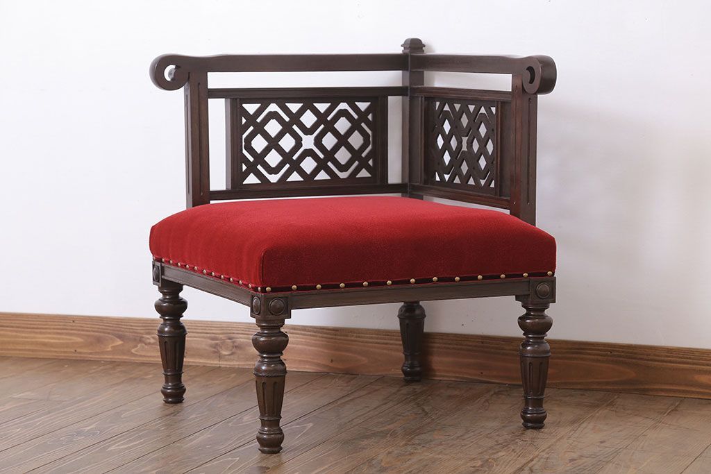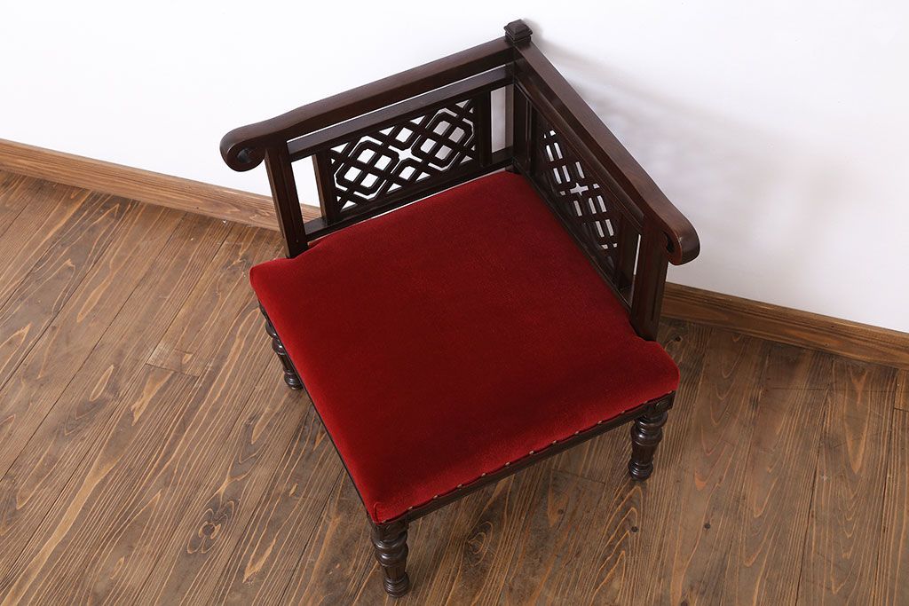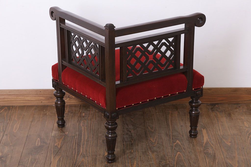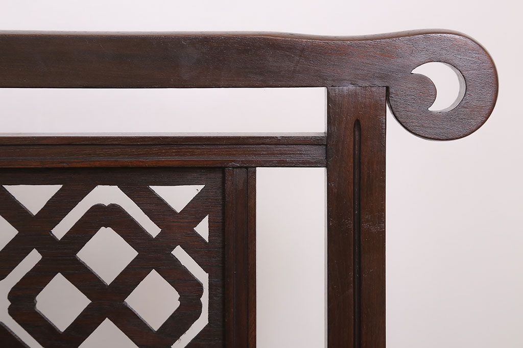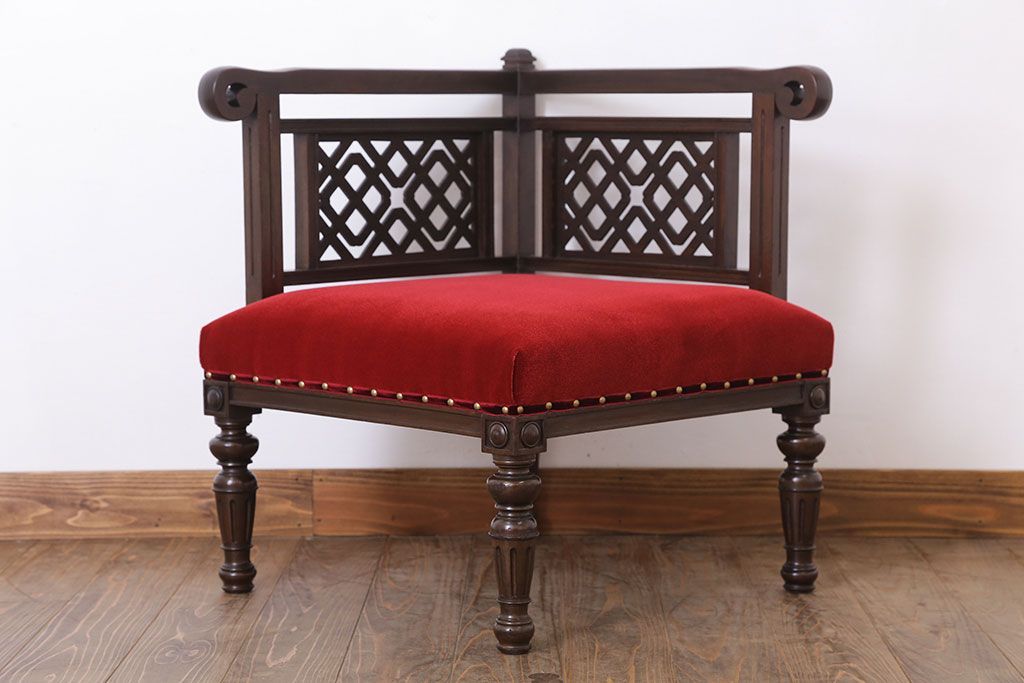 ソファ > アンティーク家具 大正ロマン ナラ材製 透かし彫りが美しい和製アンティークコーナーソファ(2)