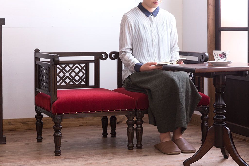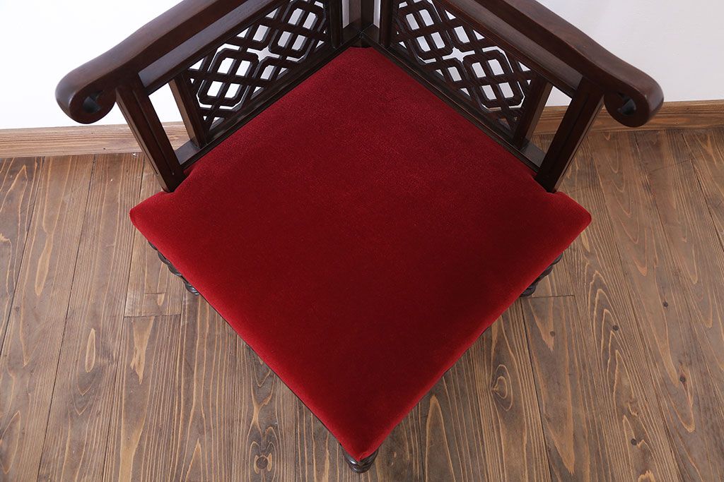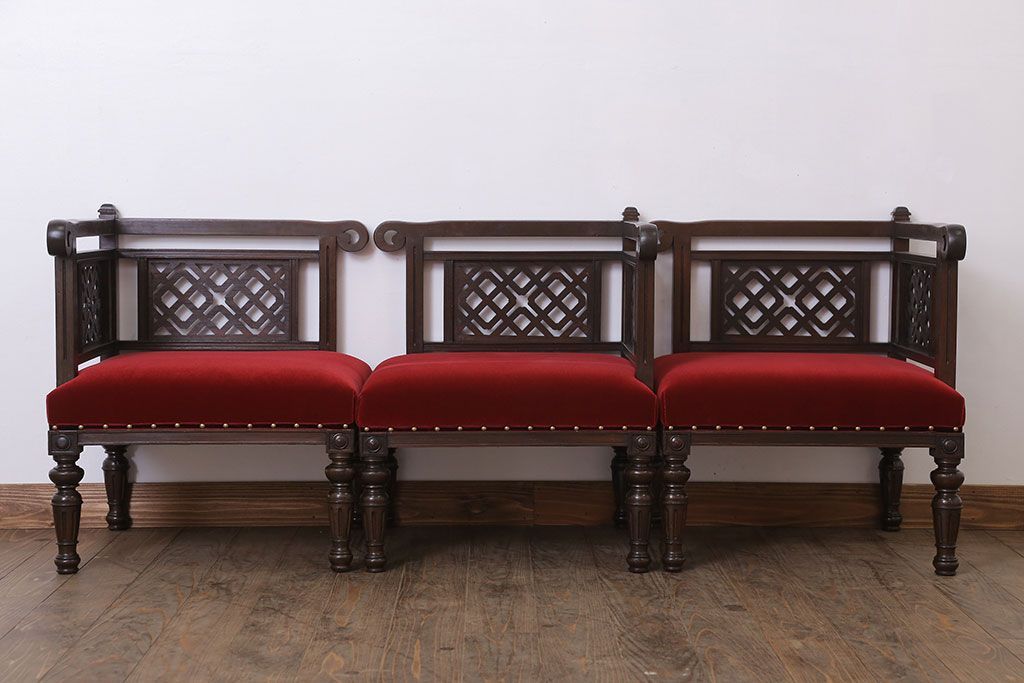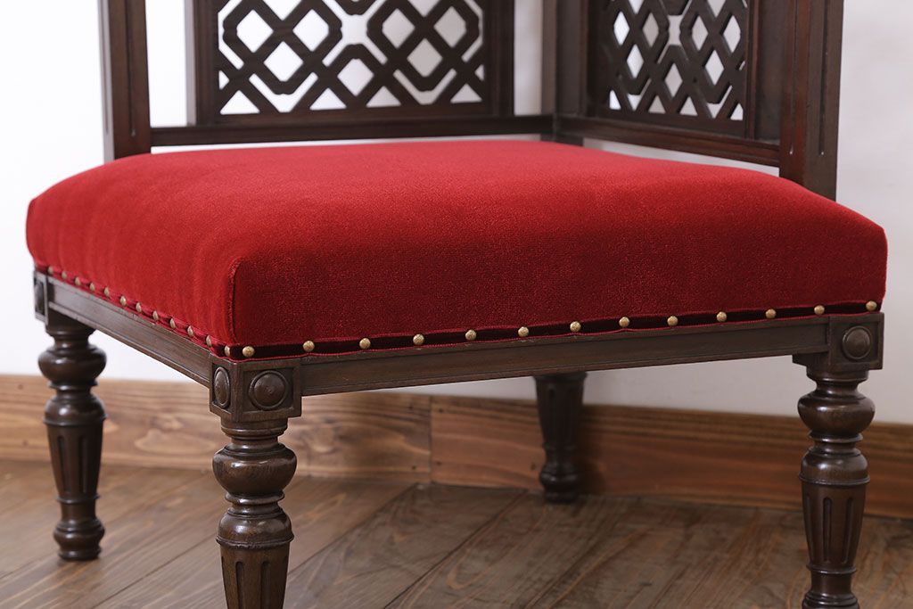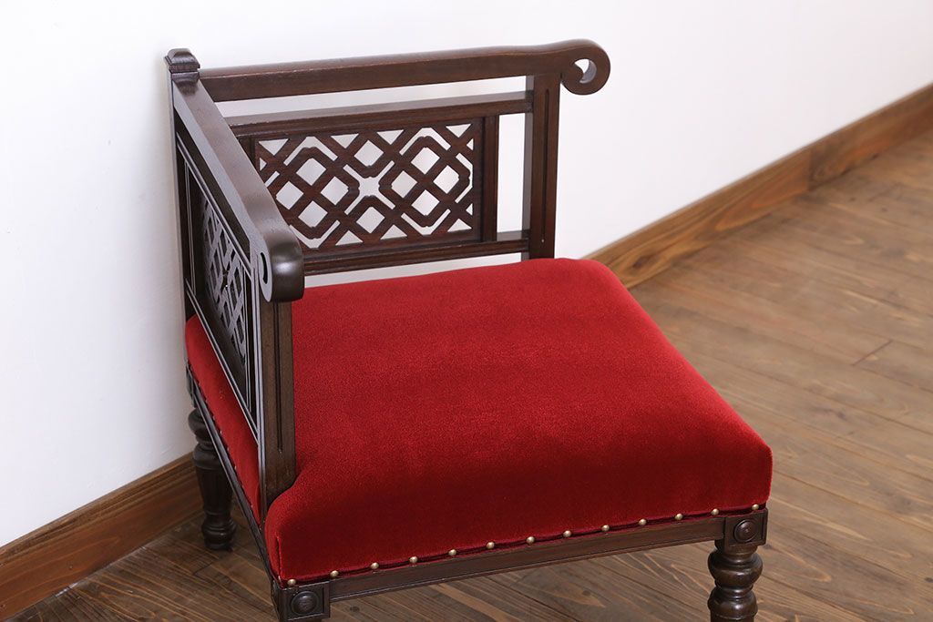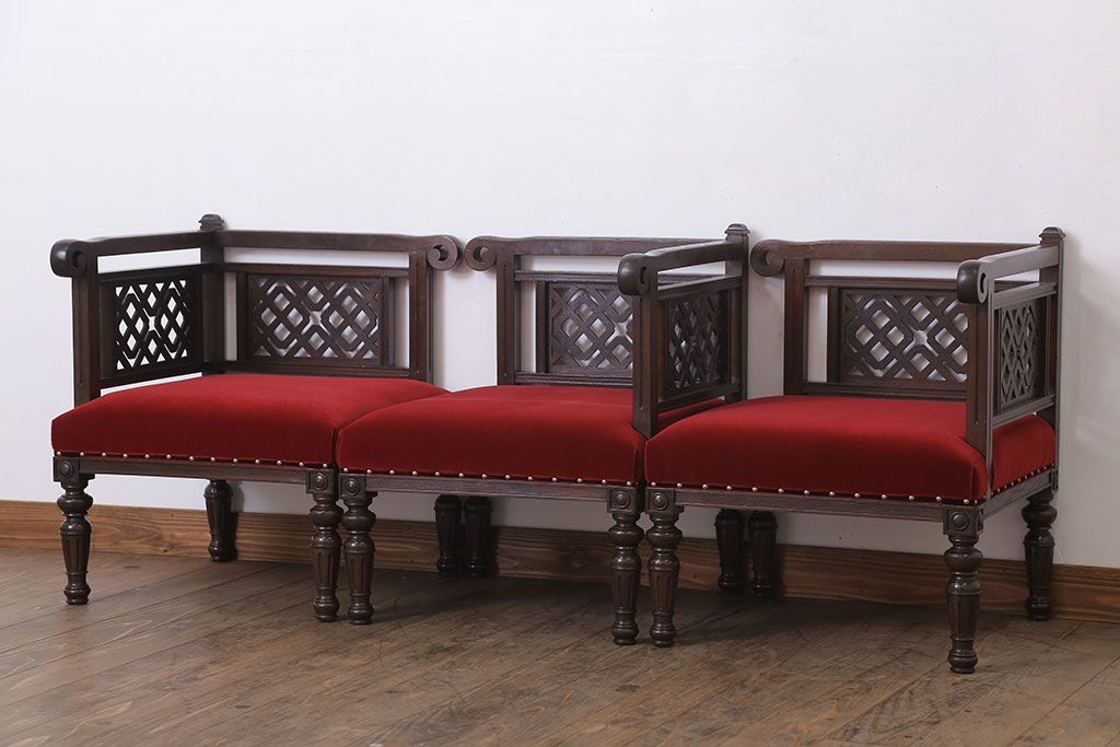 ソファ > アンティーク家具 大正ロマン ナラ材製 透かし彫りが美しい和製アンティークコーナーソファ(2)
