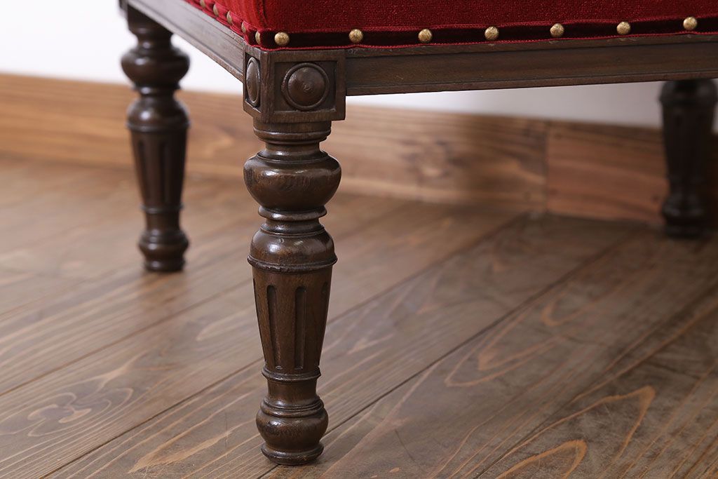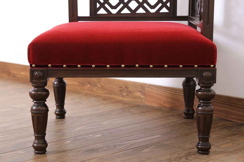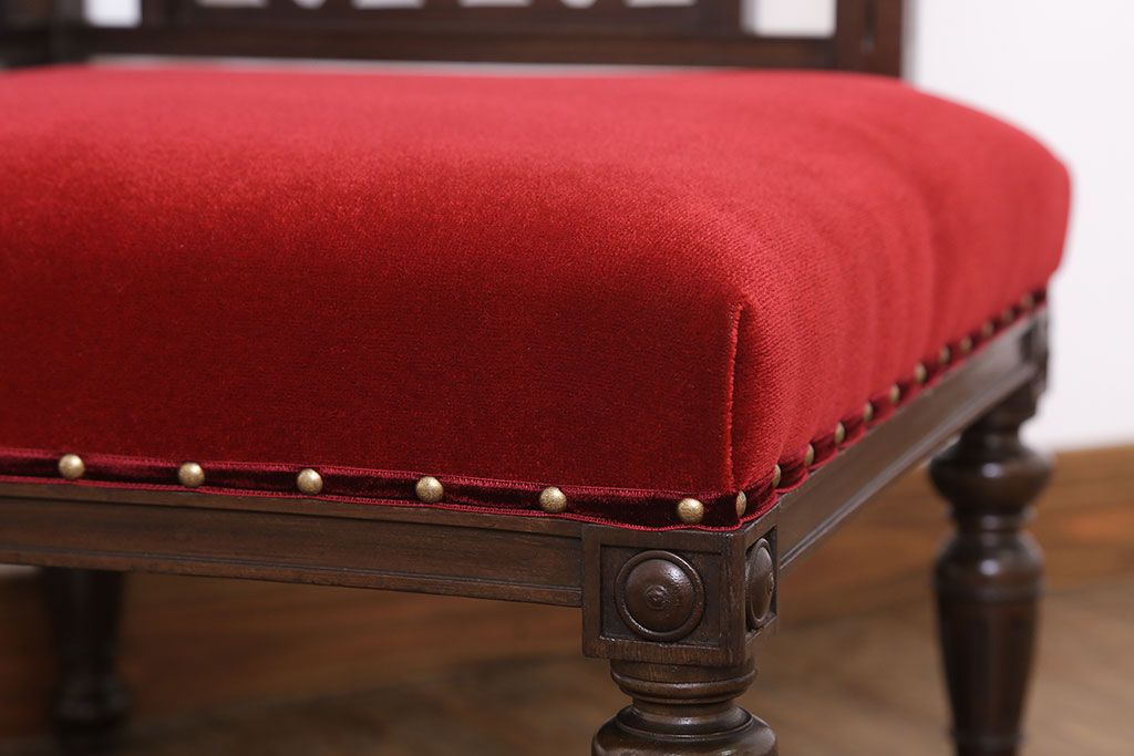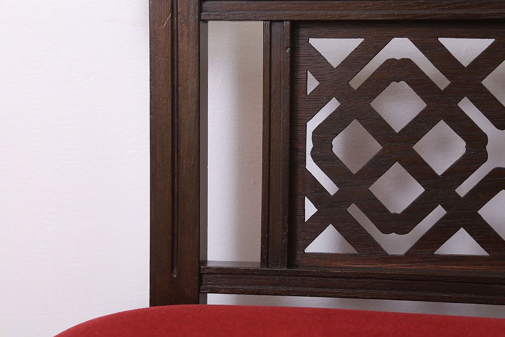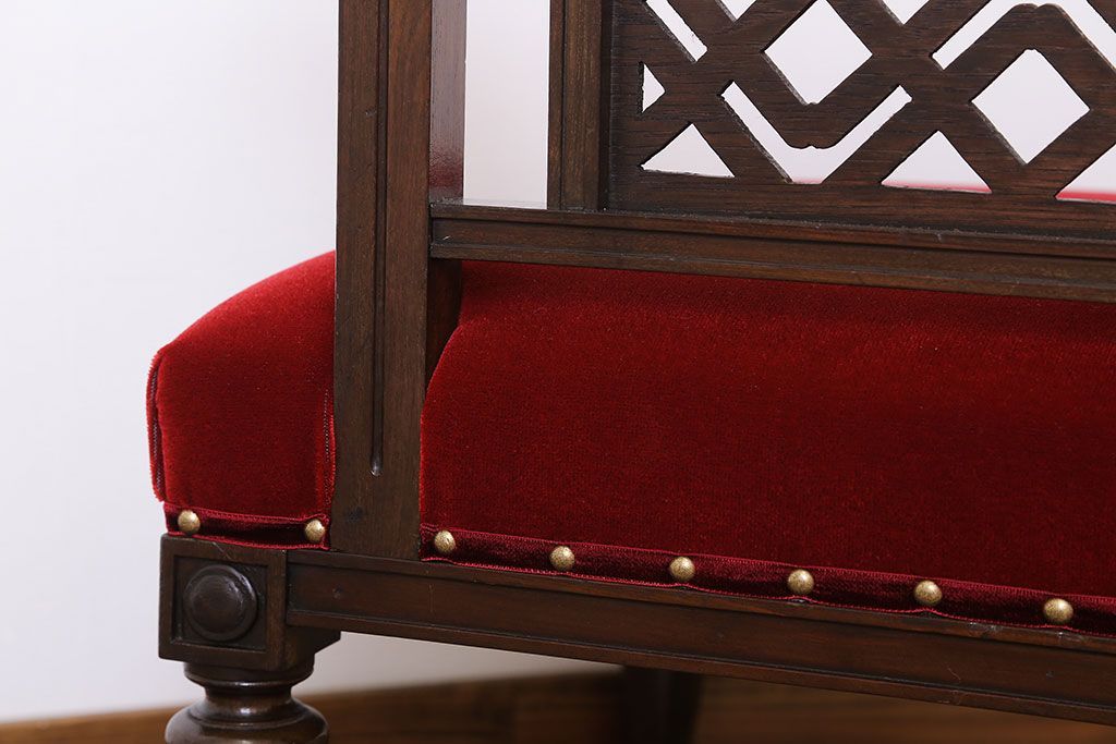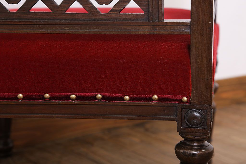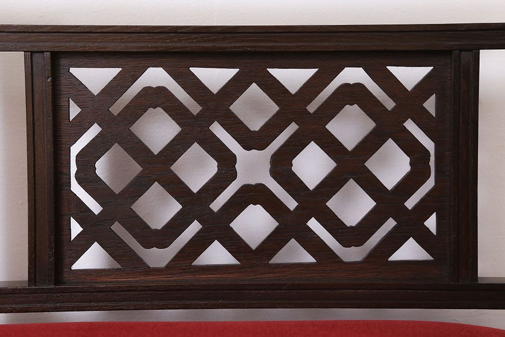 アンティーク家具 大正ロマン ナラ材製 透かし彫りが美しい和製アンティークコーナーソファ(2)