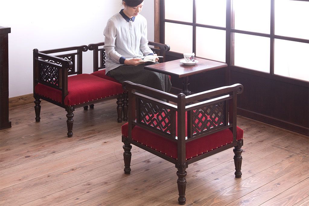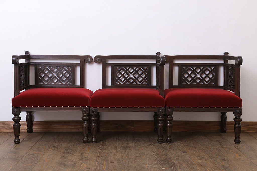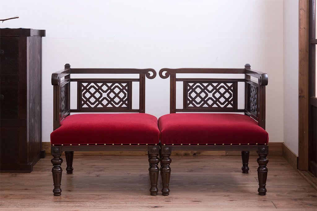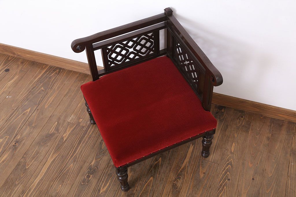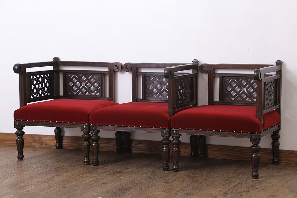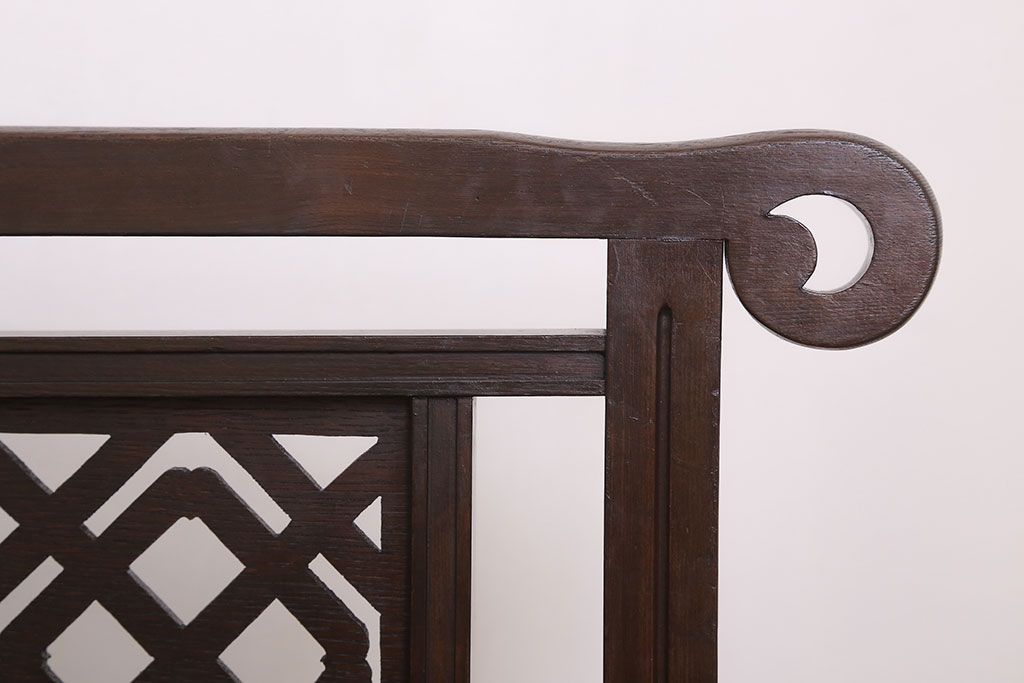 ソファ > アンティーク家具 大正ロマン ナラ材製 透かし彫りが美しい和製アンティークコーナーソファ(3)