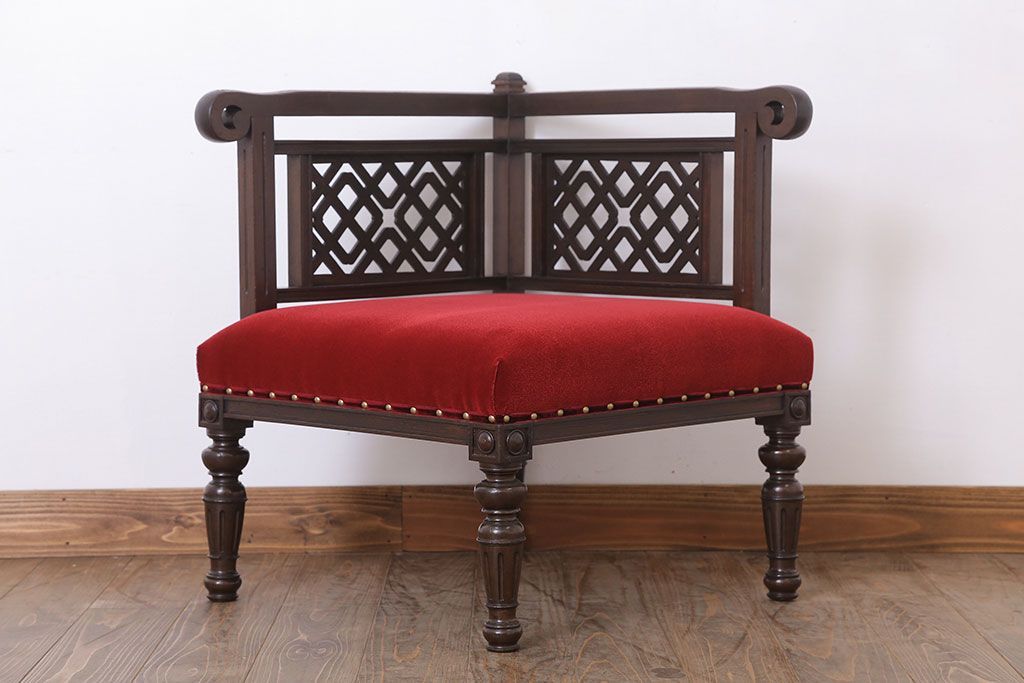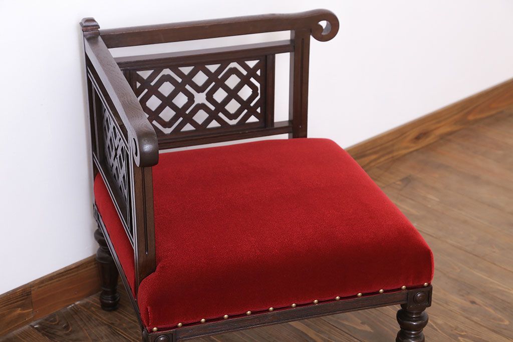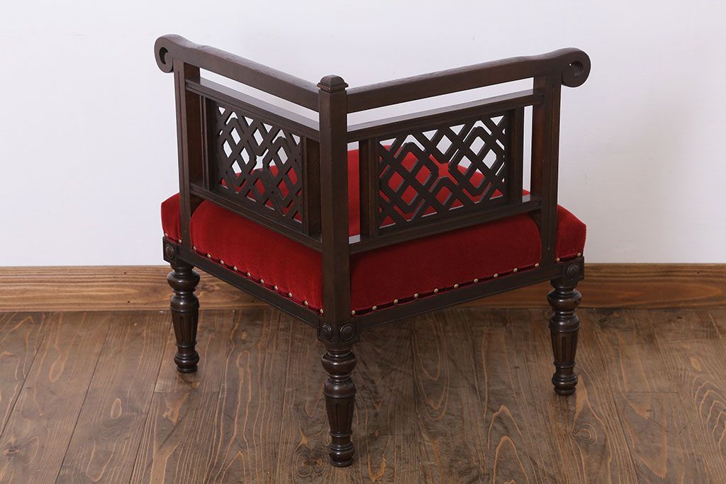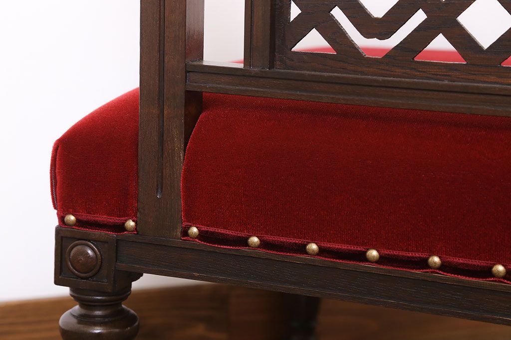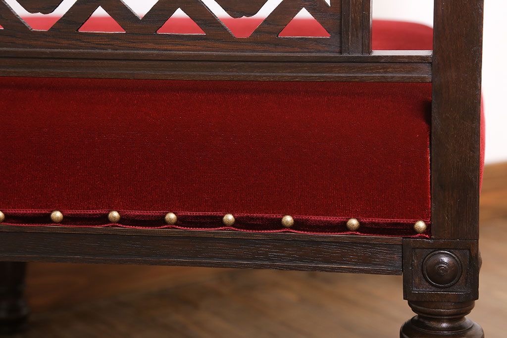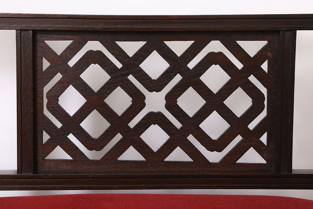 アンティーク家具 大正ロマン ナラ材製 透かし彫りが美しい和製アンティークコーナーソファ(3)