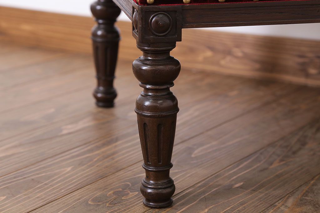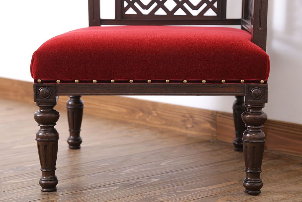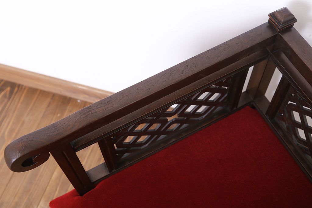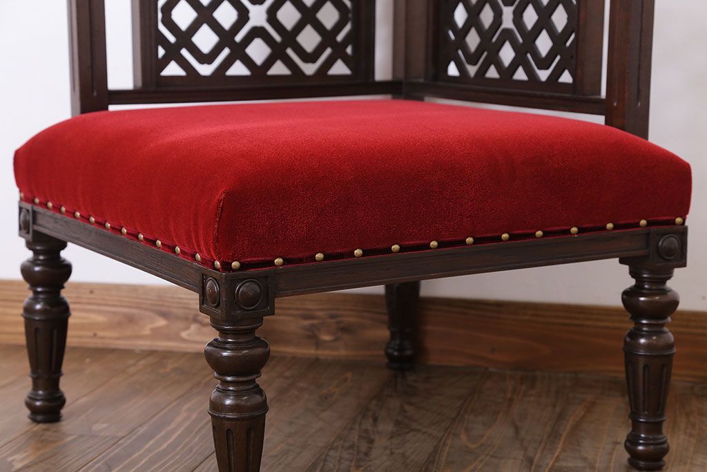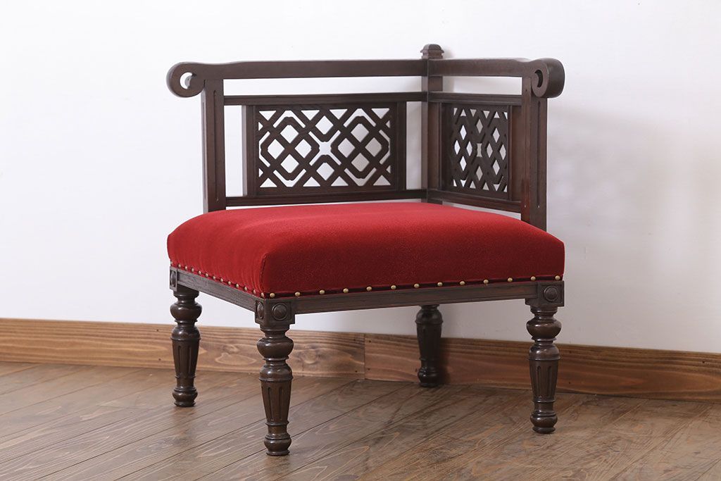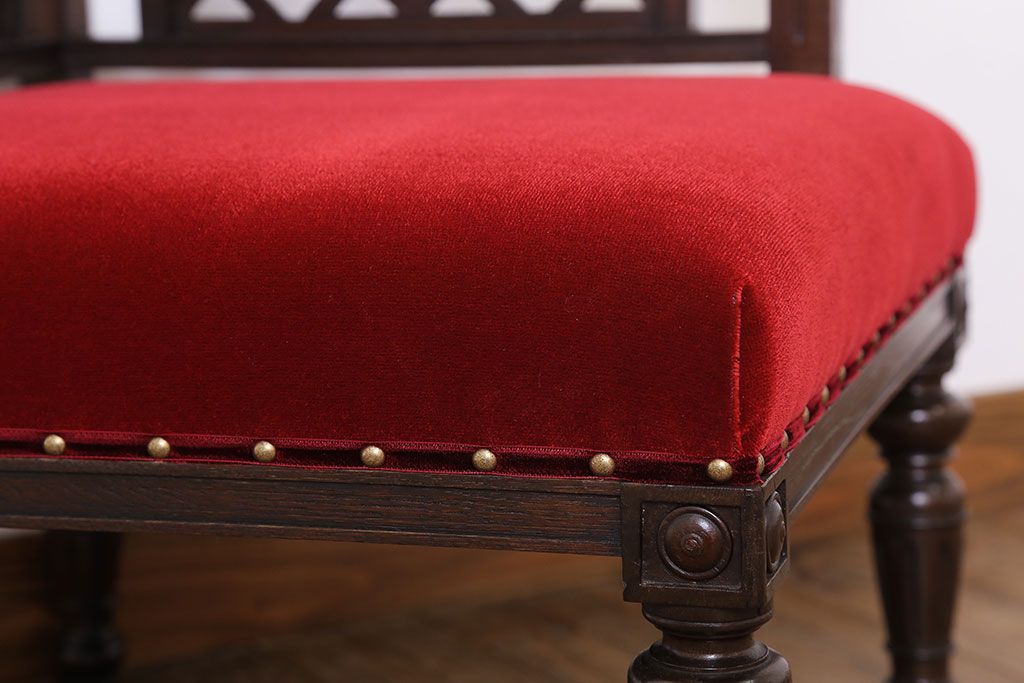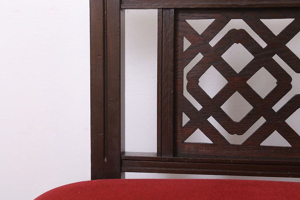 アンティーク家具 大正ロマン ナラ材製 透かし彫りが美しい和製アンティークコーナーソファ(3)