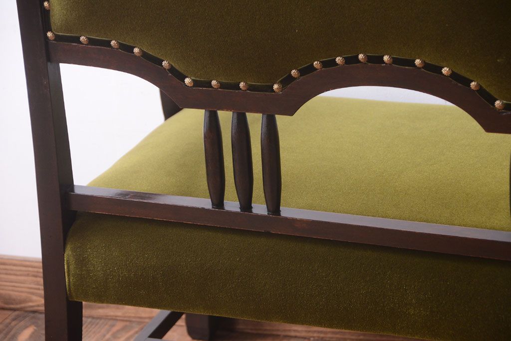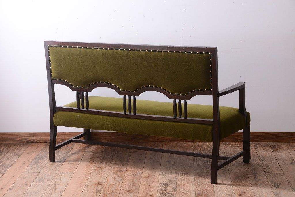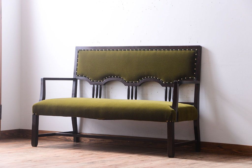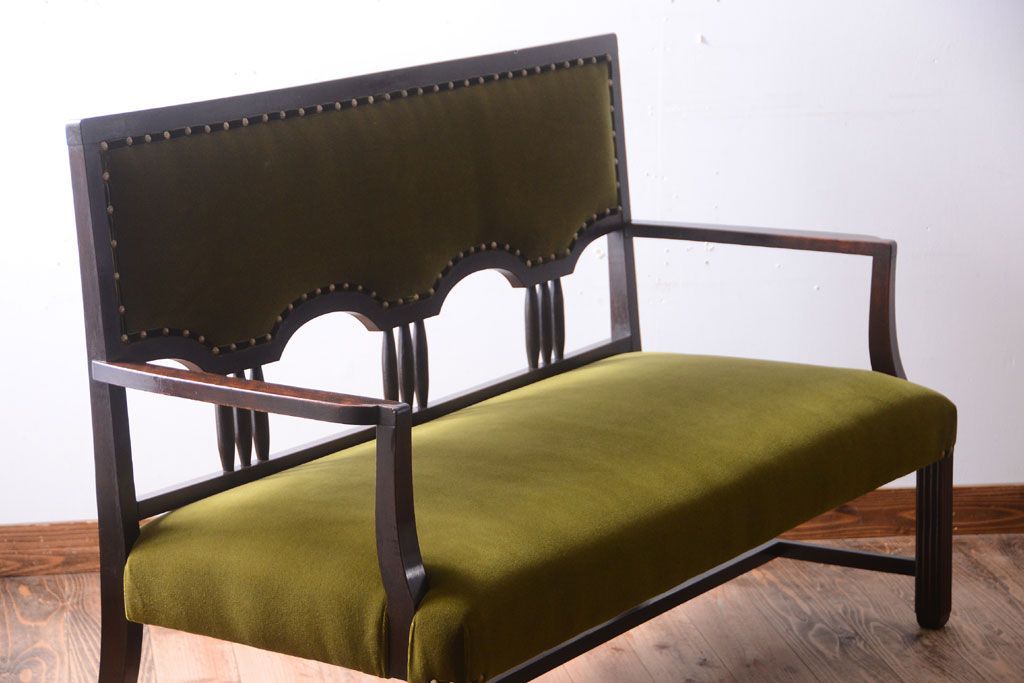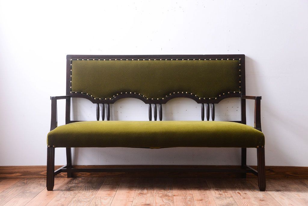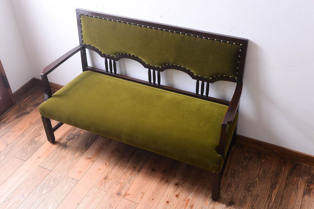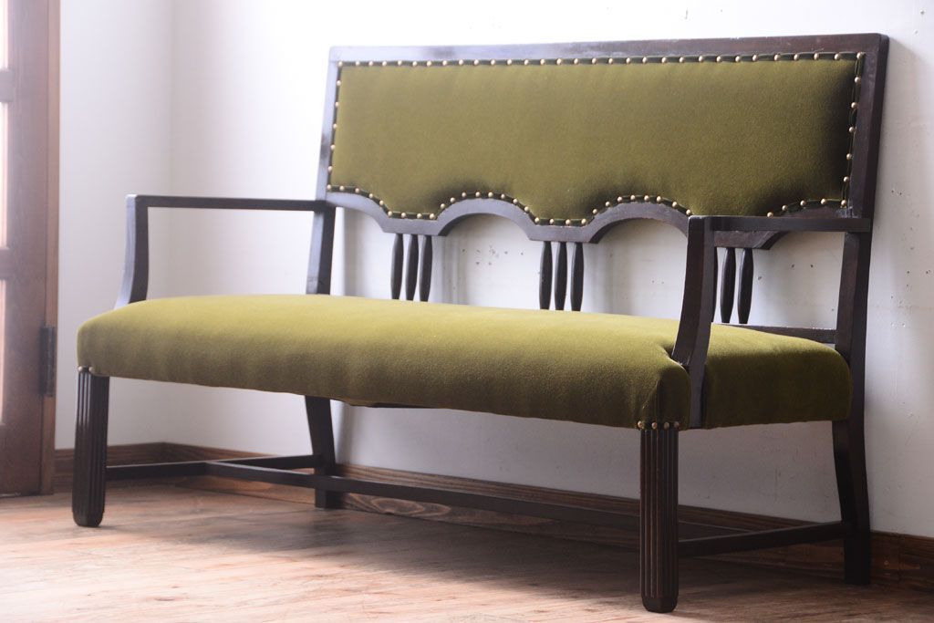アンティーク家具 大正ロマン 古い木製のモダンなアンティークベンチ(ソファ)