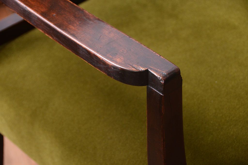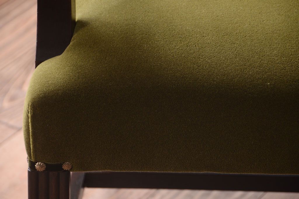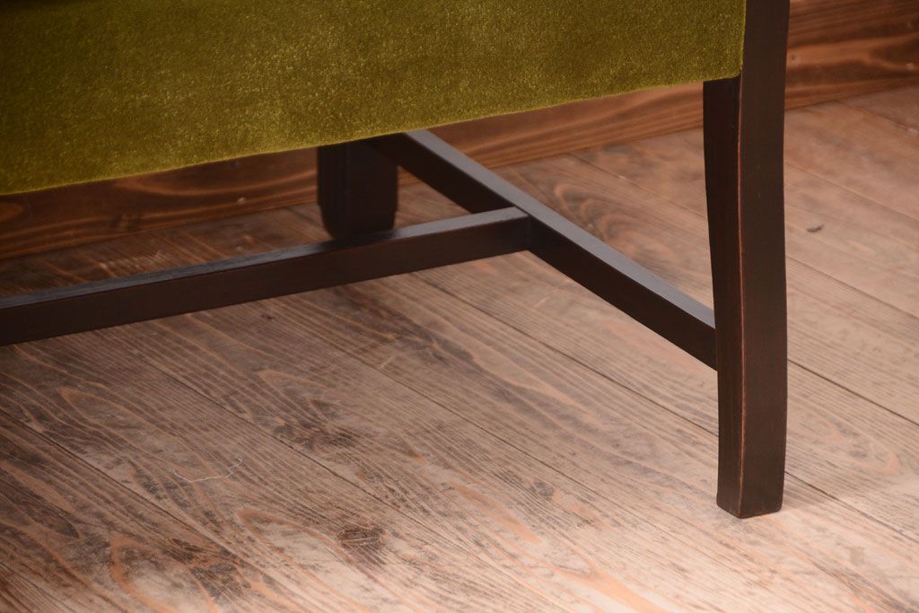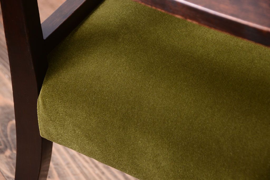 座面生地とクッション(座面内スポンジ)は当店にて張り替えておりますので、しっかりとしております。