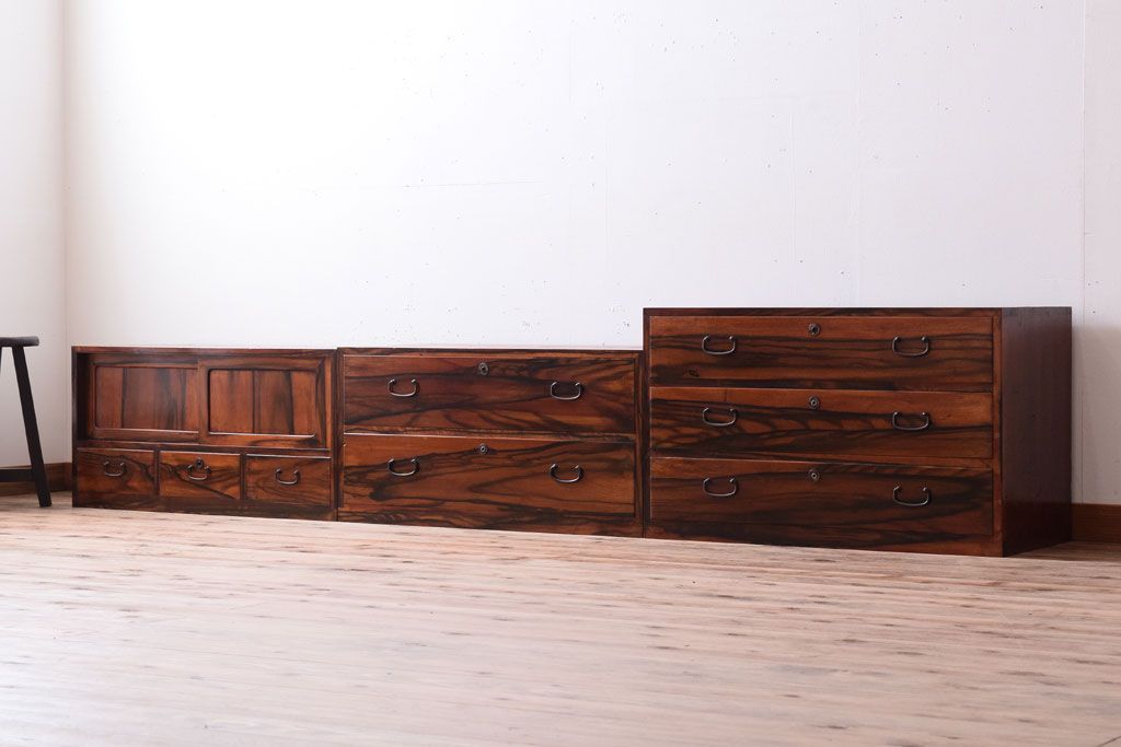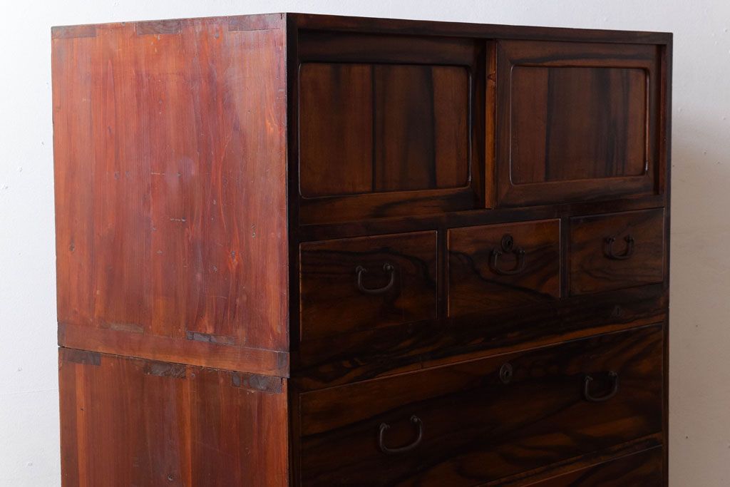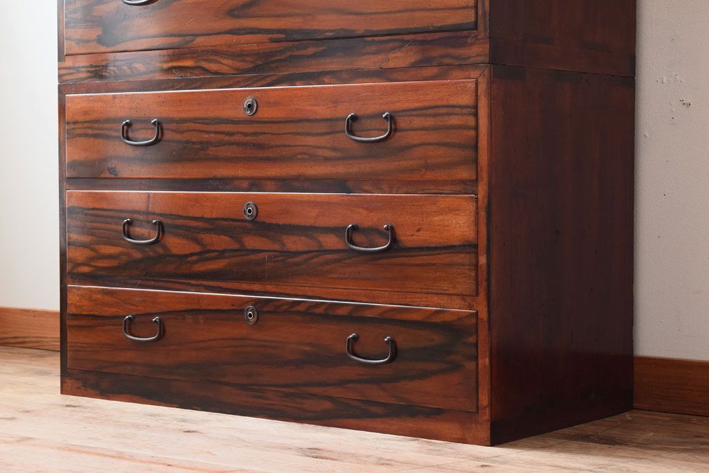アンティーク家具 黒柿材貼り!和製アンティークの3段箪笥