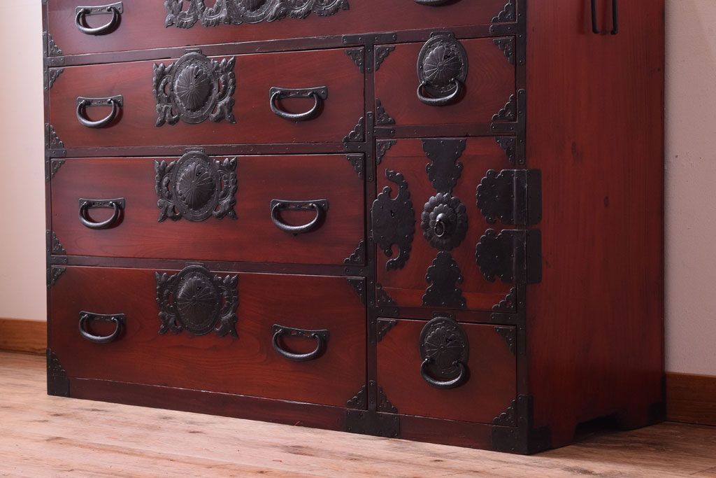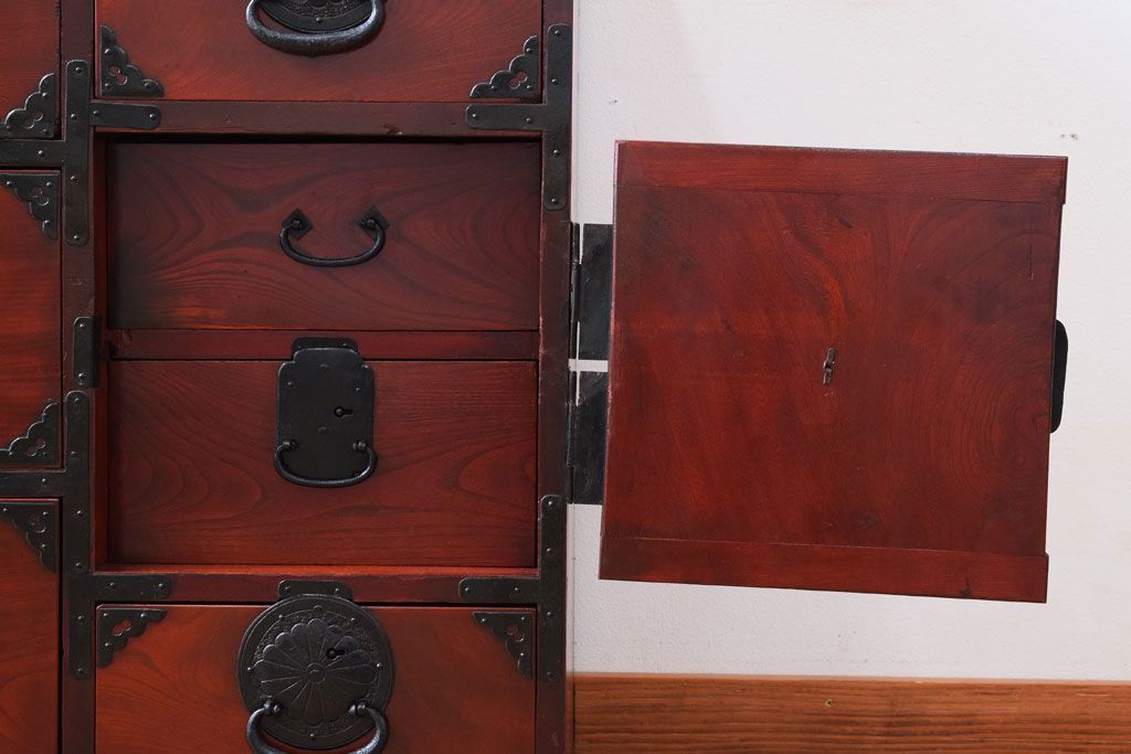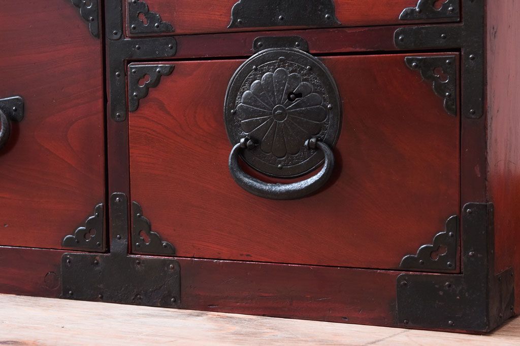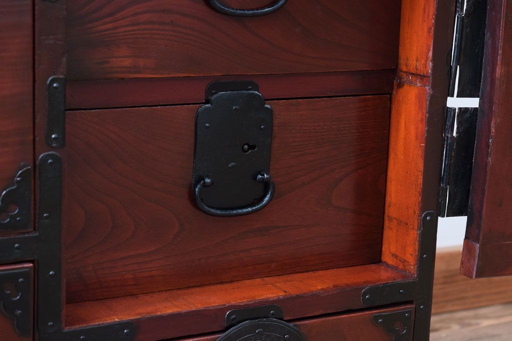 アンティーク家具 前面欅材 古民具・骨董 明治〜大正期のアンティーク仙台箪笥