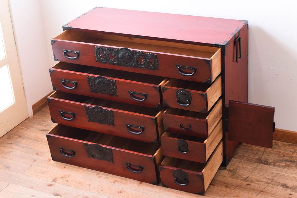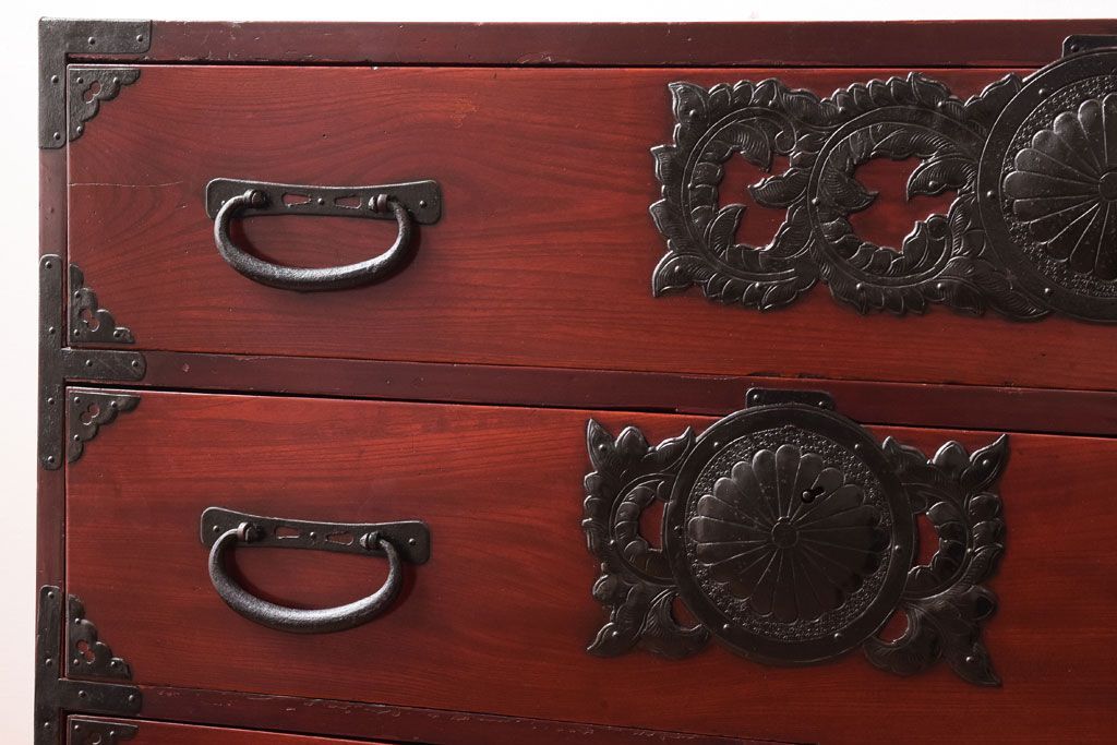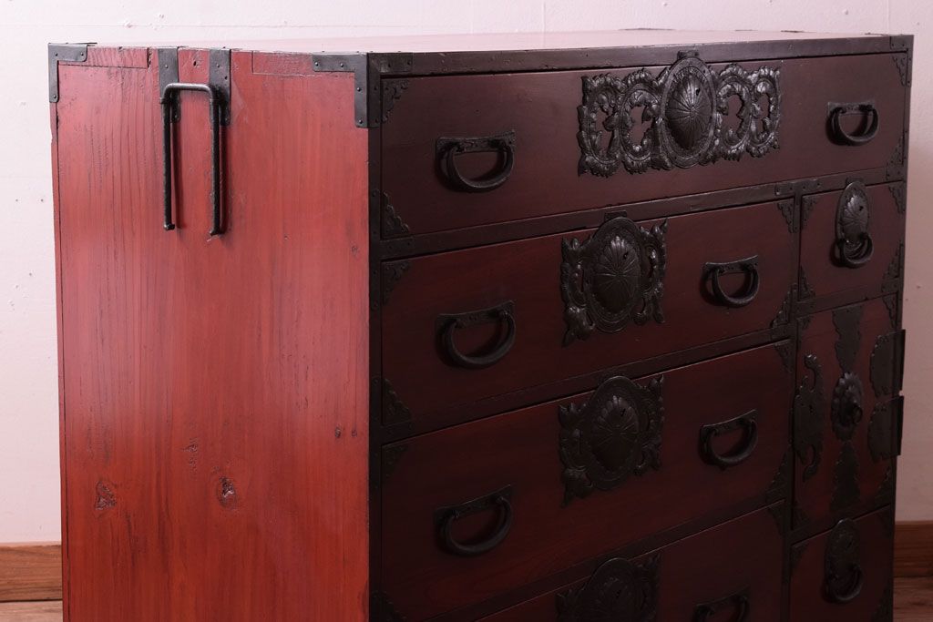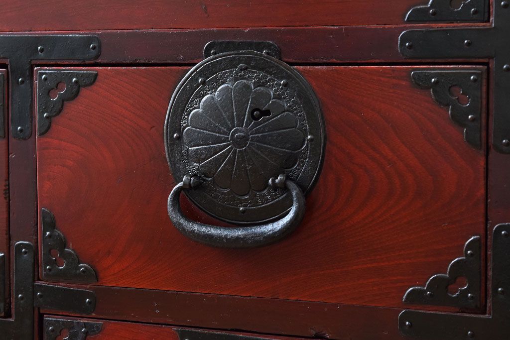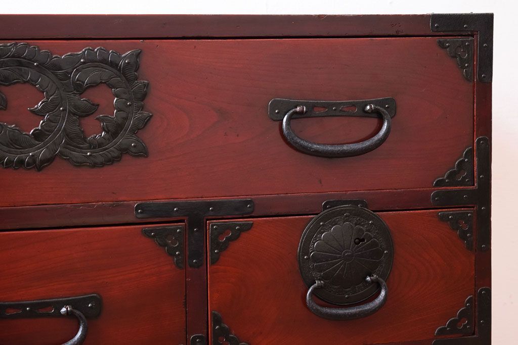 アンティーク家具 前面欅材 古民具・骨董 明治〜大正期のアンティーク仙台箪笥