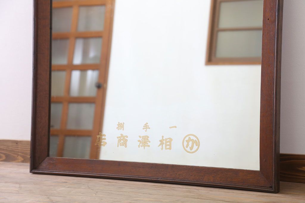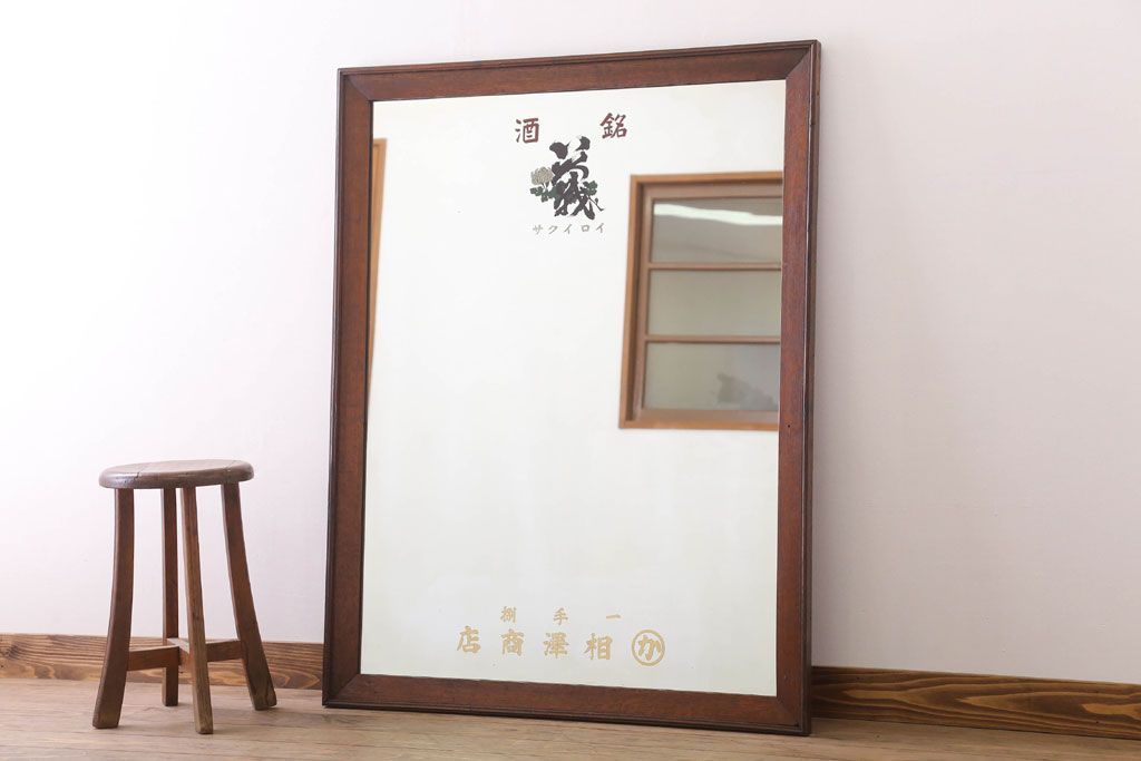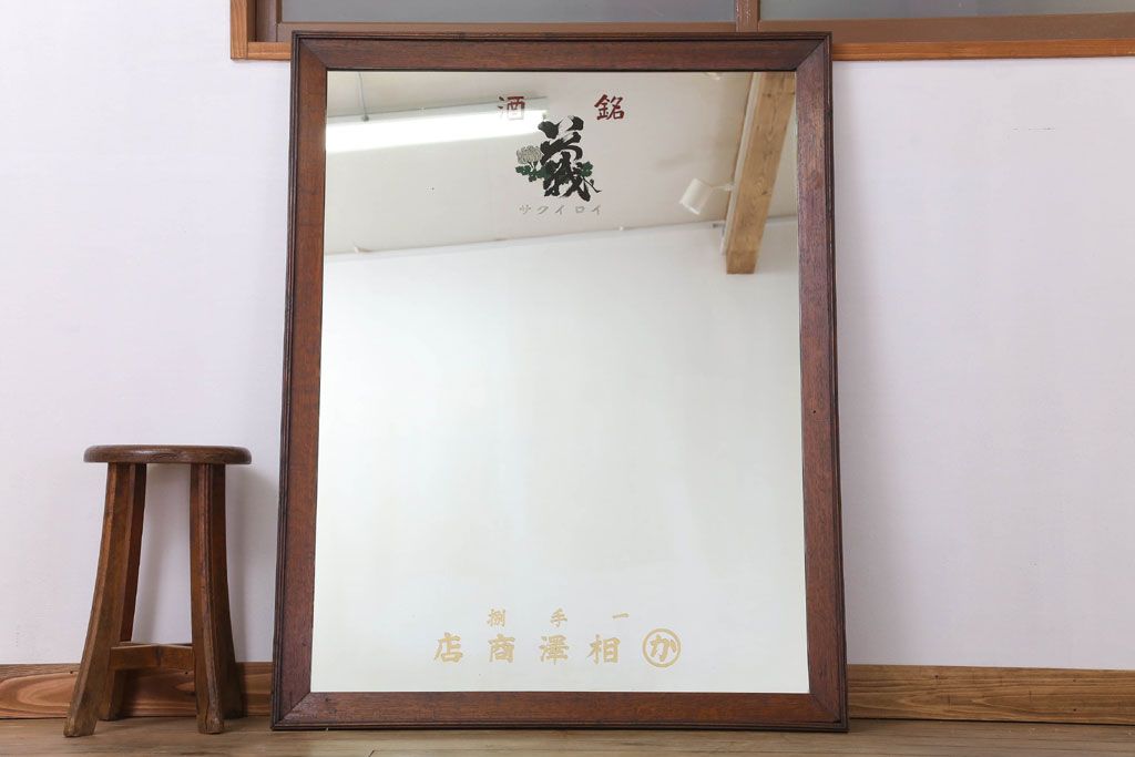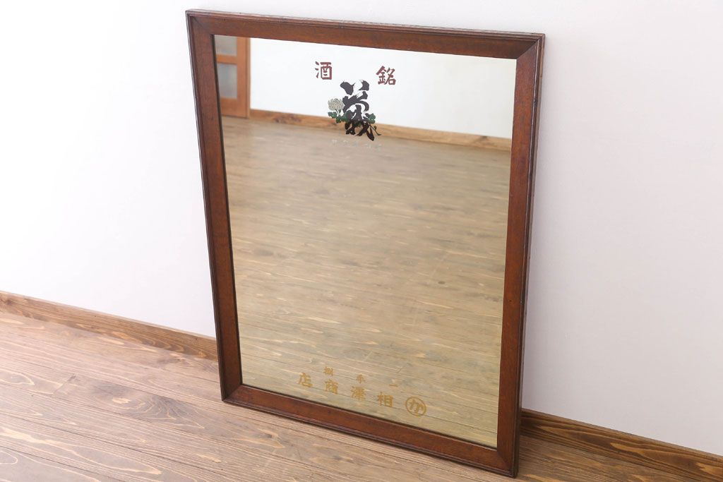 アンティーク雑貨 古い酒屋さんの大きな鏡(木製フレーム)