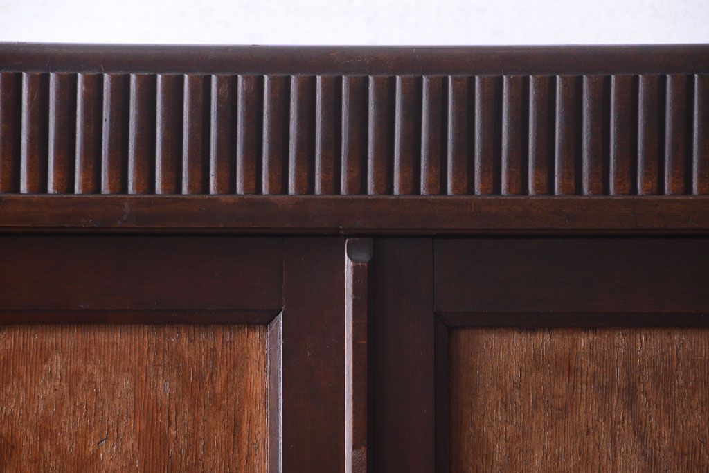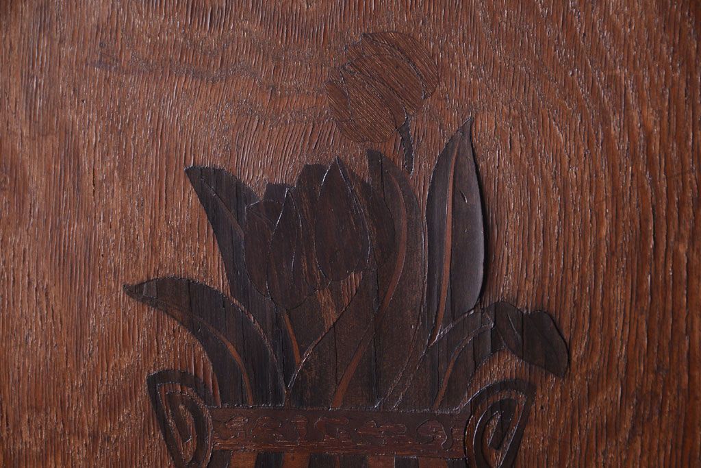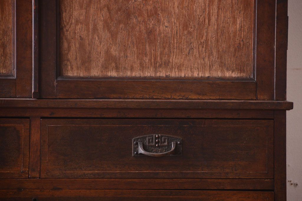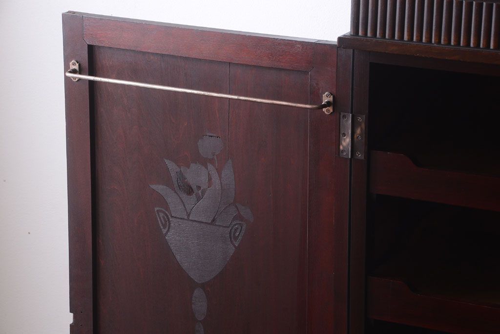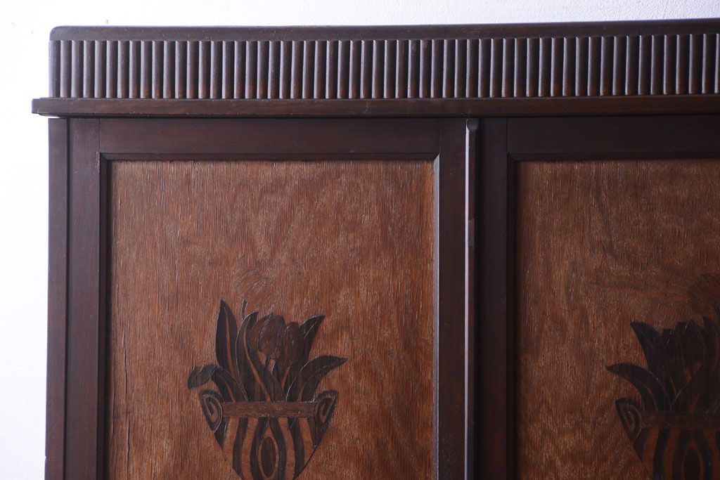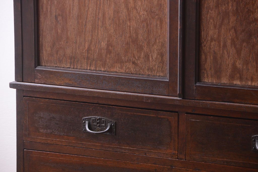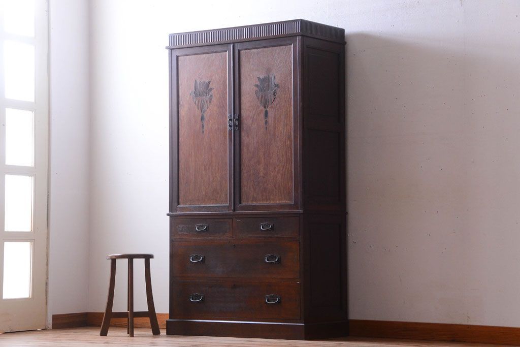 扉に美しい象嵌が入った和製アンティークの衣装箪笥です。