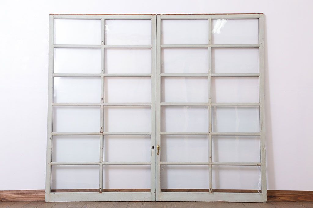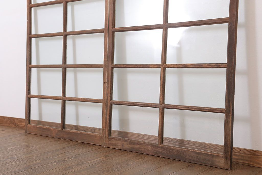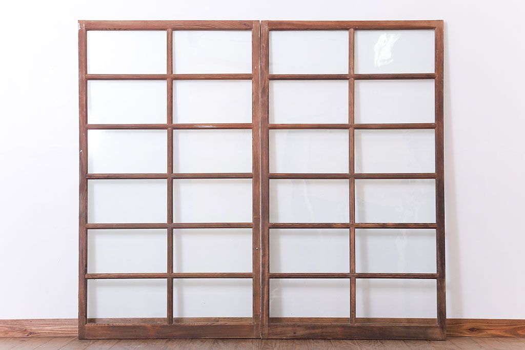 アンティークの昭和レトロなガラス戸2枚セット(引き戸・窓)(1)