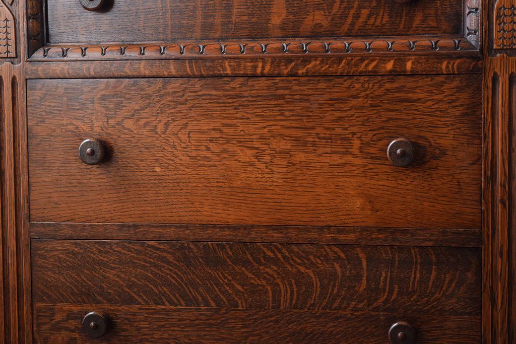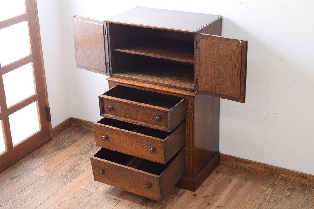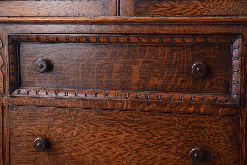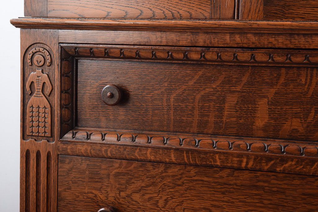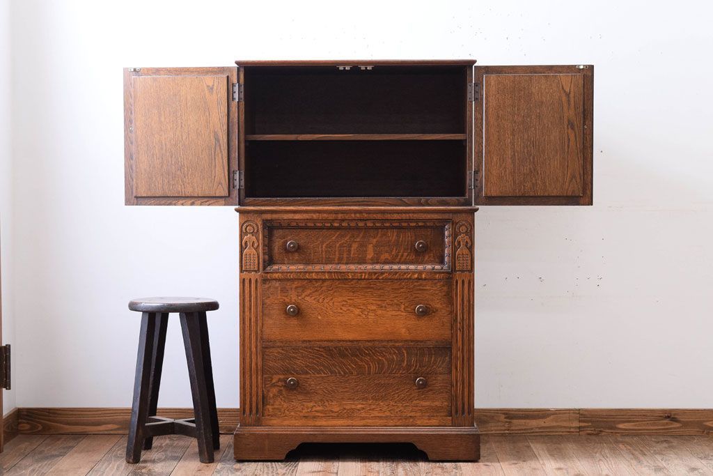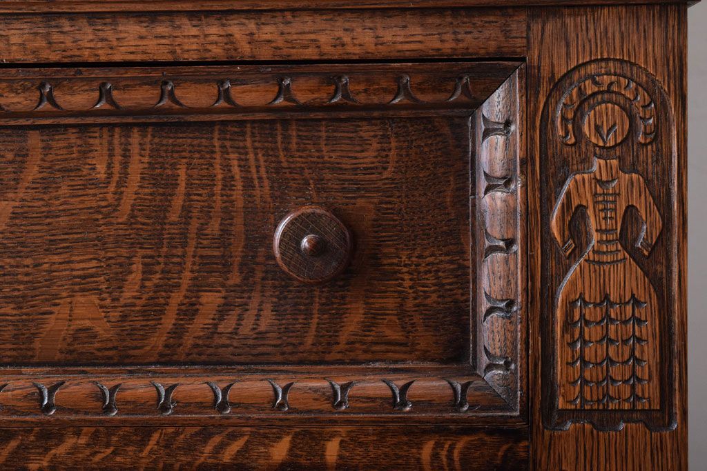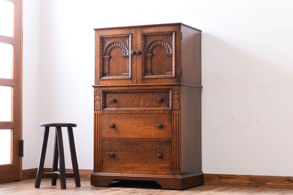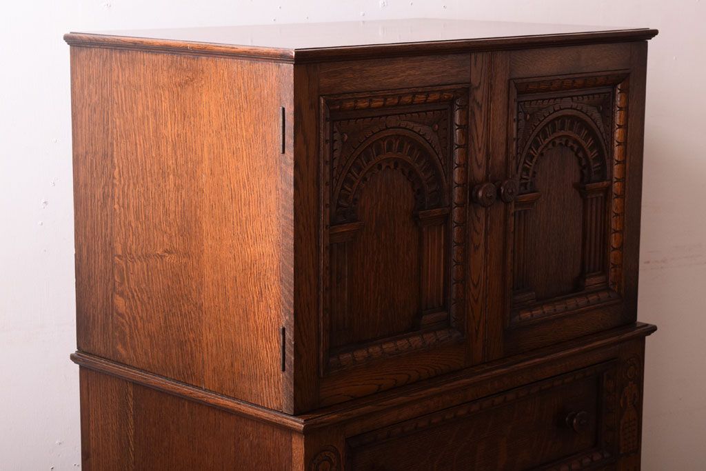 ヴィンテージ家具 イギリスビンテージ オーク材製 彫刻が美しいサイドキャビネット