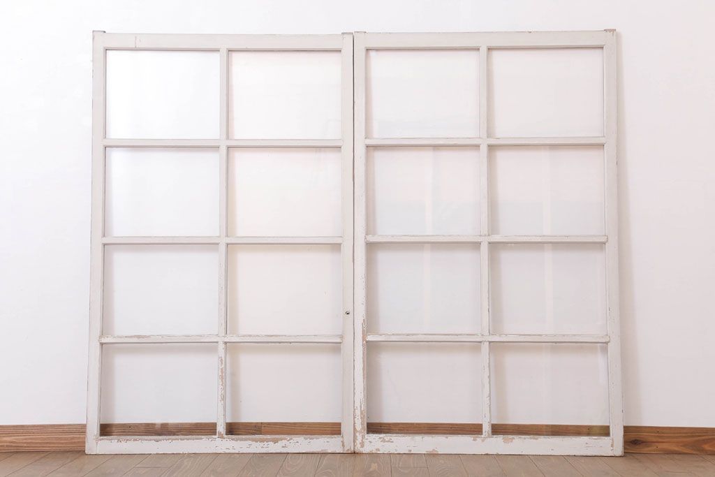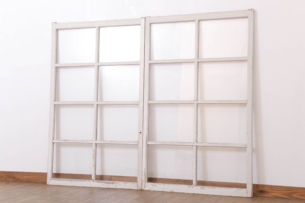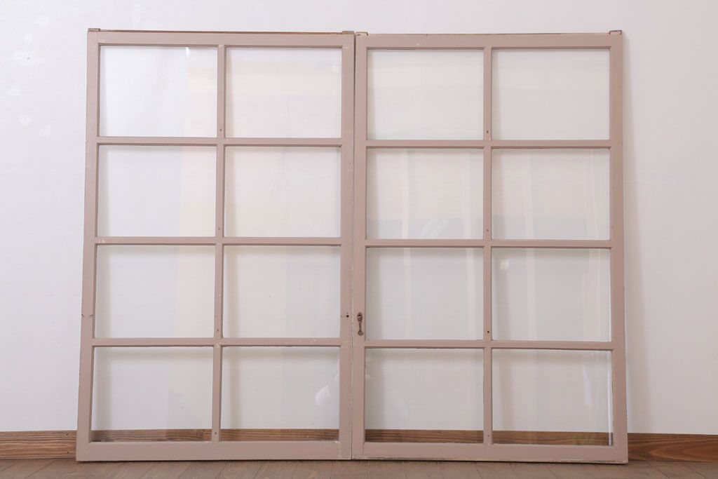 アンティークの昭和レトロなガラス戸2枚セット(引き戸・窓)です。