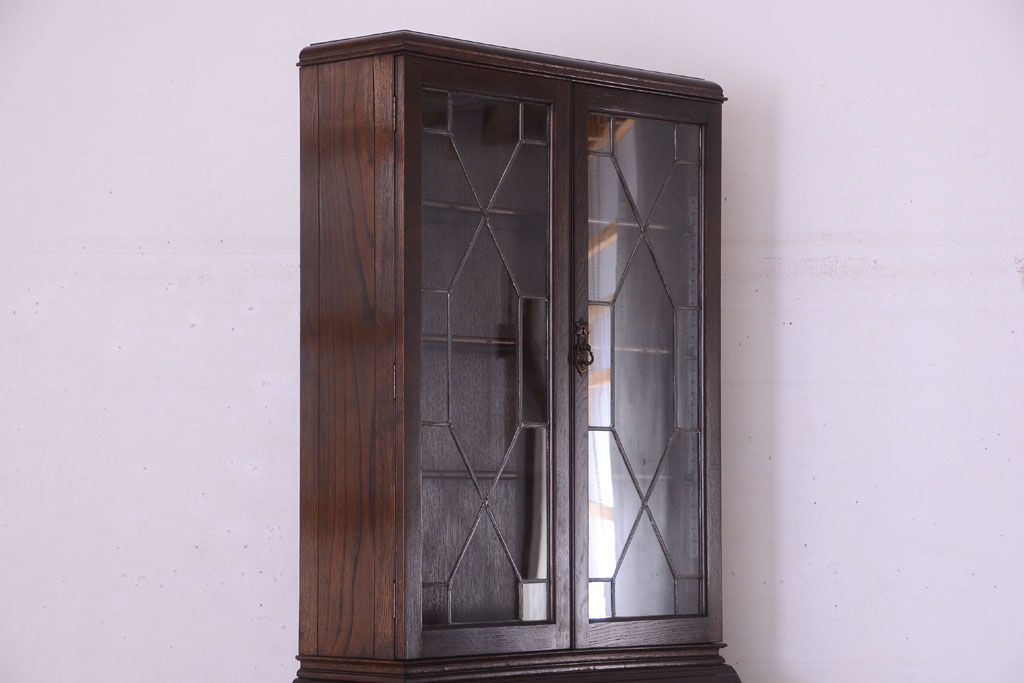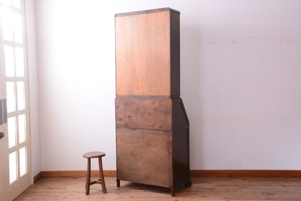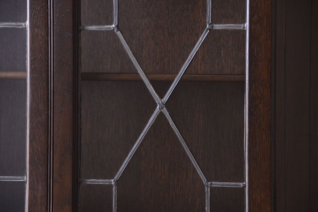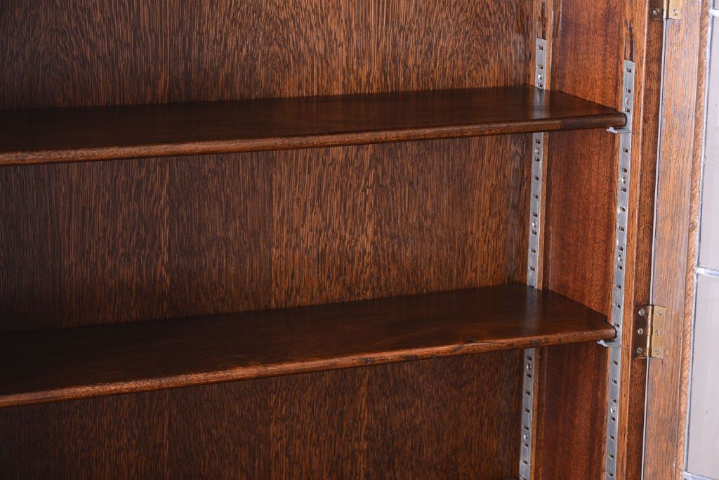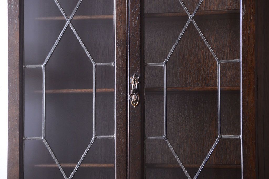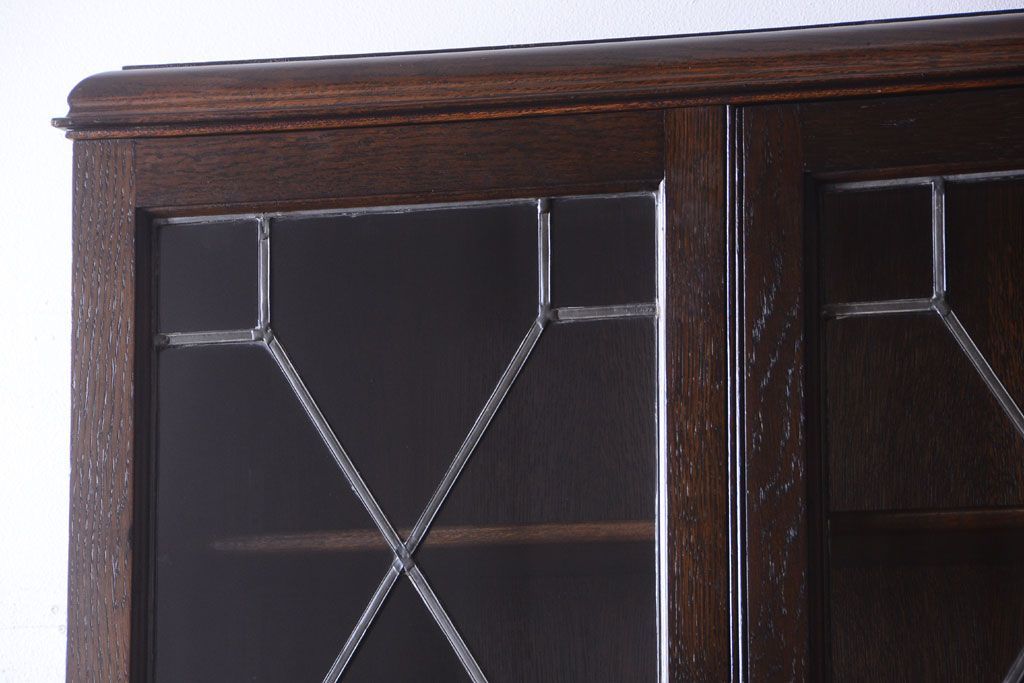 ステンドグラスが美しい、オーク材で作られたビューローブックケース