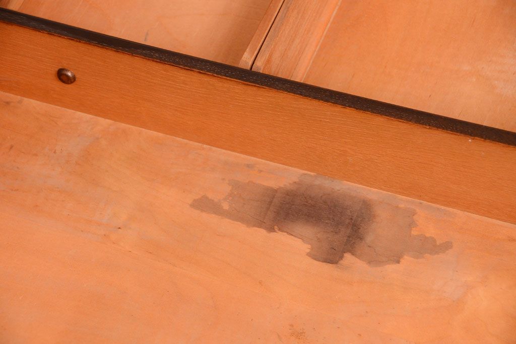 上品で美しい、透明なステンドグラス。鍵穴も可愛らしく、とてもお洒落です。扉、引き出しともにスムーズに動きます。