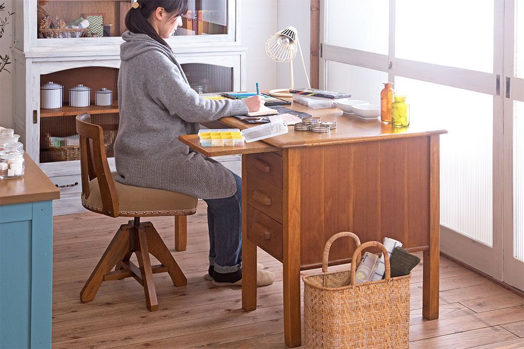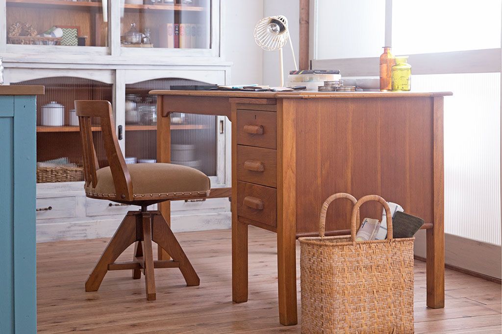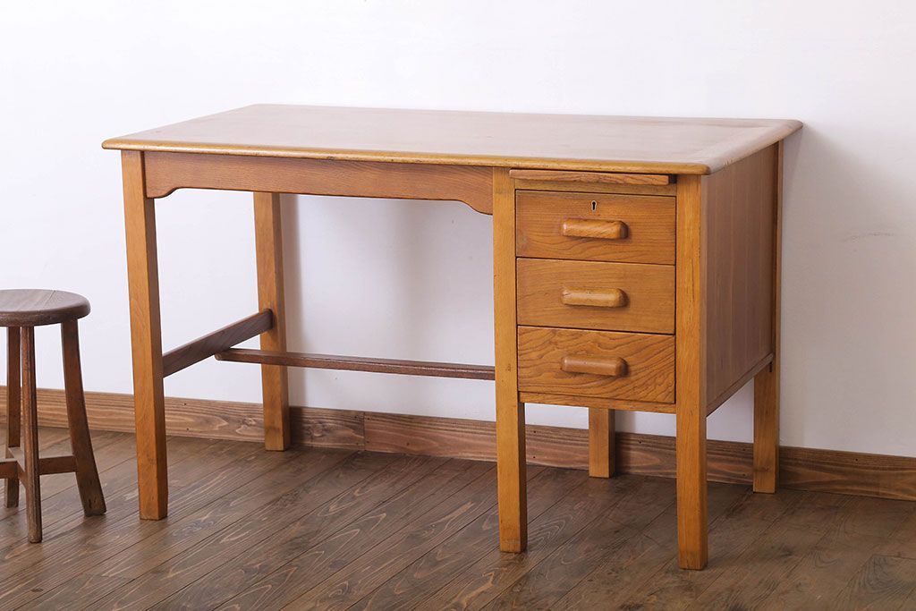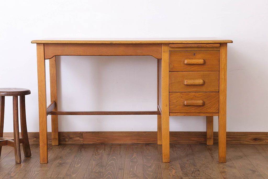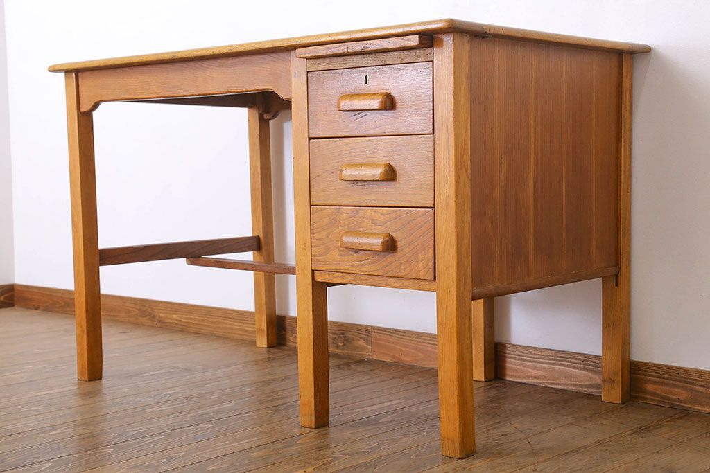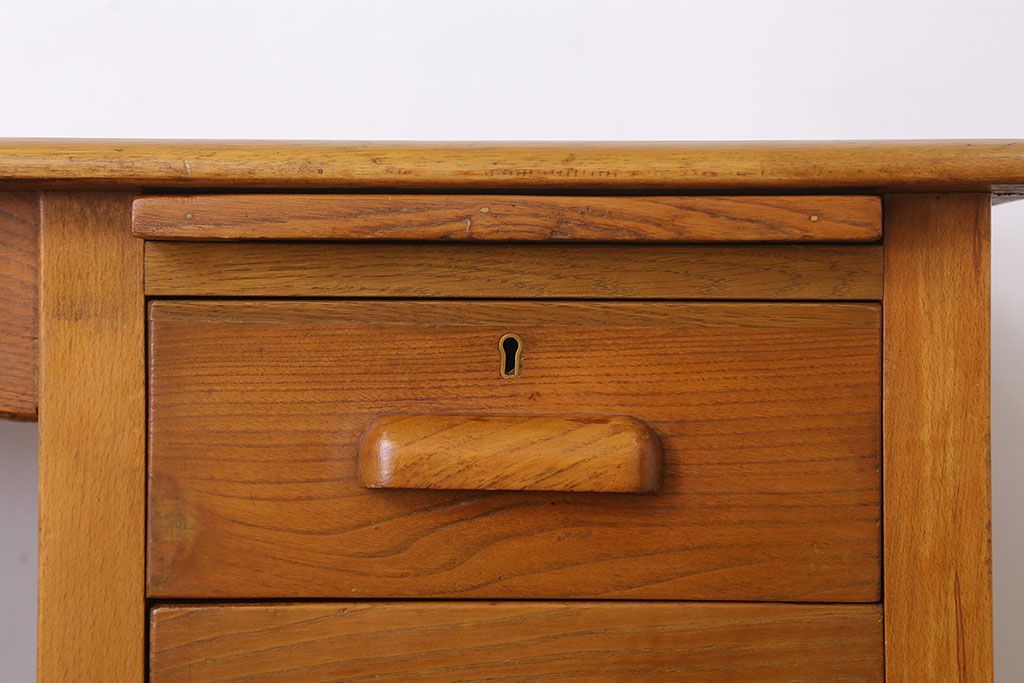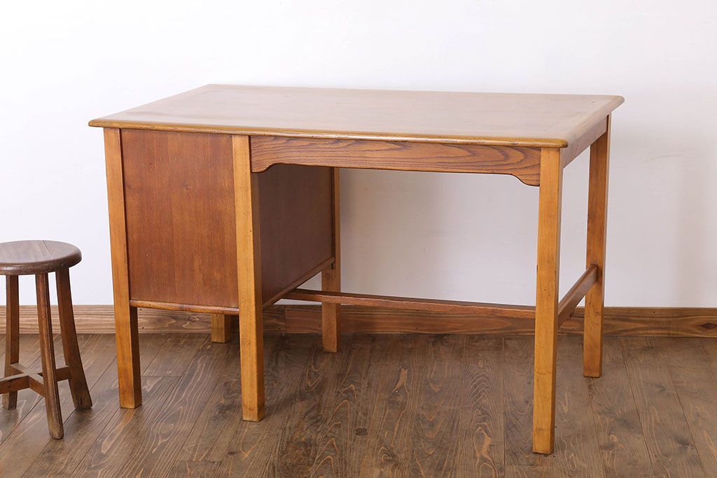 ヴィンテージ家具 イギリス オーク材の上品なビンテージデスク(片袖机)