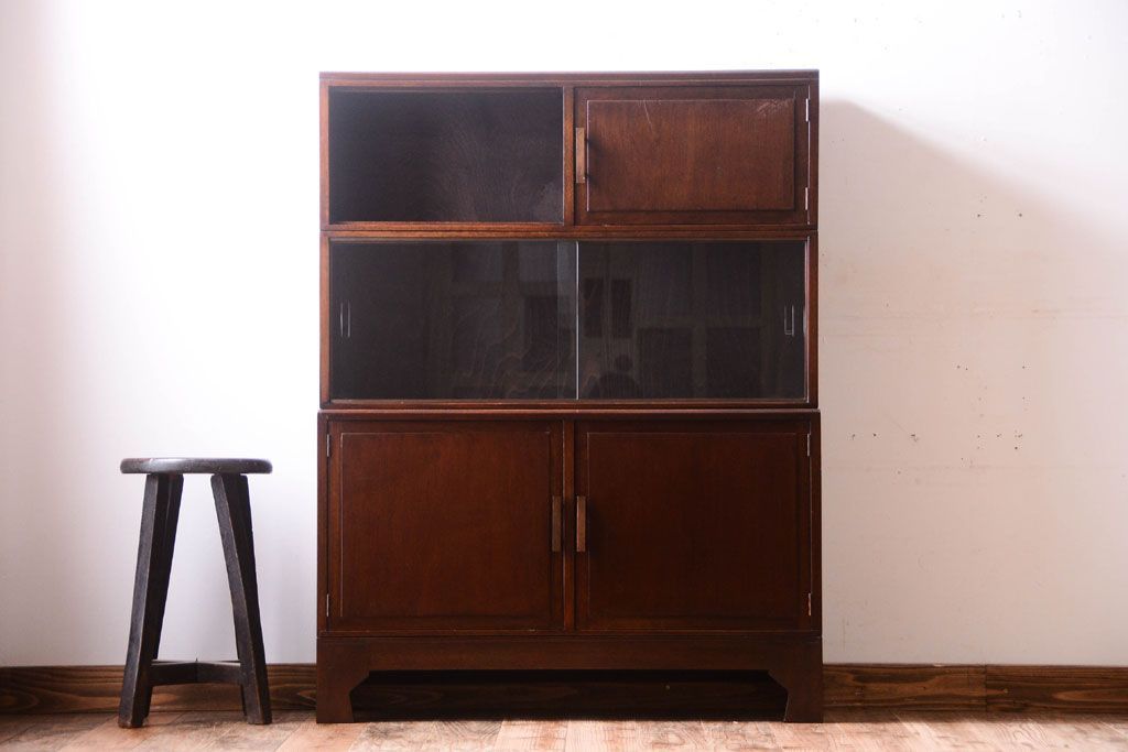 ラフジュ工房> キャビネット・戸棚> 食器棚・カップボード > ヴィンテージ家具 イギリスビンテージ 脚付き!ウォールナット材製スタッキングキャビネット