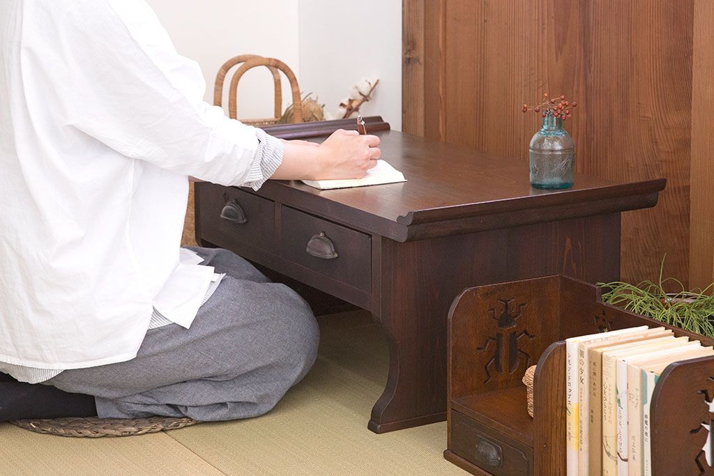アンティーク家具 檜材 筆返し付き!和製アンティーク文机