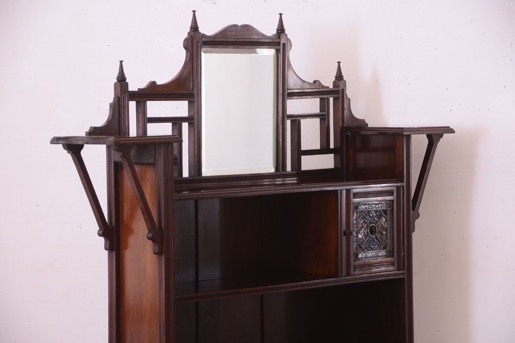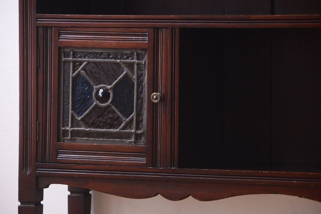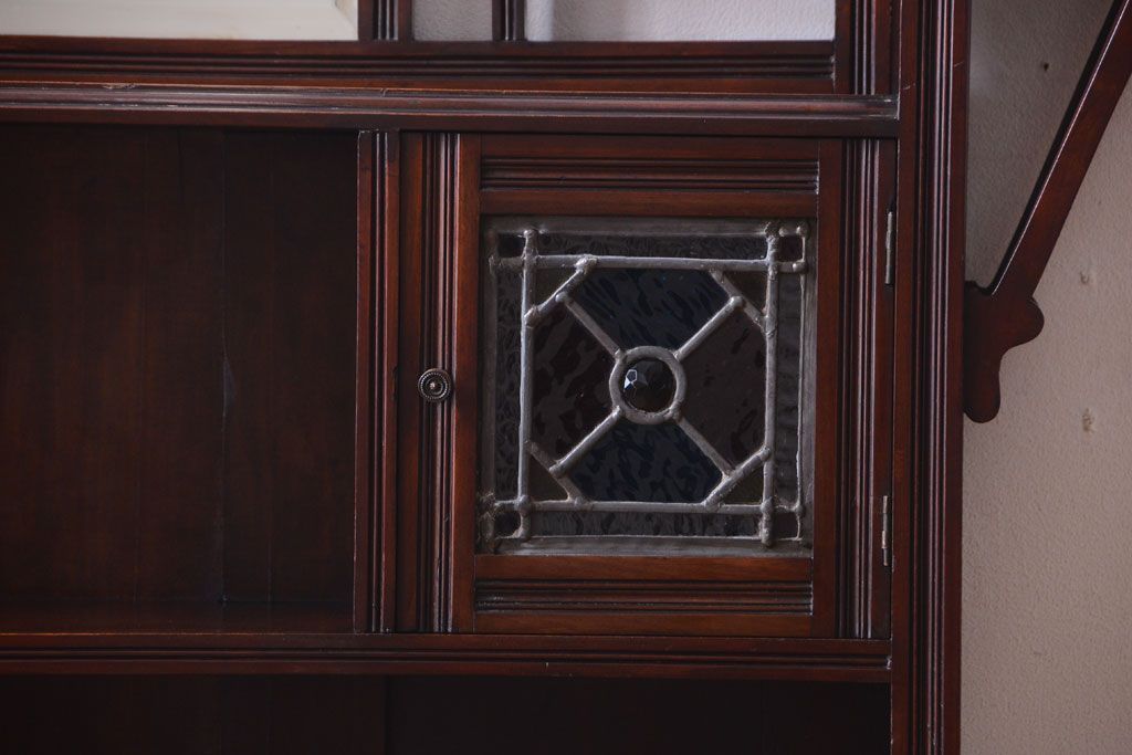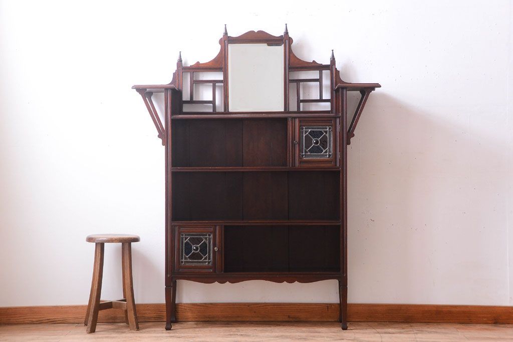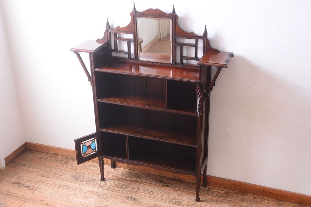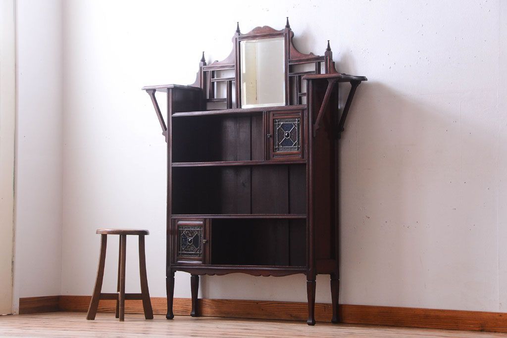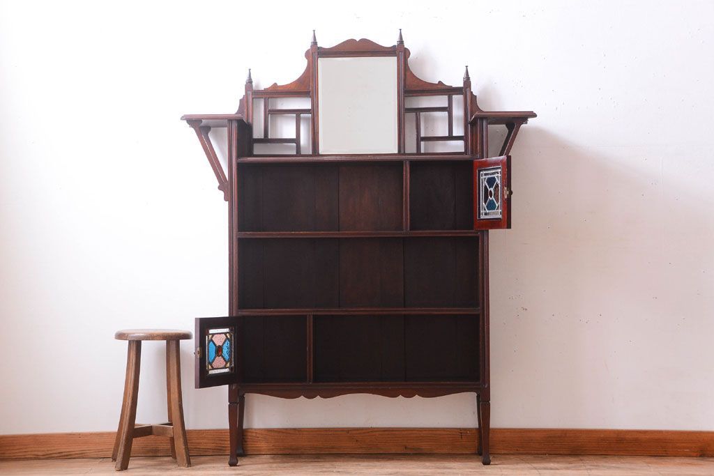 ラフジュ工房> オープンラック・シェルフ> ディスプレイラック > アンティーク家具 イギリスアンティーク ステンドグラス入り!上質な薄型キャビネット(飾り棚)