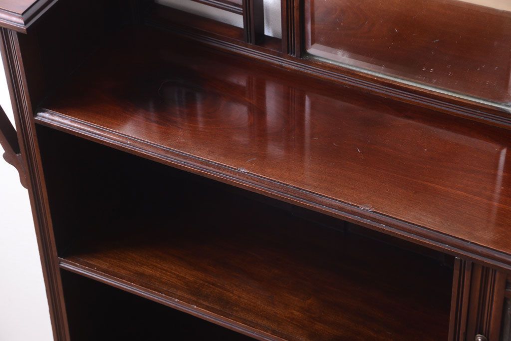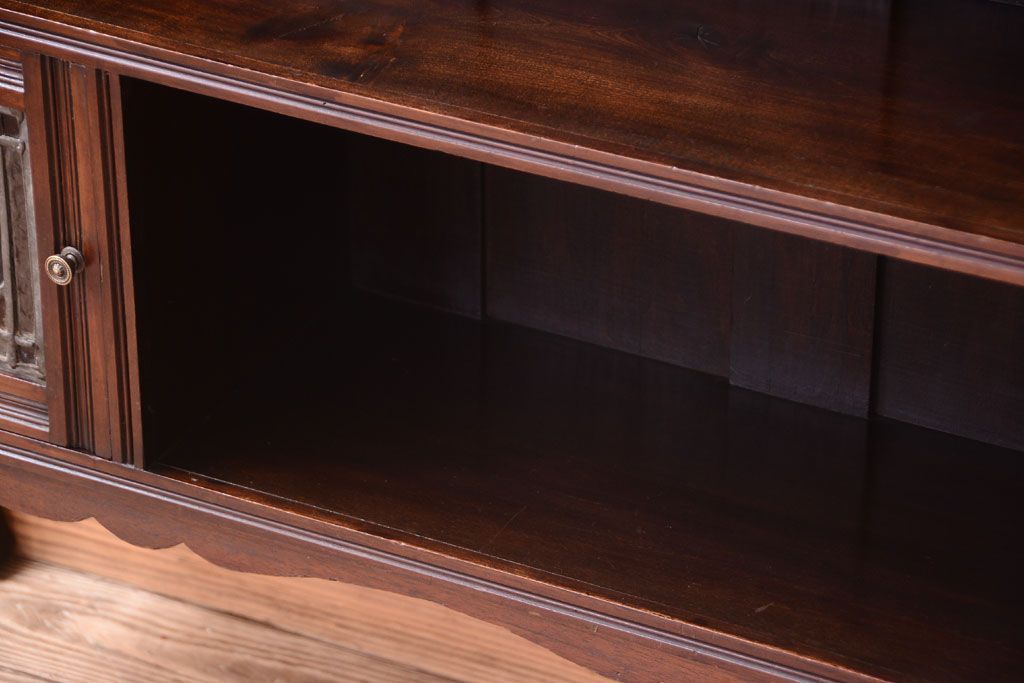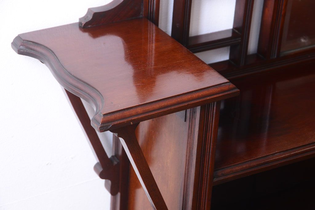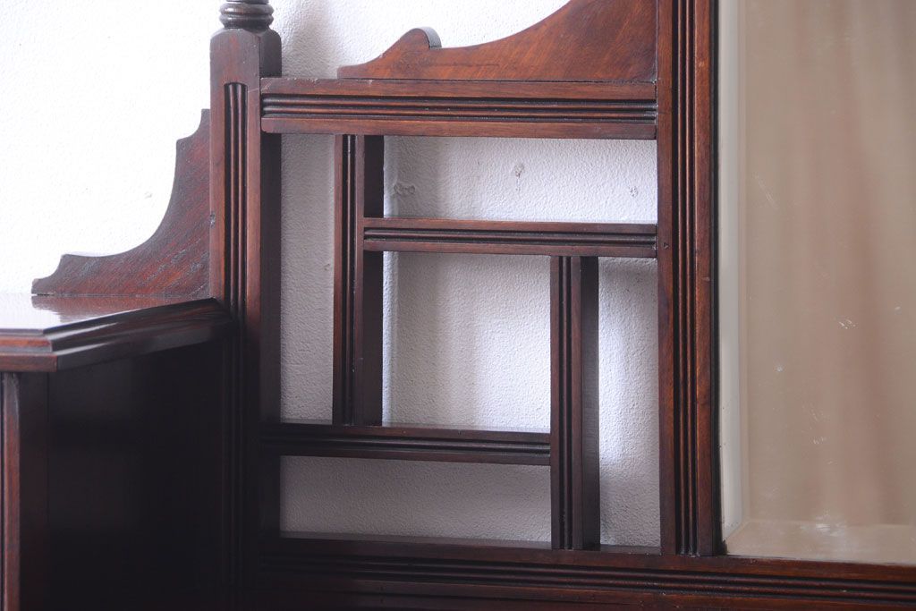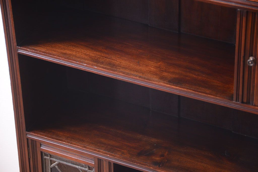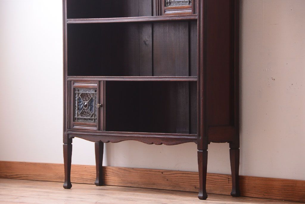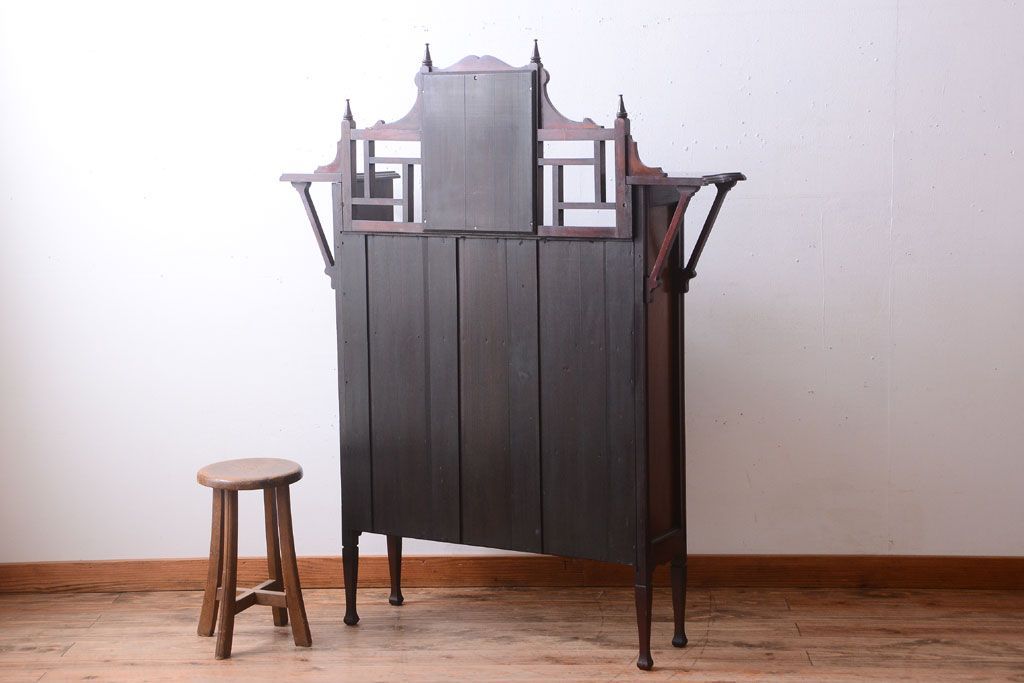 ラフジュ工房> オープンラック・シェルフ> ディスプレイラック > アンティーク家具 イギリスアンティーク ステンドグラス入り!上質な薄型キャビネット(飾り棚)