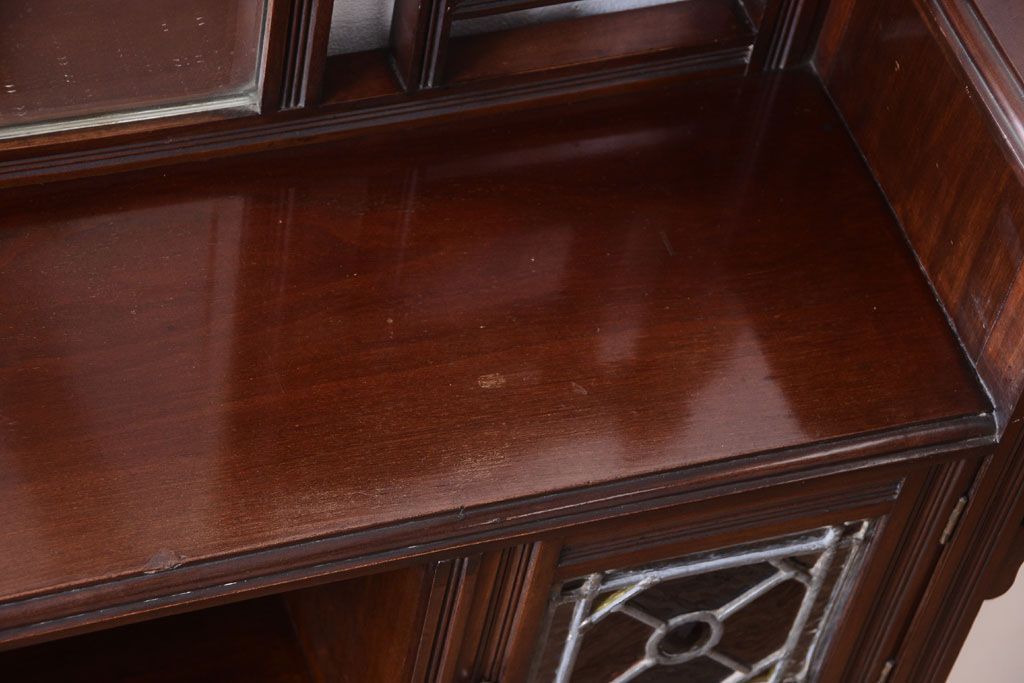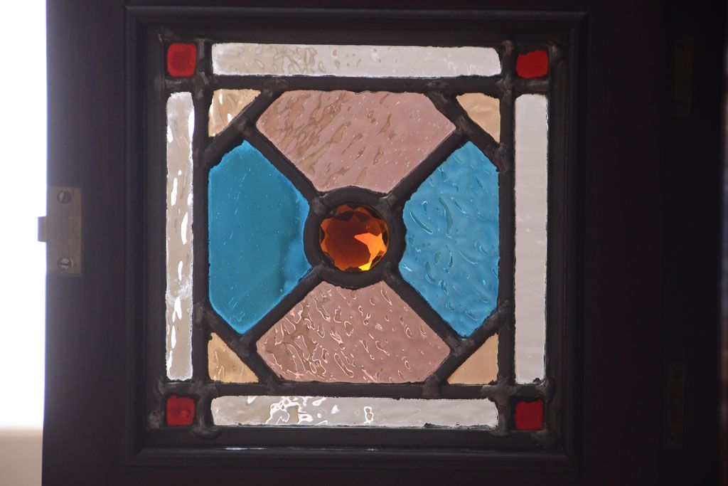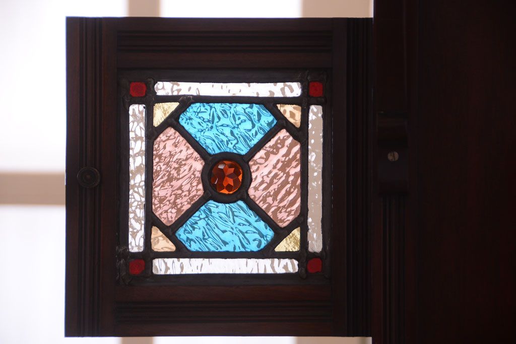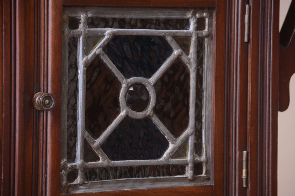 ラフジュ工房> ステンドグラス > アンティーク家具 イギリスアンティーク ステンドグラス入り!上質な薄型キャビネット(飾り棚)